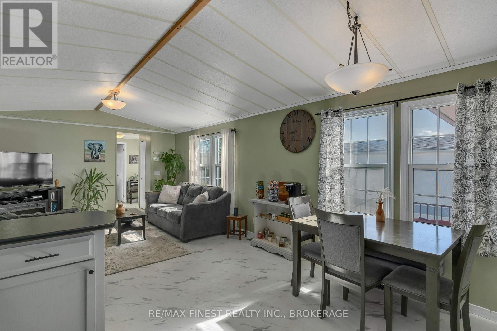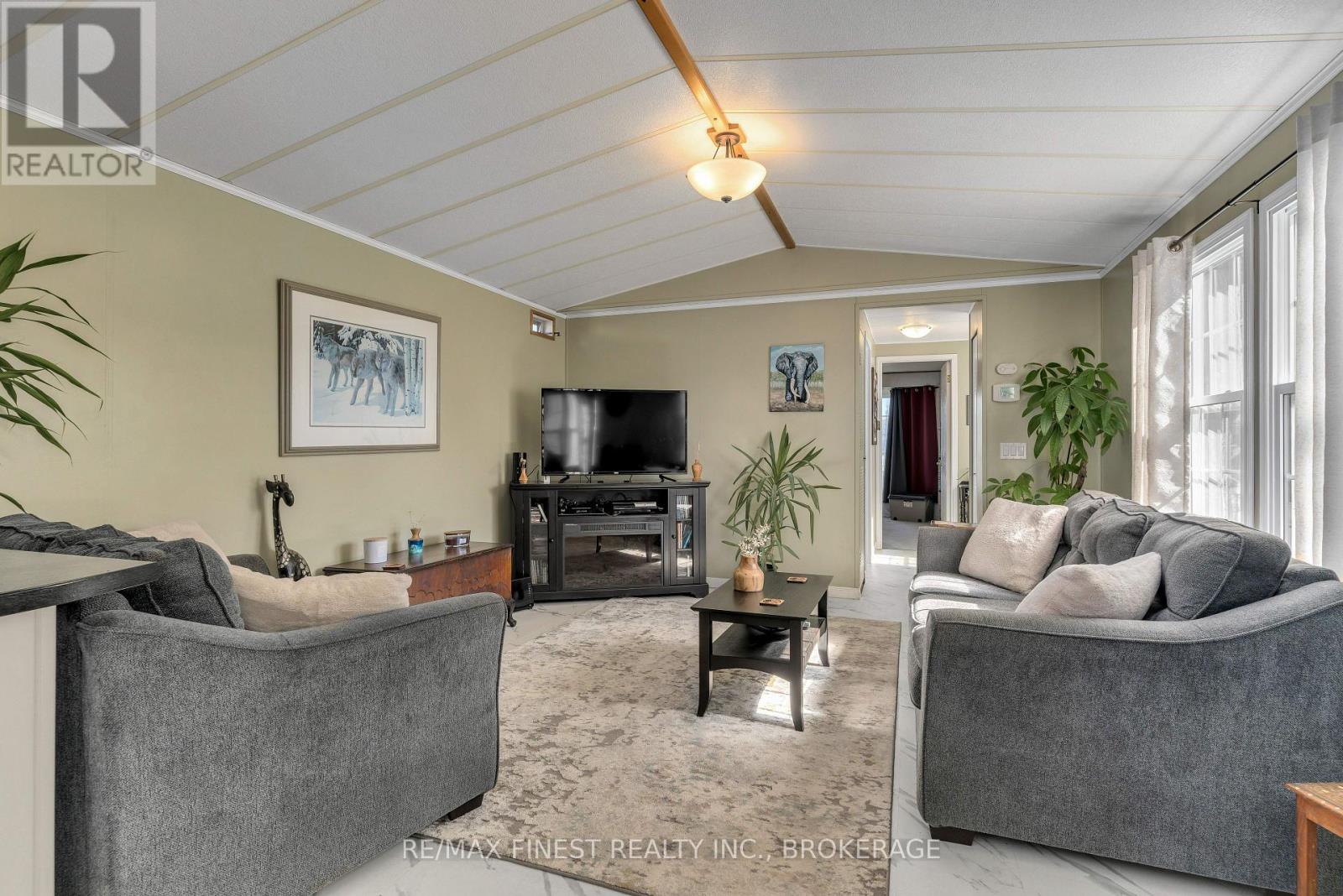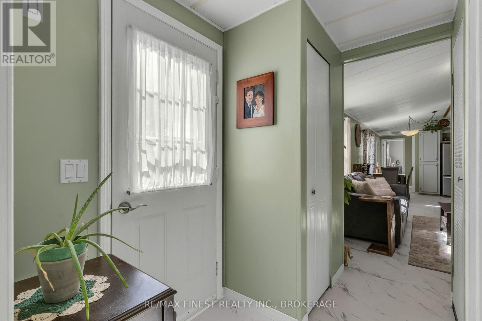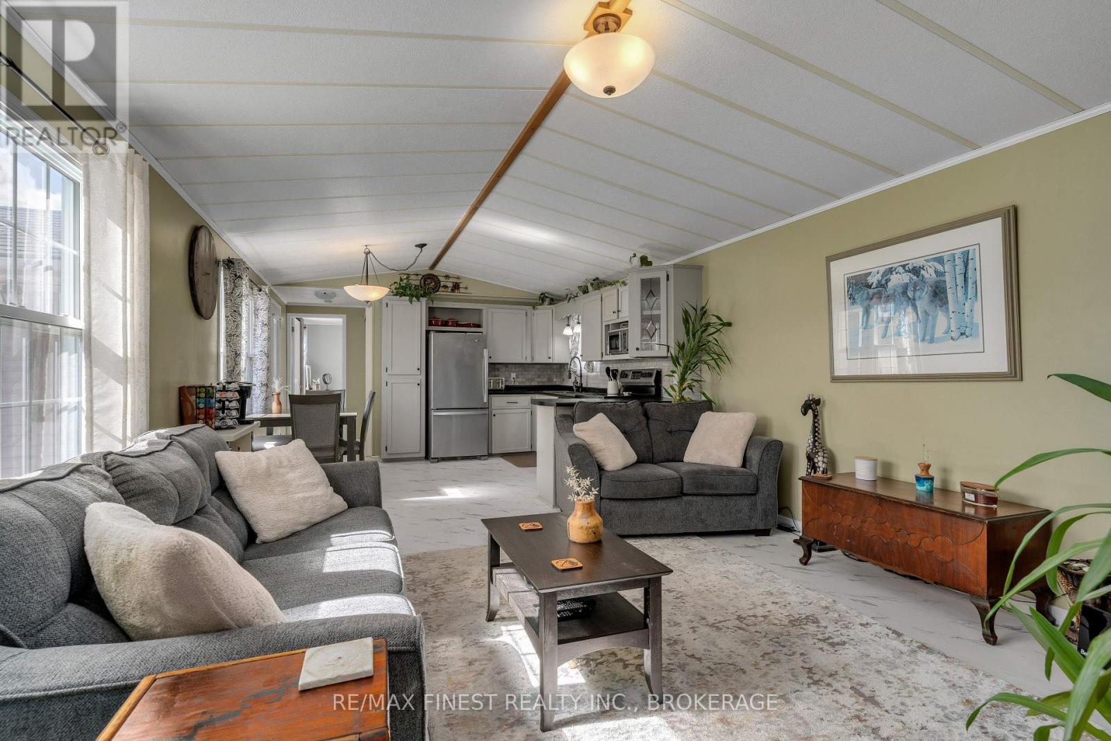 Welcome to your new oasis in the highly sought-after Richmond Park community! This beautifully maintained 2-bedroom,2-full-bath mobile home offers an inviting open-concept layout that seamlessly connects the kitchen, living, and dining areas, making it perfect for both entertaining and family gatherings. Sunlight pours in through large windows, creating a warm and welcoming atmosphere throughout. A delightful sunroom serves as the front entrance, inviting you to relax and enjoy the surroundings. The primary bedroom is a true retreat, featuring two generous walk-in closets and a convenient walkout to the spacious back deck, where you can unwind in your private hot tub while taking in breathtaking views of the fields beyond. A convenient laundry closet enhances the home's functionality, while an insulated shed with hydro provides extra storage or workshop potential. With a paved driveway ensuring easy access and ample parking, With the park expanding to include a future clubhouse and pool, this charming mobile home is a rare find. Don't miss out on the opportunity to experience the comfort and charm of Richmond Park living. (id:29295)