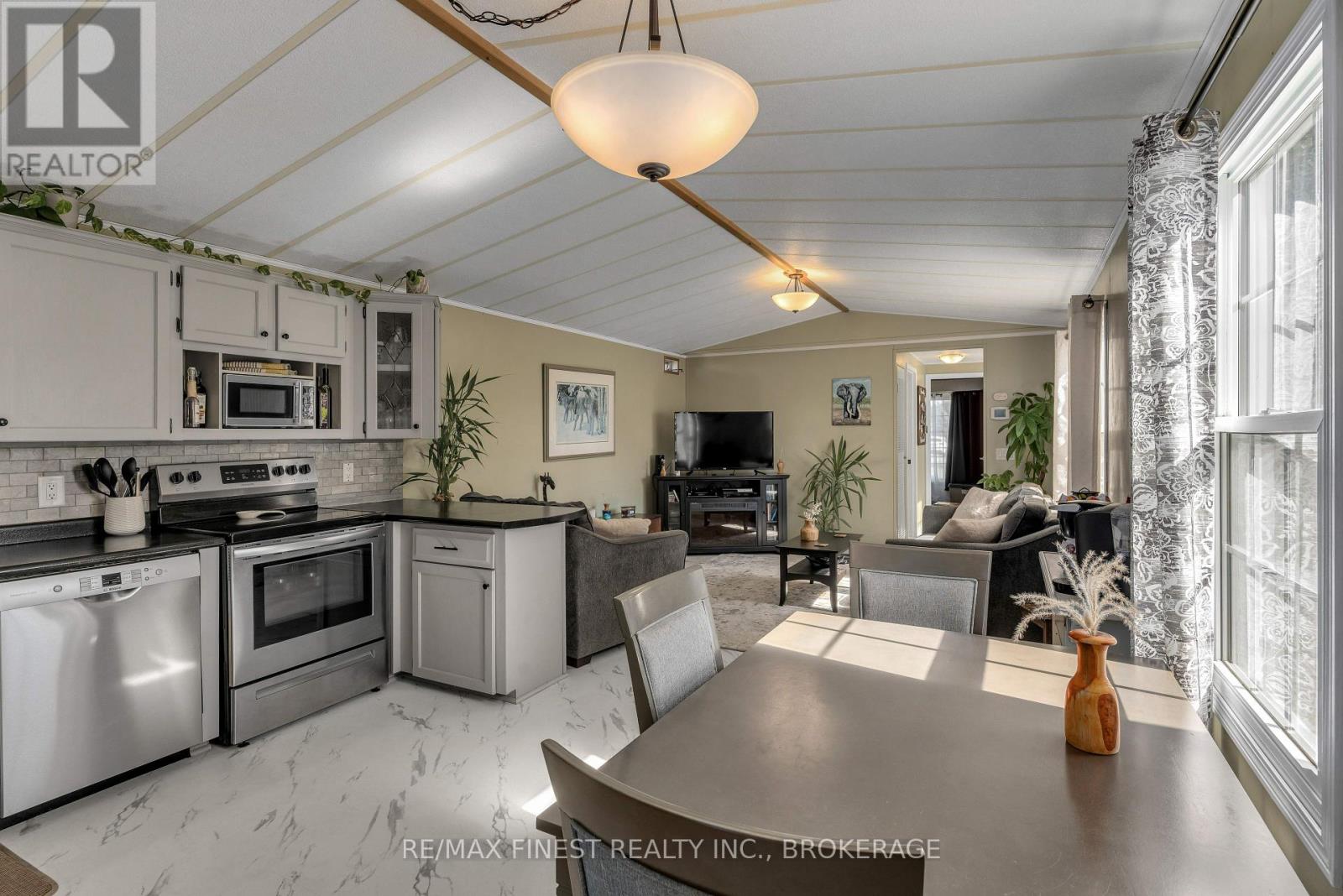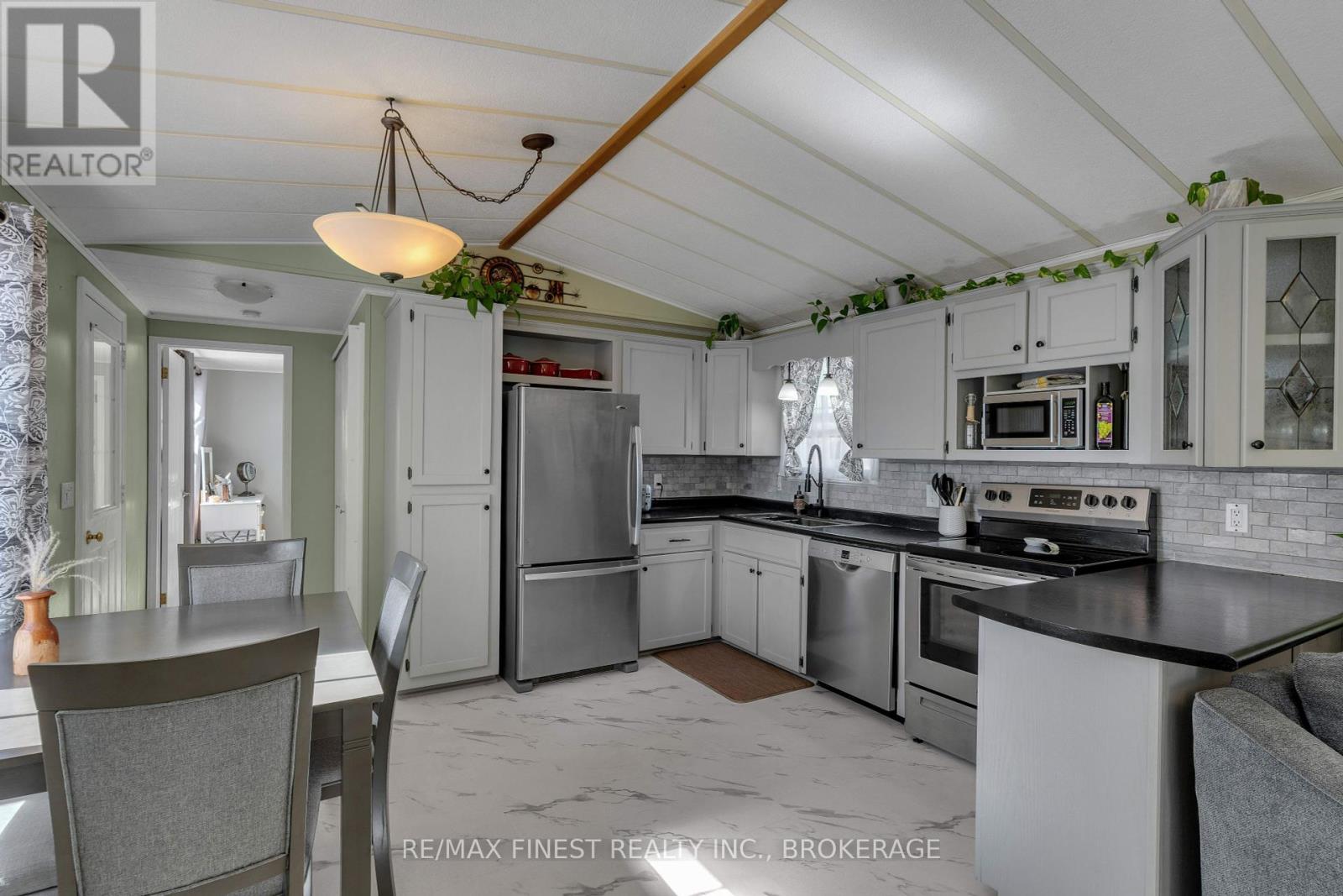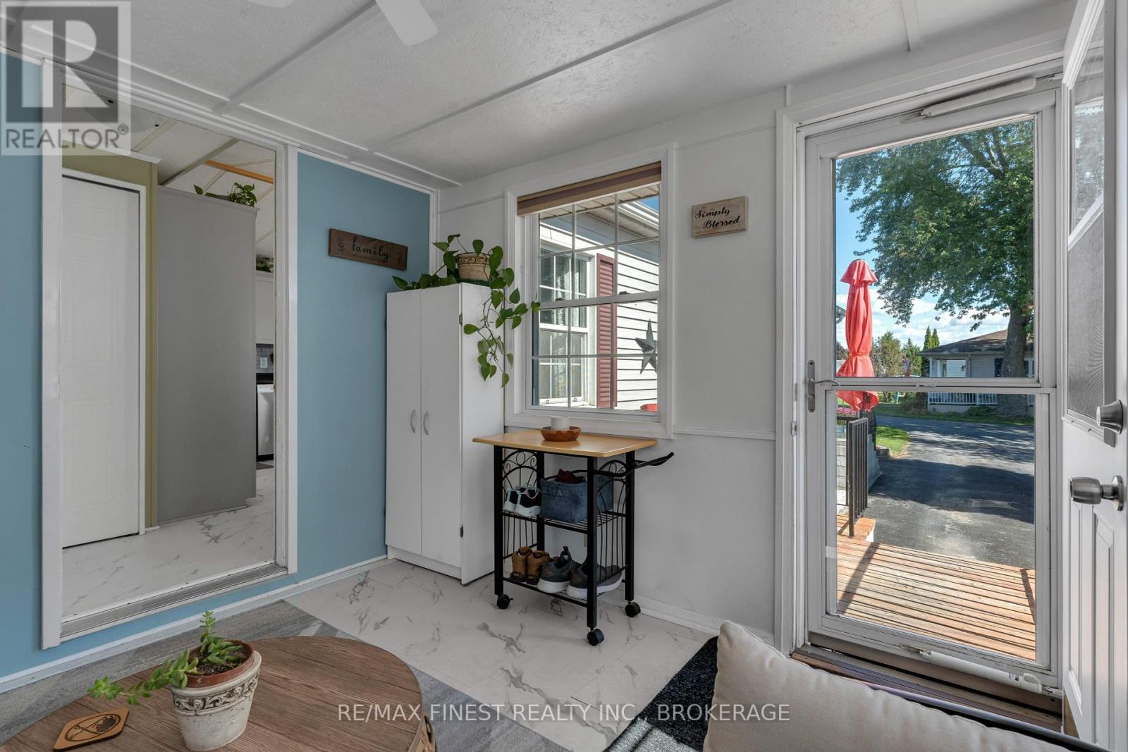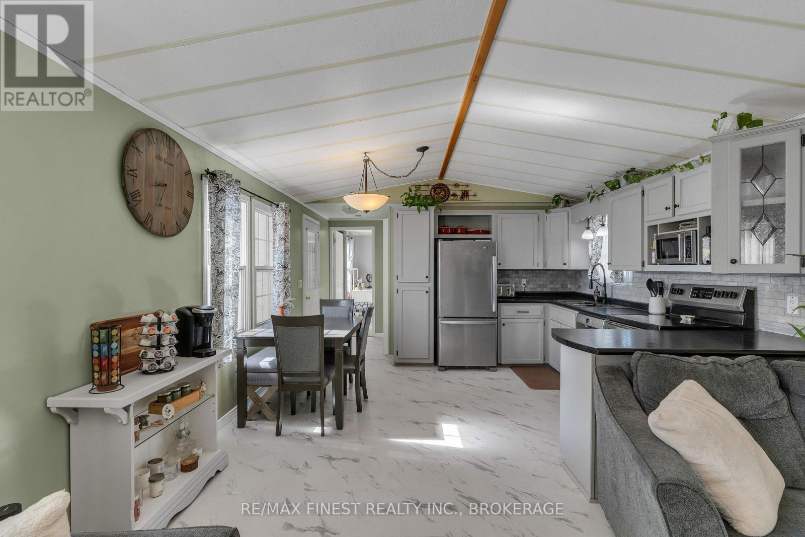 Welcome to your new oasis in the highly sought-after Richmond Park community! This beautifully maintained 2-bedroom,2-full-bath mobile home offers an inviting open-concept layout that seamlessly connects the kitchen, living, and dining areas, making it perfect for both entertaining and family gatherings. Sunlight pours in through large windows, creating a warm and welcoming atmosphere throughout. A delightful sunroom serves as the front entrance, inviting you to relax and enjoy the surroundings. The primary bedroom is a true retreat, featuring two generous walk-in closets and a convenient walkout to the spacious back deck, where you can unwind in your private hot tub while taking in breathtaking views of the fields beyond. A convenient laundry closet enhances the home's functionality, while an insulated shed with hydro provides extra storage or workshop potential. With a paved driveway ensuring easy access and ample parking, With the park expanding to include a future clubhouse and pool, this charming mobile home is a rare find. Don't miss out on the opportunity to experience the comfort and charm of Richmond Park living. (id:29295)