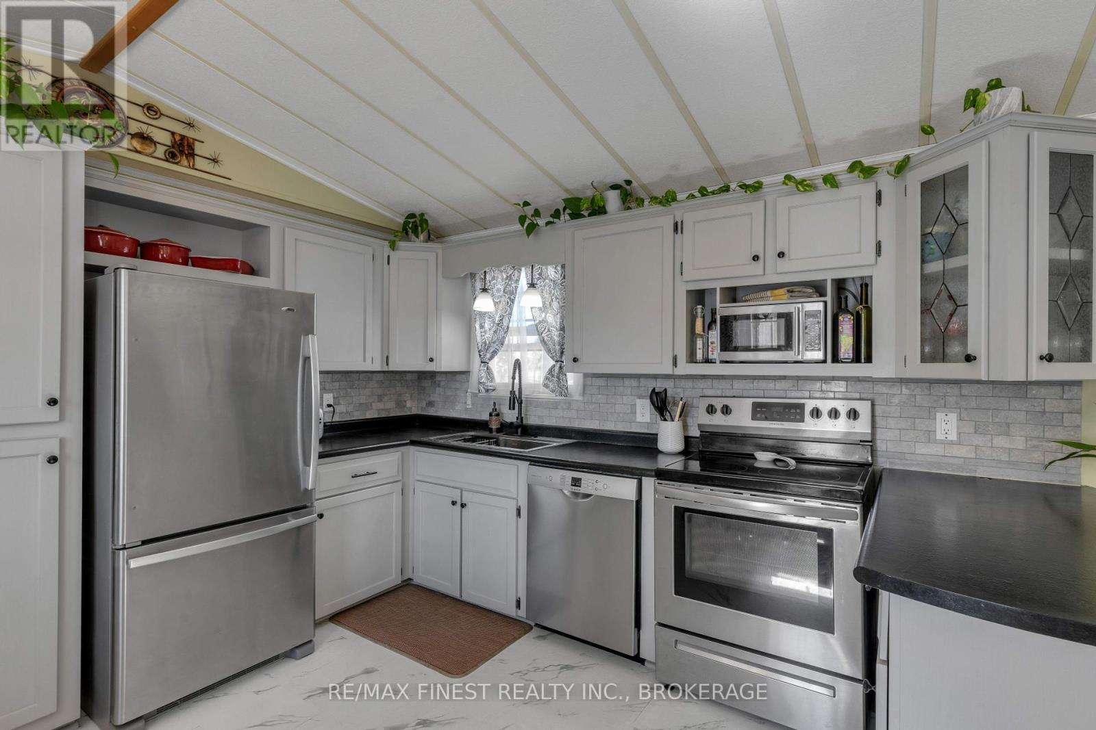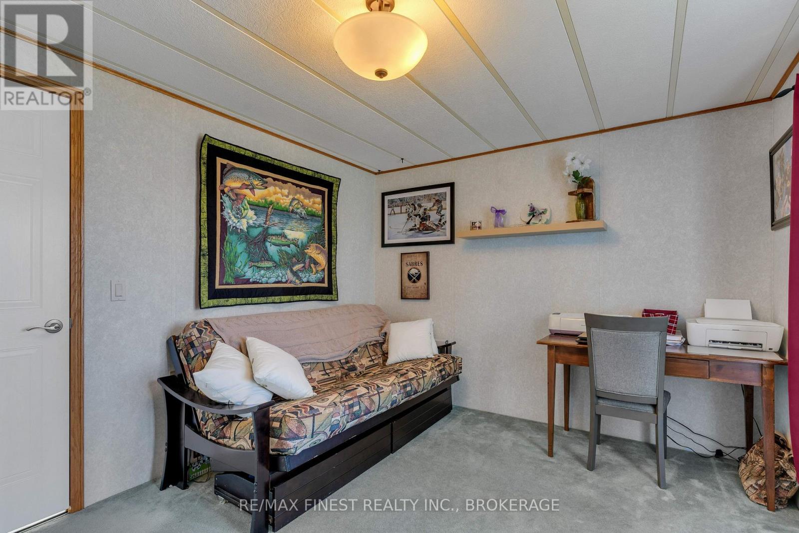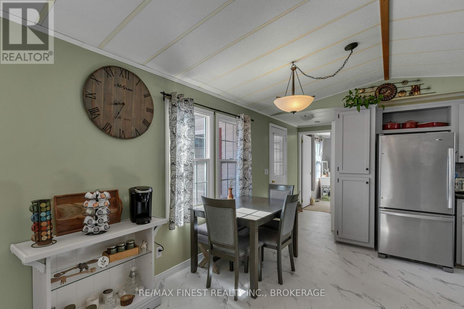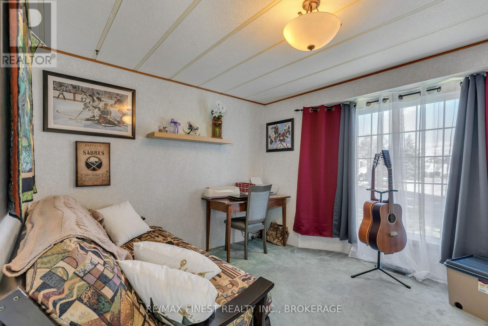 Welcome to your new oasis in the highly sought-after Richmond Park community! This beautifully maintained 2-bedroom,2-full-bath mobile home offers an inviting open-concept layout that seamlessly connects the kitchen, living, and dining areas, making it perfect for both entertaining and family gatherings. Sunlight pours in through large windows, creating a warm and welcoming atmosphere throughout. A delightful sunroom serves as the front entrance, inviting you to relax and enjoy the surroundings. The primary bedroom is a true retreat, featuring two generous walk-in closets and a convenient walkout to the spacious back deck, where you can unwind in your private hot tub while taking in breathtaking views of the fields beyond. A convenient laundry closet enhances the home's functionality, while an insulated shed with hydro provides extra storage or workshop potential. With a paved driveway ensuring easy access and ample parking, With the park expanding to include a future clubhouse and pool, this charming mobile home is a rare find. Don't miss out on the opportunity to experience the comfort and charm of Richmond Park living. (id:29295)