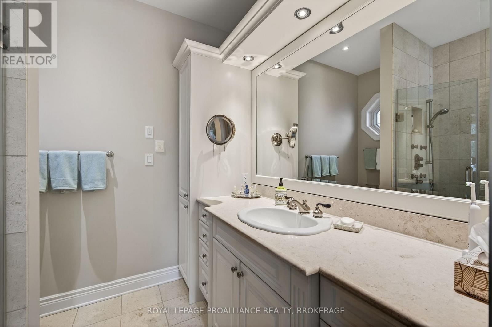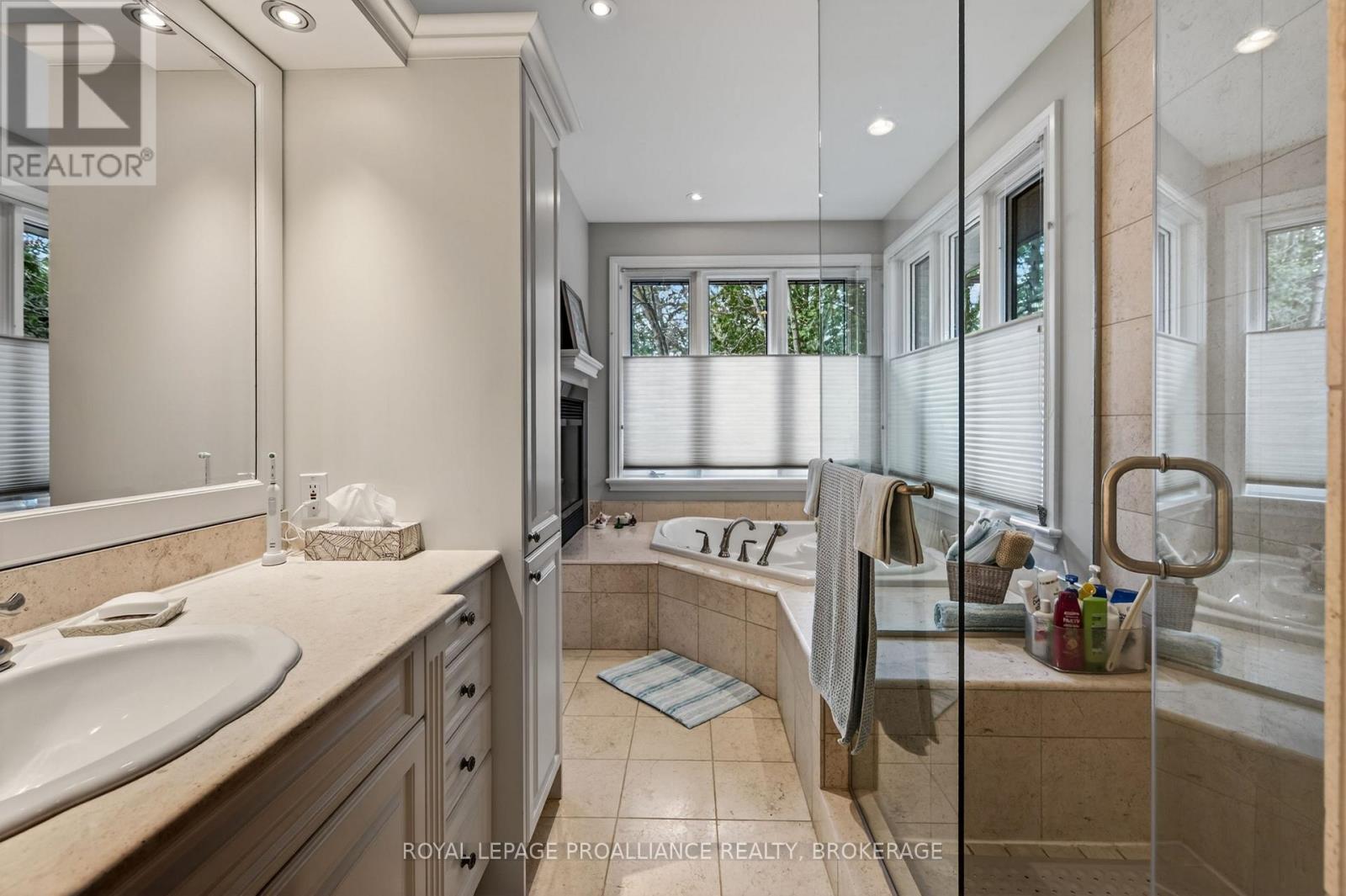 Welcome to 178 Nicholson Point Road, an extraordinary Lake Ontario estate with commanding west exposure views, 90 feet of deep, rocky shoreline, and nearly 5,000 sq. ft. of custom built luxury. Crafted by the Garofalo Brothers in 2002, this home combines timeless construction, thoughtful design, and an exceptional waterfront setting on a quiet, prestigious street. Inside, the home offers 5 bedrooms and 3.5 baths, including a main floor primary suite featuring a two sided fireplace, marble floors, marble countertops, and in floor heating in the spa inspired ensuite. The granite kitchen flows into a warm and inviting family room with a gas fireplace, while skylights on the upper level fill the home with natural light. The upper loft area also benefits from in floor heating, adding year round comfort to this versatile space. The walkout basement expands the living area and includes water treatment room, and ample potential for further storage. Additional highlights include an attached 2 car garage, limestone and stucco exterior, and a natural gas backup generator for peace of mind. Recent updates ensure comfort and efficiency, Furnace (2022), Two water heaters (2024), A/C (2020). Outdoors, enjoy the best of waterfront living with a 40 ft dock, perfect for swimming, boating, and taking in Kingston's iconic sunsets over Lake Ontario. A rare opportunity to own a beautifully built, meticulously maintained waterfront home in one of the region's most desirable enclaves. (id:29295)