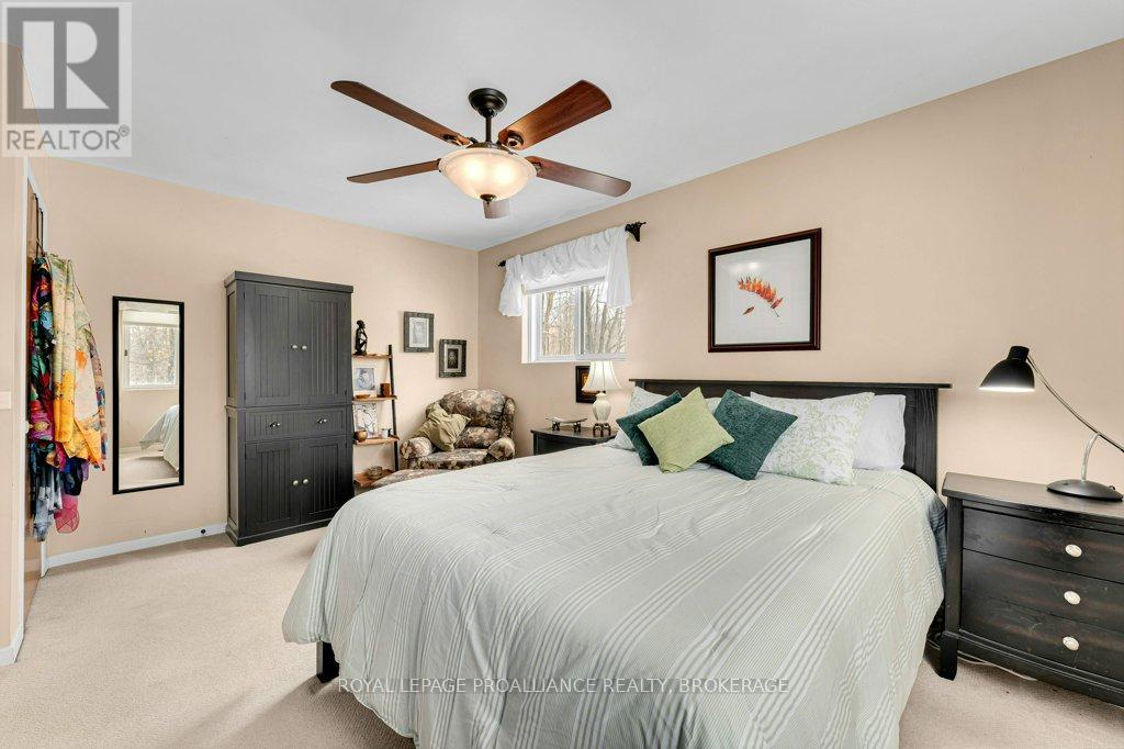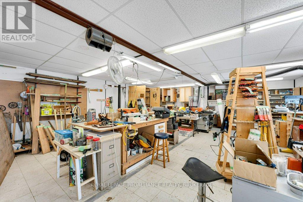 Welcome to 1780 Middle Road. This is a bi-level bungalow nestled amongst trees on a 1.97 acre lot. With over 1700 sqft on the main level, enjoy spacious living. The principal bedroom has a walk-in closet and updated ensuite bathroom with heated floors. Main bathroom has also been updated with heated floors and the 3rd bedroom has laminate flooring. The kitchen has great workspace with countertop stove, built-in oven, ample cupboards and patio doors to the rear three tiered deck. The lower level offers a large recreation room with pellet stove and patio doors to back yard. Off the recreation room is a laundry/utility room and inside entry to the two-car garage. Updates include insulated vinyl exterior (2006), updated soffits and eavestroughs (2006) roof shingles (approx 2018) propane furnace (2021). The home is equipped with a generator. The bonus is the 24'x 32' heated (pellet stove) and insulated workshop which could easily be converted to an artist or yoga studio. Enjoy the privacy of country living while being just 15 minutes to downtown Kingston. (id:29295)