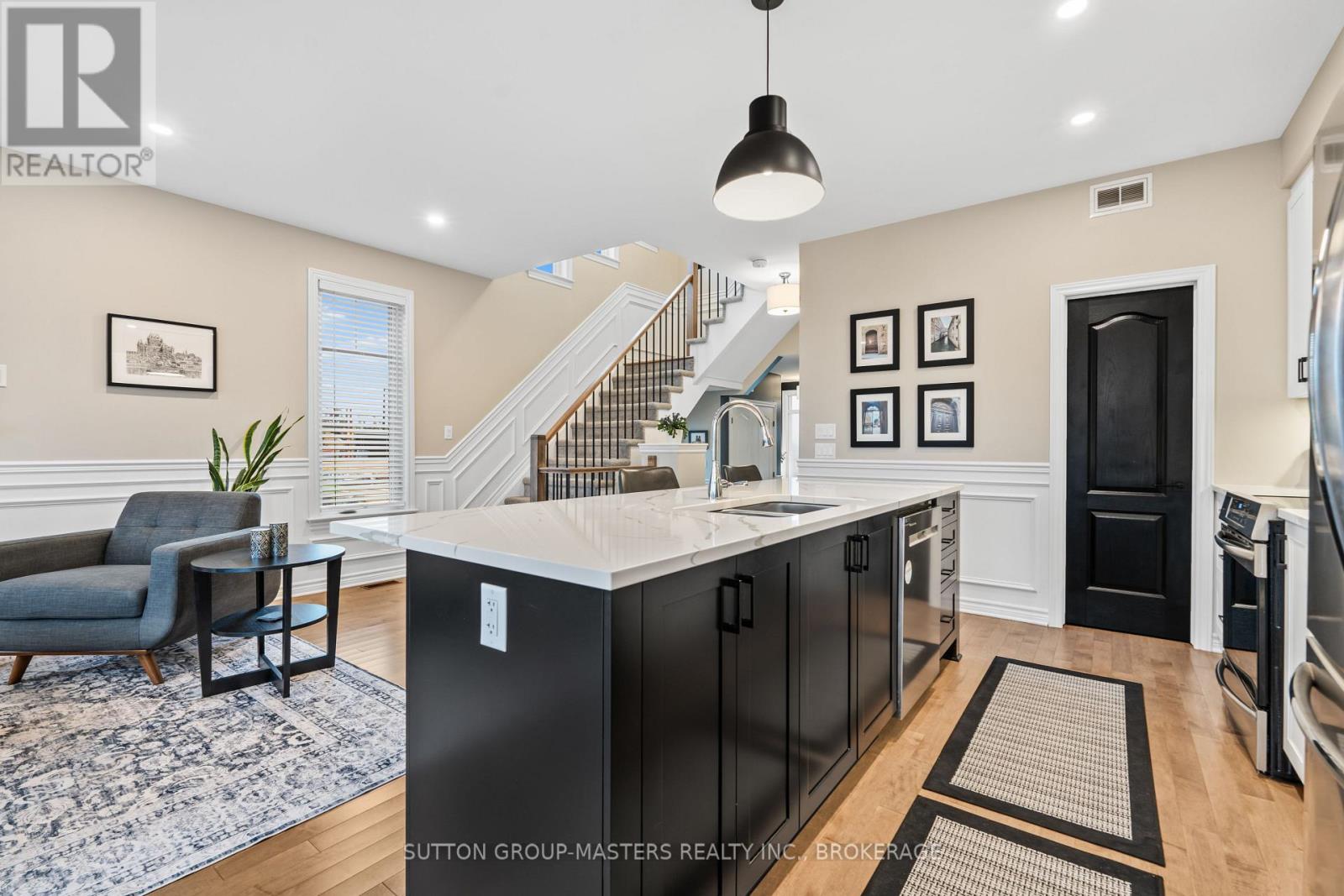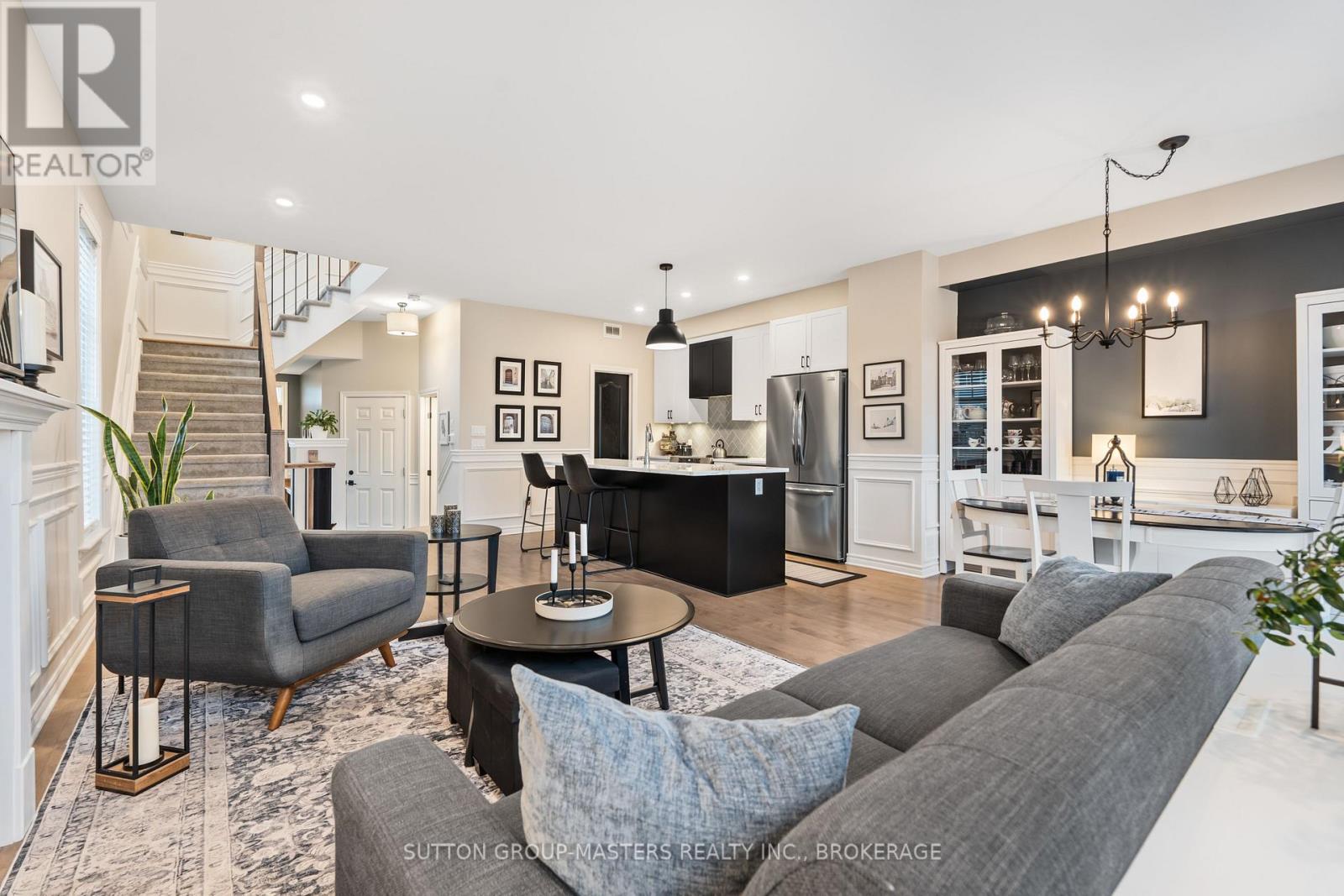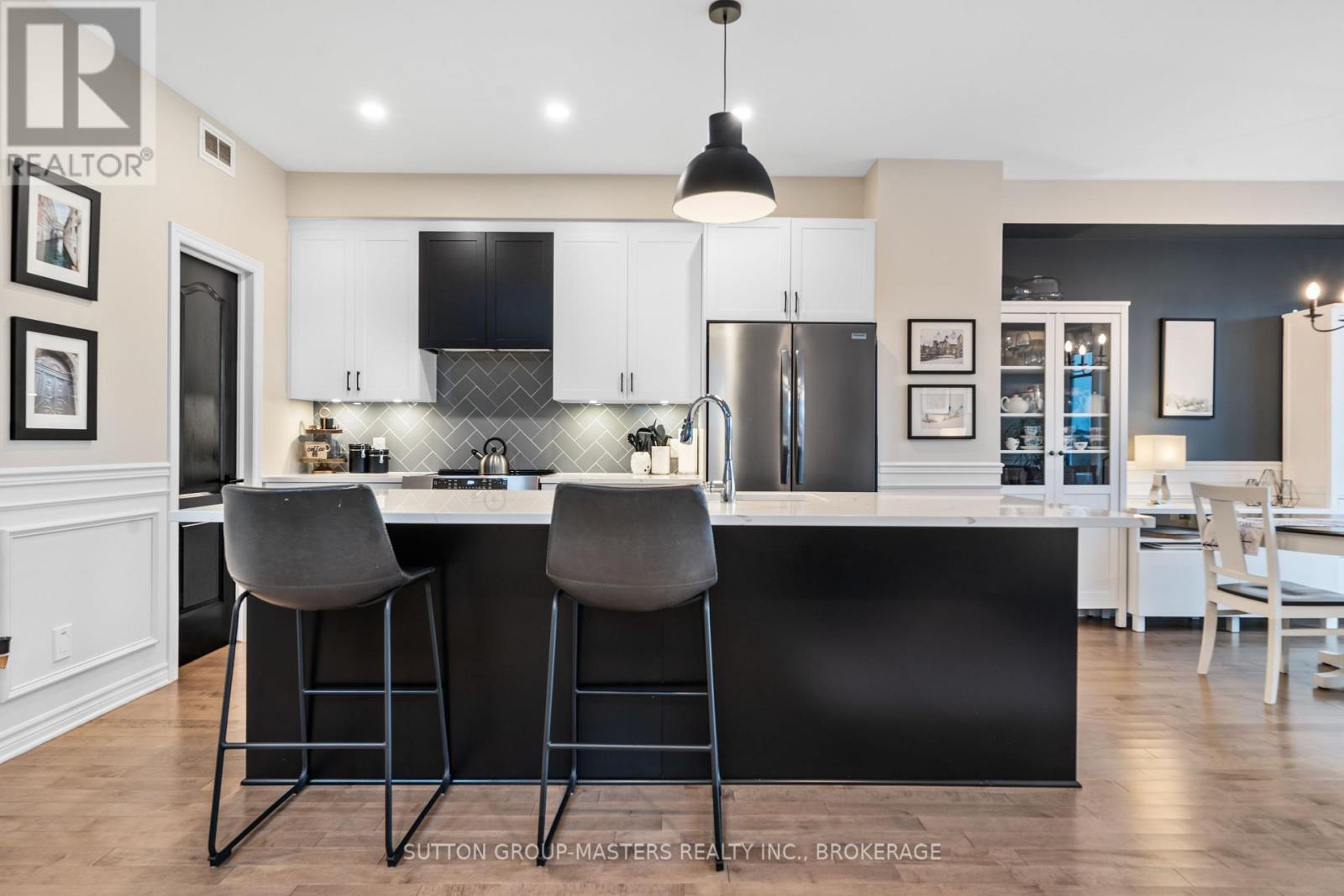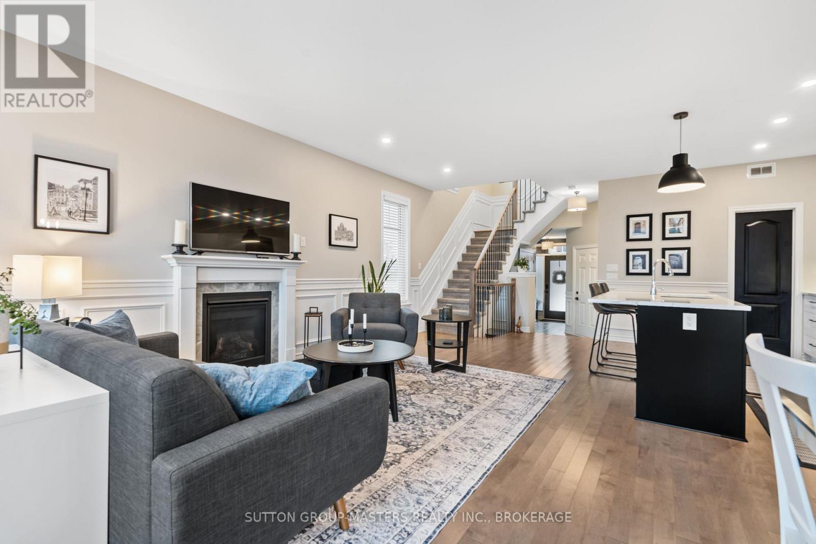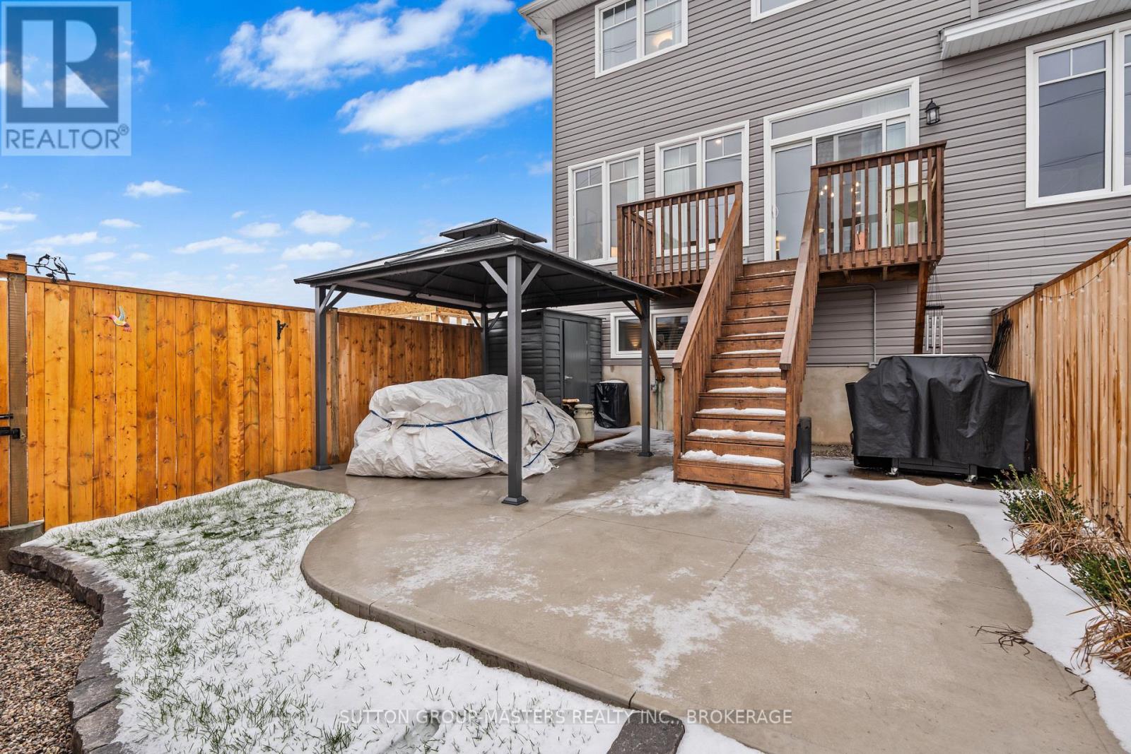 Welcome to 1812 Cinderhill Street - a modern end-unit townhome in Kingston's sought-after Woodhaven neighborhood. This stylish, well-designed home combines comfort, convenience, and family living from the moment you step onto the inviting front porch. Inside, you'll find a bright, open-concept main floor with large windows, custom drapery, and seamless flow between the living, dining, and kitchen areas - perfect for entertaining or relaxing at home. The kitchen features upgraded cabinetry, quartz countertops, a walk-in pantry, generous island, and premium stainless-steel appliances (fridge, stove, microwave, dishwasher). A convenient powder room completes the main level. Upstairs, the spacious primary suite includes a large walk-in closet and a private ensuite with a soaker tub and glass-door shower. Two additional bedrooms, a full main bath AND an upper level laundry with washer and dryer, offer plenty of space for family or guests. The fully finished basement adds versatility with a rec room that's ideal for a home office, gym, or play area. Step outside to your private backyard retreat featuring a patio, gazebo - a great spot for barbecues or quiet evenings outdoors. Additional highlights include a private driveway, attached garage wired for an EV charger, permanently installed Celebright holiday lights, and eavestroughs. Located in a newer west-end subdivision, this home is within walking distance of St. Genevieve Catholic Elementary School, and close to parks, walking paths, shopping, and major commuter routes. With its contemporary finishes, energy-efficient systems, and move-in-ready condition, 1812 Cinderhill Street offers the perfect balance of community and convenience. Call for your personal showing today. (id:29295)