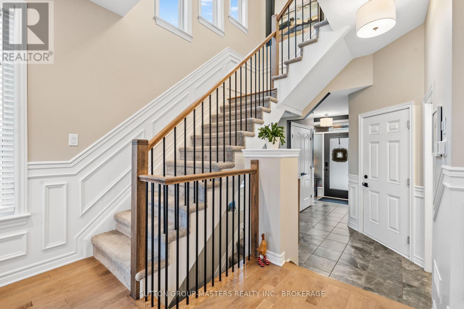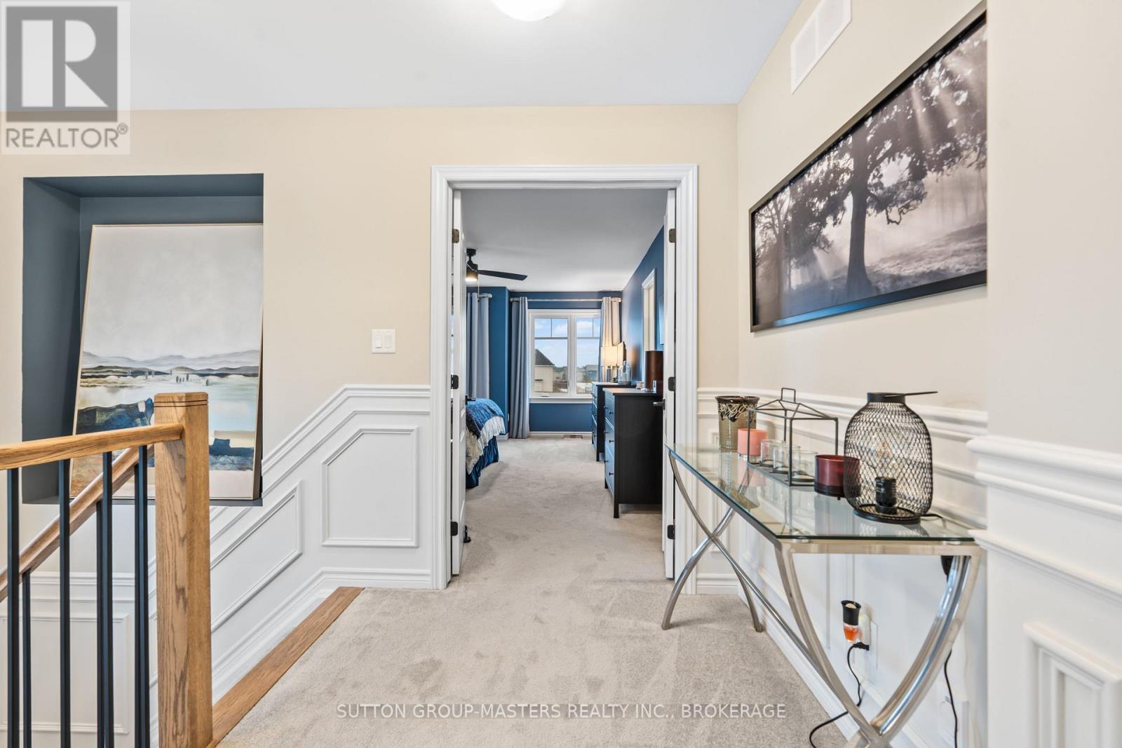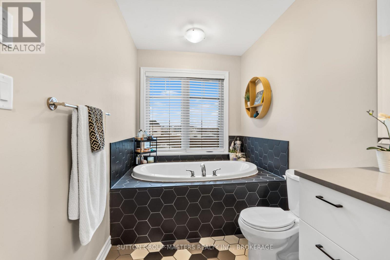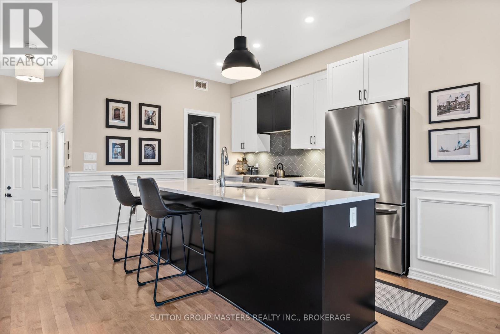Welcome to 1812 Cinderhill Street - a modern end-unit townhome in Kingston's sought-after Woodhaven neighborhood. This stylish, well-designed home combines comfort, convenience, and family living from the moment you step onto the inviting front porch. Inside, you'll find a bright, open-concept main floor with large windows, custom drapery, and seamless flow between the living, dining, and kitchen areas - perfect for entertaining or relaxing at home. The kitchen features upgraded cabinetry, quartz countertops, a walk-in pantry, generous island, and premium stainless-steel appliances (fridge, stove, microwave, dishwasher). A convenient powder room completes the main level. Upstairs, the spacious primary suite includes a large walk-in closet and a private ensuite with a soaker tub and glass-door shower. Two additional bedrooms, a full main bath AND an upper level laundry with washer and dryer, offer plenty of space for family or guests. The fully finished basement adds versatility with a rec room that's ideal for a home office, gym, or play area. Step outside to your private backyard retreat featuring a patio, gazebo - a great spot for barbecues or quiet evenings outdoors. Additional highlights include a private driveway, attached garage wired for an EV charger, permanently installed Celebright holiday lights, and eavestroughs. Located in a newer west-end subdivision, this home is within walking distance of St. Genevieve Catholic Elementary School, and close to parks, walking paths, shopping, and major commuter routes. With its contemporary finishes, energy-efficient systems, and move-in-ready condition, 1812 Cinderhill Street offers the perfect balance of community and convenience. Call for your personal showing today. (id:29295)