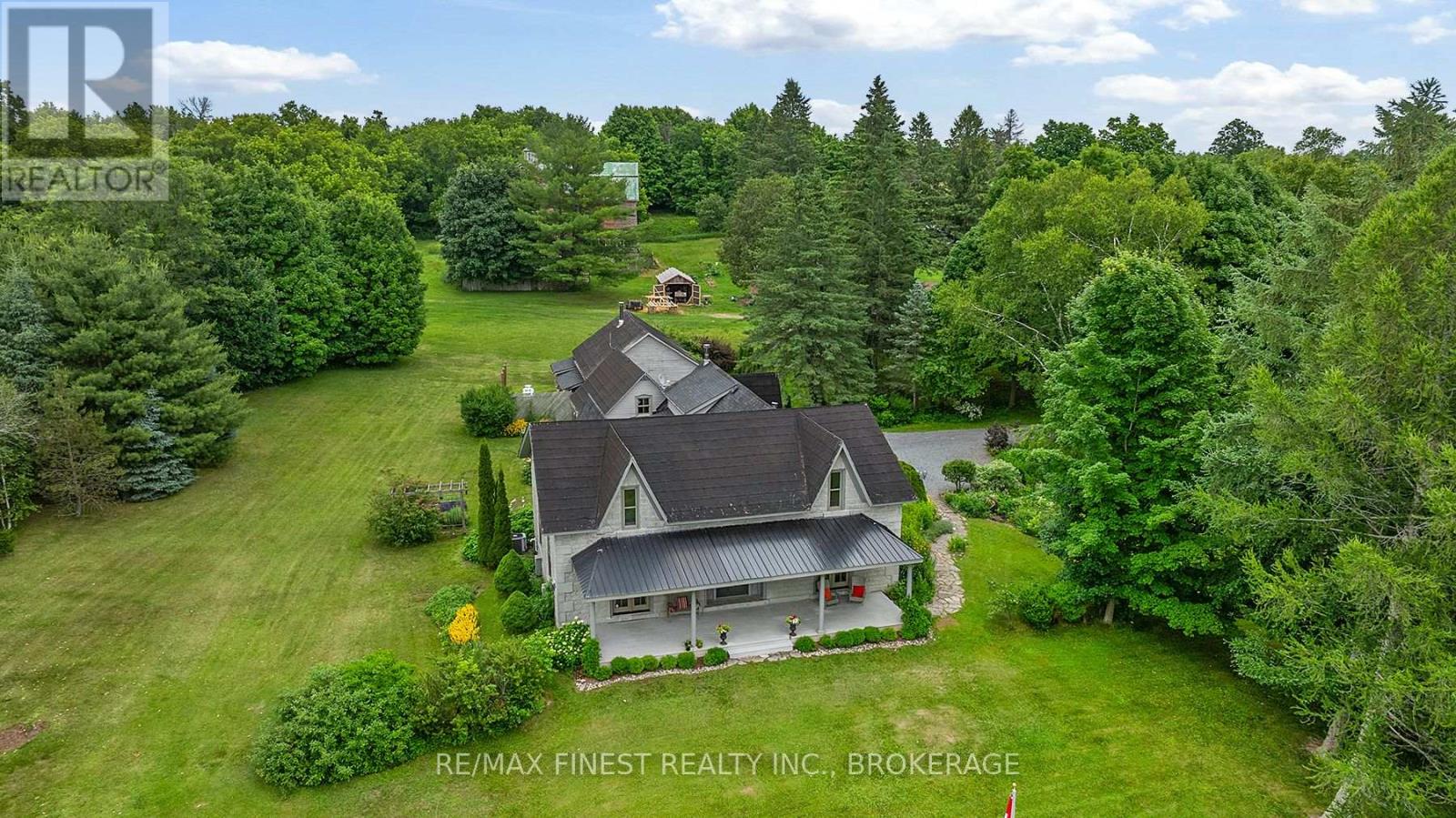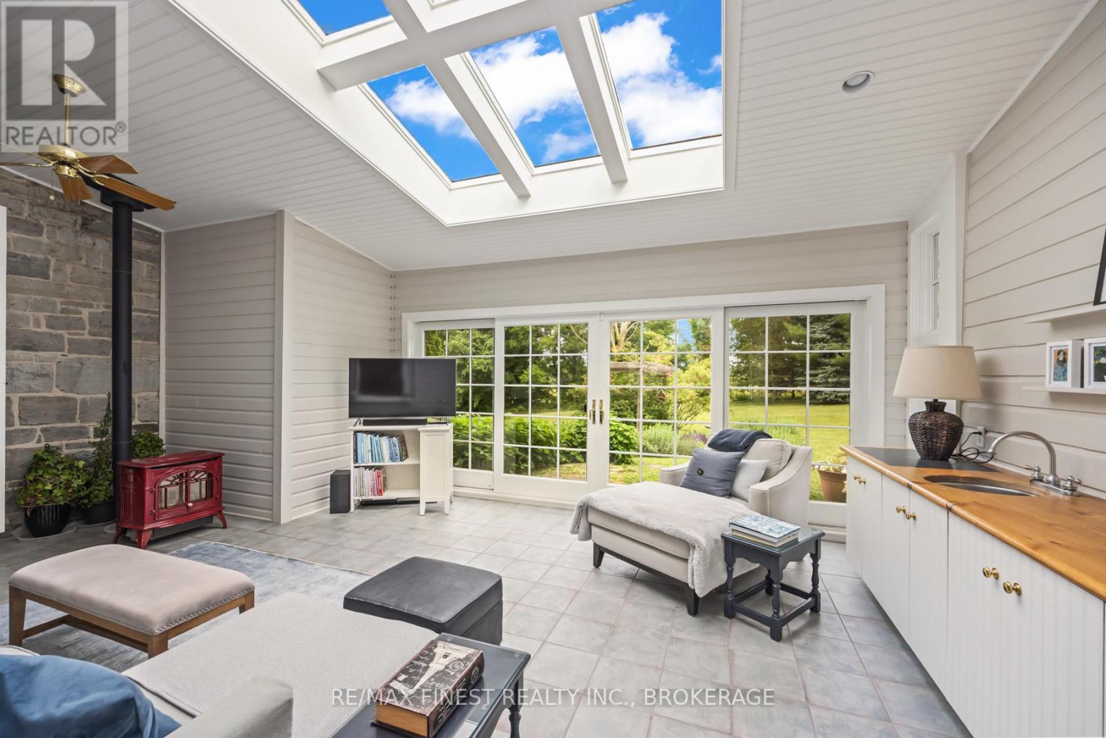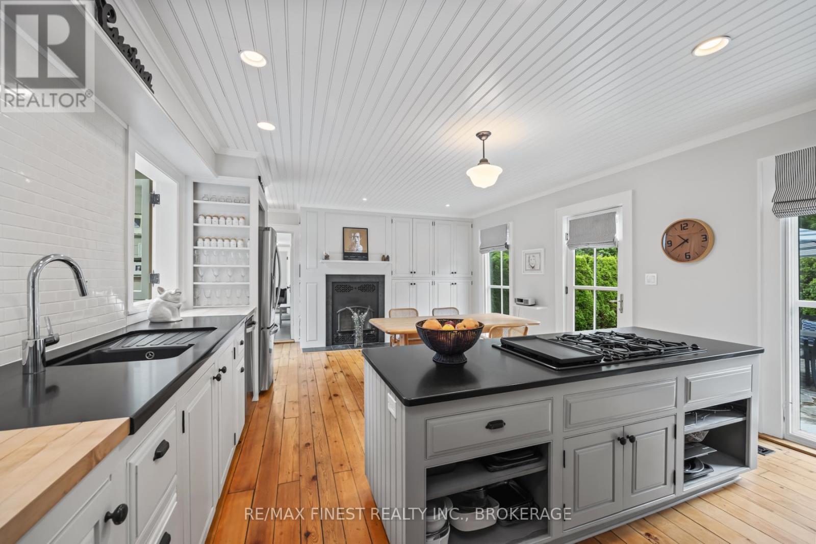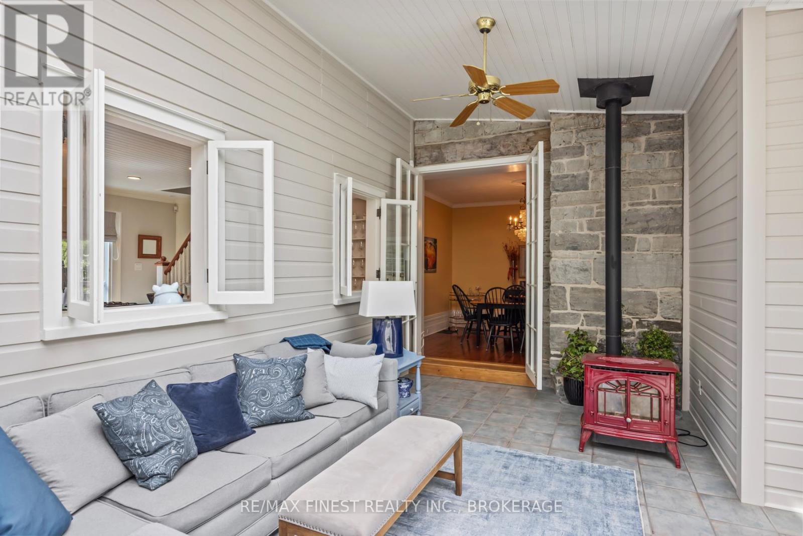 Situated 20 minutes from the West End of Kingston, in the rural village of Wilton, stands one of the area's historic limestone homes. Built in 1836 by Henry Pultz, it has been thoroughly modernized to a high standard, whilst retaining all its original character, providing a haven of tranquility close to the city. At nearly 4000 ft2 the bright living space offers a wonderful layout of remarkable rooms: a family/sunroom with exposed stone, skylights, and French doors overlooking a private garden, a large living room with double French doors ideal for entertaining or relaxation, and a spacious, book-lined study with a timbered ceiling which could serve as a perfect home office or bedroom. A large, bright eat-in kitchen overlooks a patio and boasts a wood-burning fireplace. A separate dining room off the family room makes an additional entertaining space for special occasions. The house is currently configured for 3bedrooms and 4 bathrooms, as well as the study, studio and mezzanine at the back of the home, which offer an ideal spot to accommodate additional bedroom space for a teenager or a guest bedroom with its own separate sitting room on the second level. Each bedroom has its own updated ensuite and a surprising amount of closet space, unusual for this vintage of home. With 7 fully functioning fireplaces plus a pellet stove and in-floor heating in the family room, every bedroom and area in the home has its own separate heat source, in addition to the forced-air furnace and central air conditioning. Outside, a 30 ft covered front porch provides beautiful westerly views and front row seats to spectacular evening skies and summer sunsets. The 1.4-acre grounds of the property, including gardens, patio, trees and landscaping, have been maintained at the same level as the interior. The well-kept barn can continue to provide storage for garden tools and machinery, or could potentially offer a space for a studio, workshop, or any number of other uses. (id:29295)