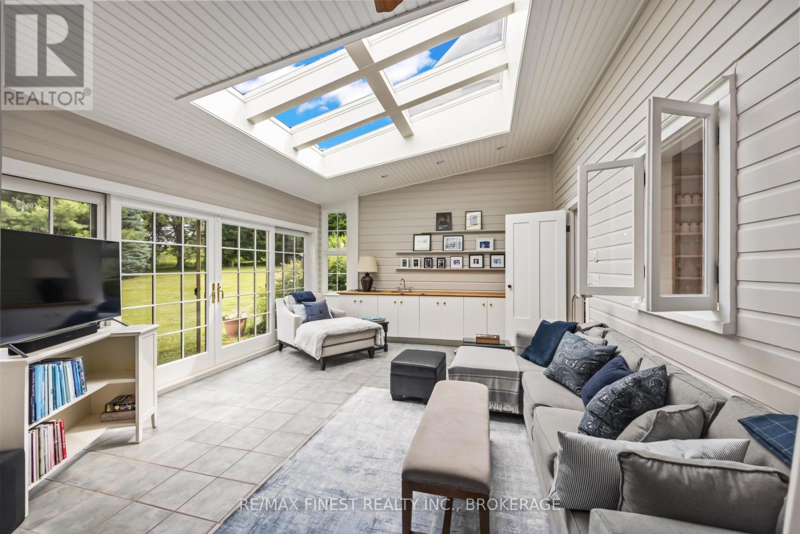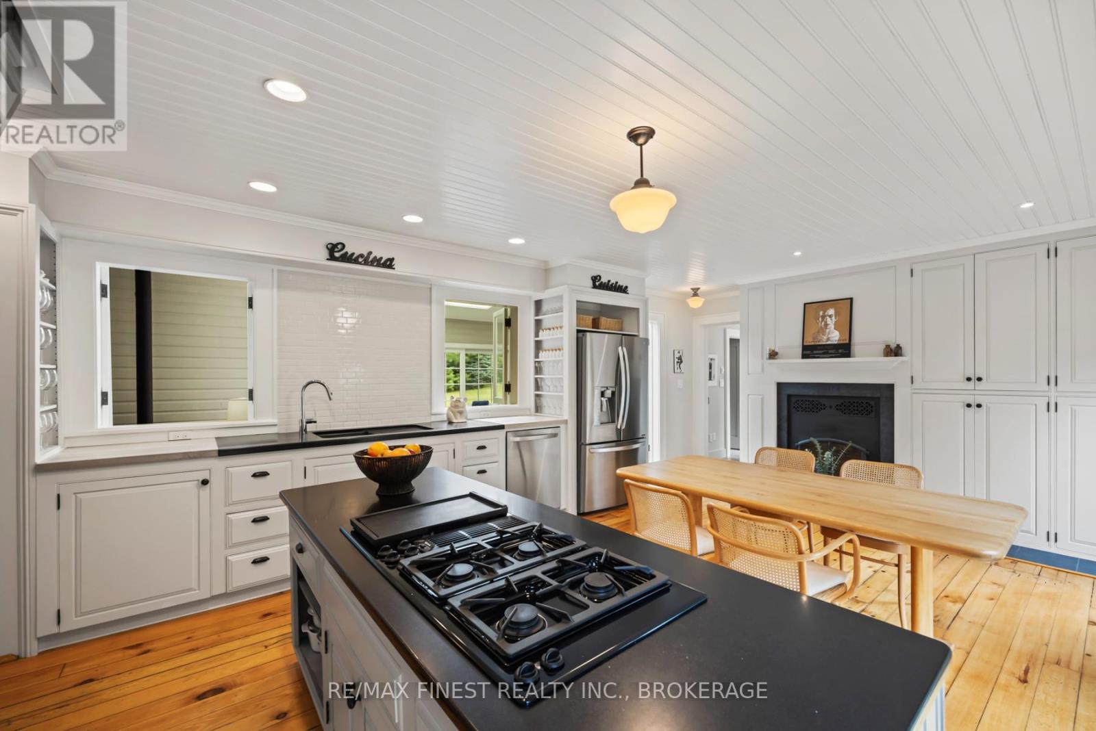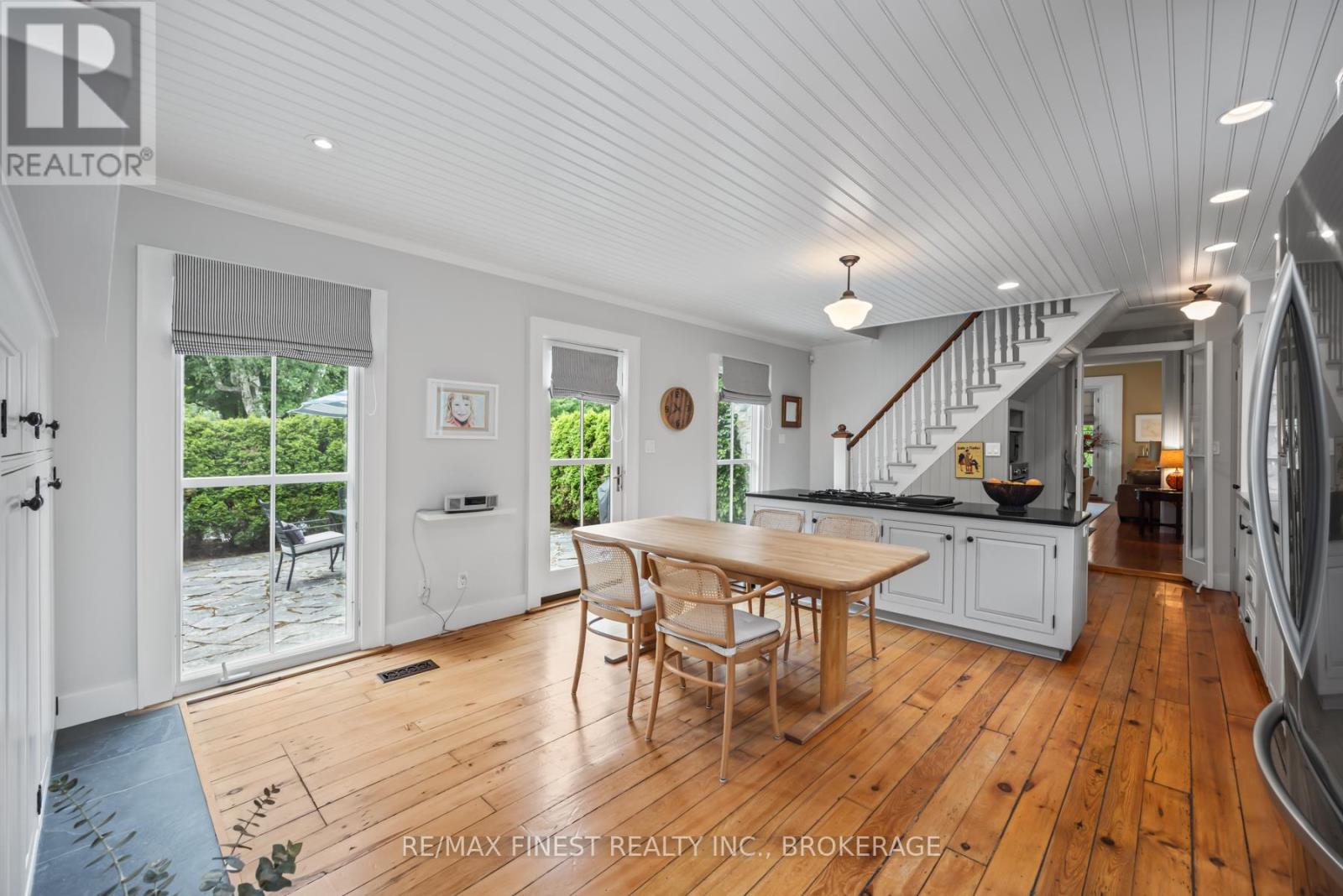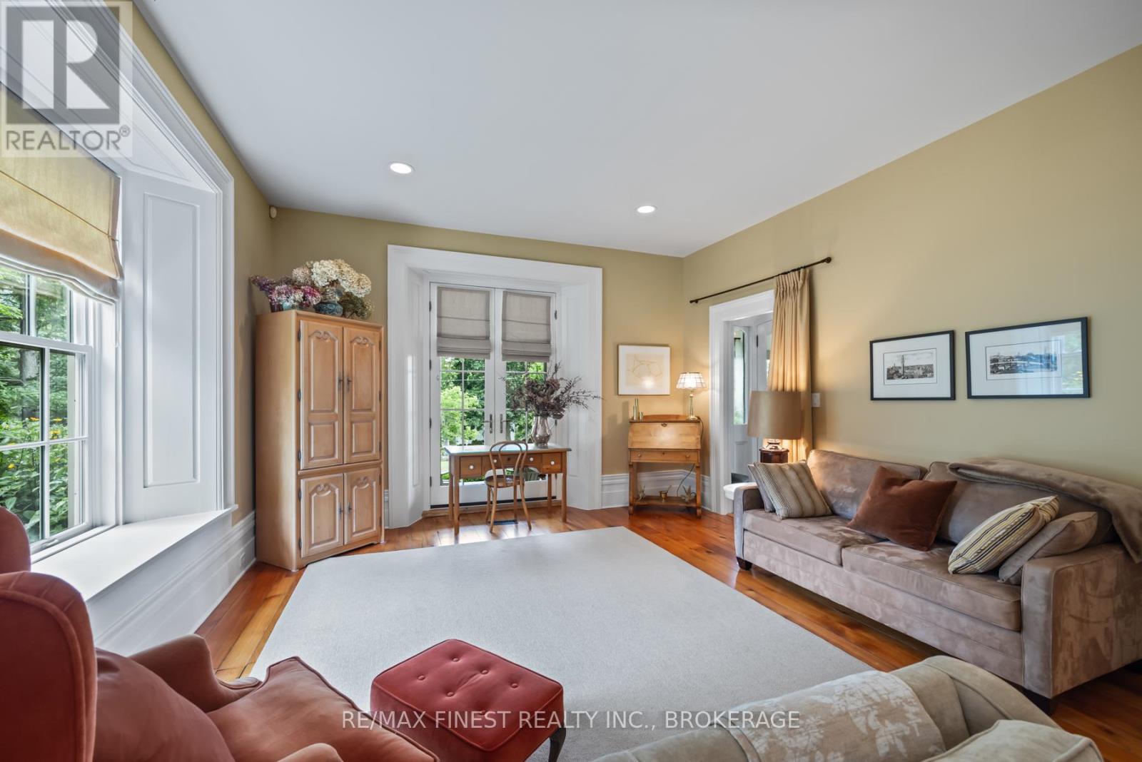 Situated 20 minutes from the West End of Kingston, in the rural village of Wilton, stands one of the area's historic limestone homes. Built in 1836 by Henry Pultz, it has been thoroughly modernized to a high standard, whilst retaining all its original character, providing a haven of tranquility close to the city. At nearly 4000 ft2 the bright living space offers a wonderful layout of remarkable rooms: a family/sunroom with exposed stone, skylights, and French doors overlooking a private garden, a large living room with double French doors ideal for entertaining or relaxation, and a spacious, book-lined study with a timbered ceiling which could serve as a perfect home office or bedroom. A large, bright eat-in kitchen overlooks a patio and boasts a wood-burning fireplace. A separate dining room off the family room makes an additional entertaining space for special occasions. The house is currently configured for 3bedrooms and 4 bathrooms, as well as the study, studio and mezzanine at the back of the home, which offer an ideal spot to accommodate additional bedroom space for a teenager or a guest bedroom with its own separate sitting room on the second level. Each bedroom has its own updated ensuite and a surprising amount of closet space, unusual for this vintage of home. With 7 fully functioning fireplaces plus a pellet stove and in-floor heating in the family room, every bedroom and area in the home has its own separate heat source, in addition to the forced-air furnace and central air conditioning. Outside, a 30 ft covered front porch provides beautiful westerly views and front row seats to spectacular evening skies and summer sunsets. The 1.4-acre grounds of the property, including gardens, patio, trees and landscaping, have been maintained at the same level as the interior. The well-kept barn can continue to provide storage for garden tools and machinery, or could potentially offer a space for a studio, workshop, or any number of other uses. (id:29295)