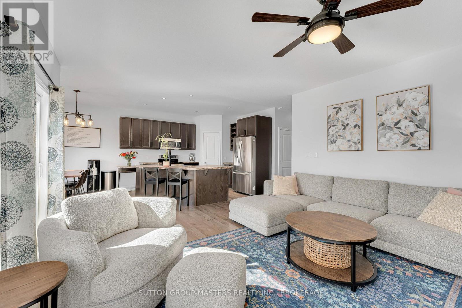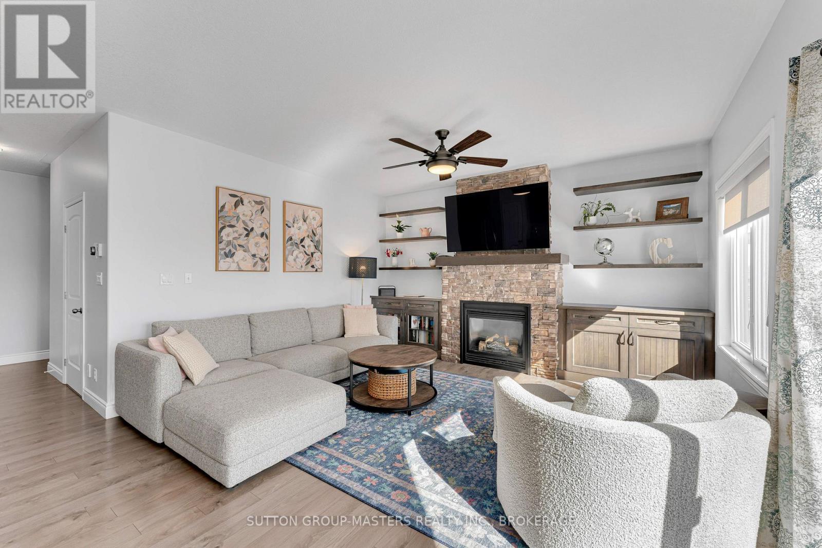 Welcome to 189 MacDougall Drive. Built in 2012 and situated on a quiet street, this impressive property offers exceptional curb appeal, a two-car garage with inside entry, three bedrooms, four bathrooms, and a walk-out basement backing onto a private forest. The main floor features a bright, open-concept layout starting with a two-story foyer. It includes a mudroom/laundry room with garage access, a two-piece bathroom, and a modern kitchen with a corner pantry and stainless-steel appliances. The spacious dining and living area, complete with a gas fireplace and custom built-ins, leads to a large deck overlooking the wooded rear of the lot. Upstairs, you will find two bedrooms, a four-piece main bathroom, and a primary suite featuring a walk-in closet and a five-piece ensuite. The lower level offers a large recreation room that walks out to a concrete patio, along with an additional two-piece bathroom, utility room, and storage space. This home is a must-see that checks every box. (id:29295)