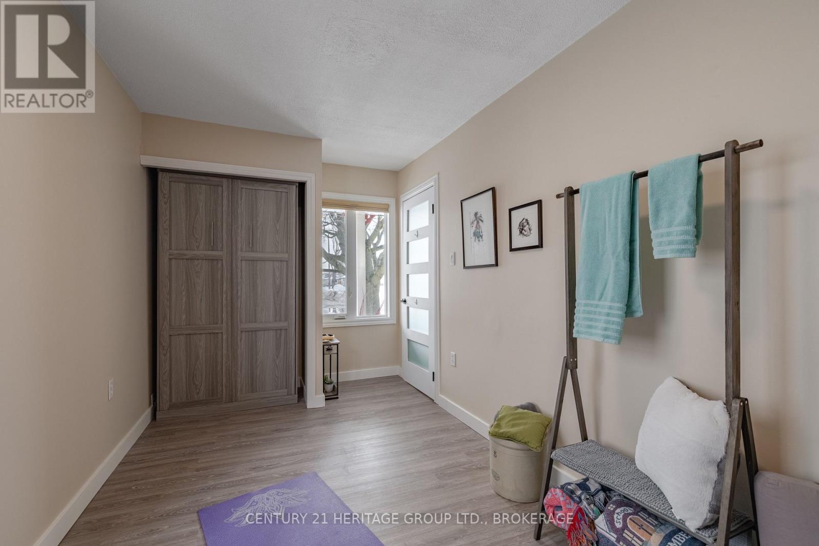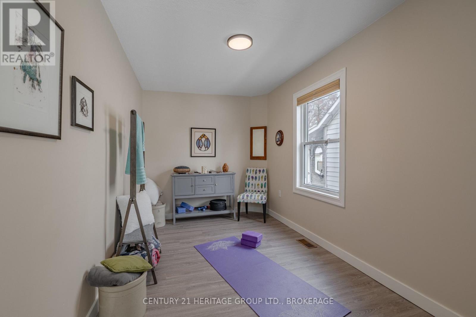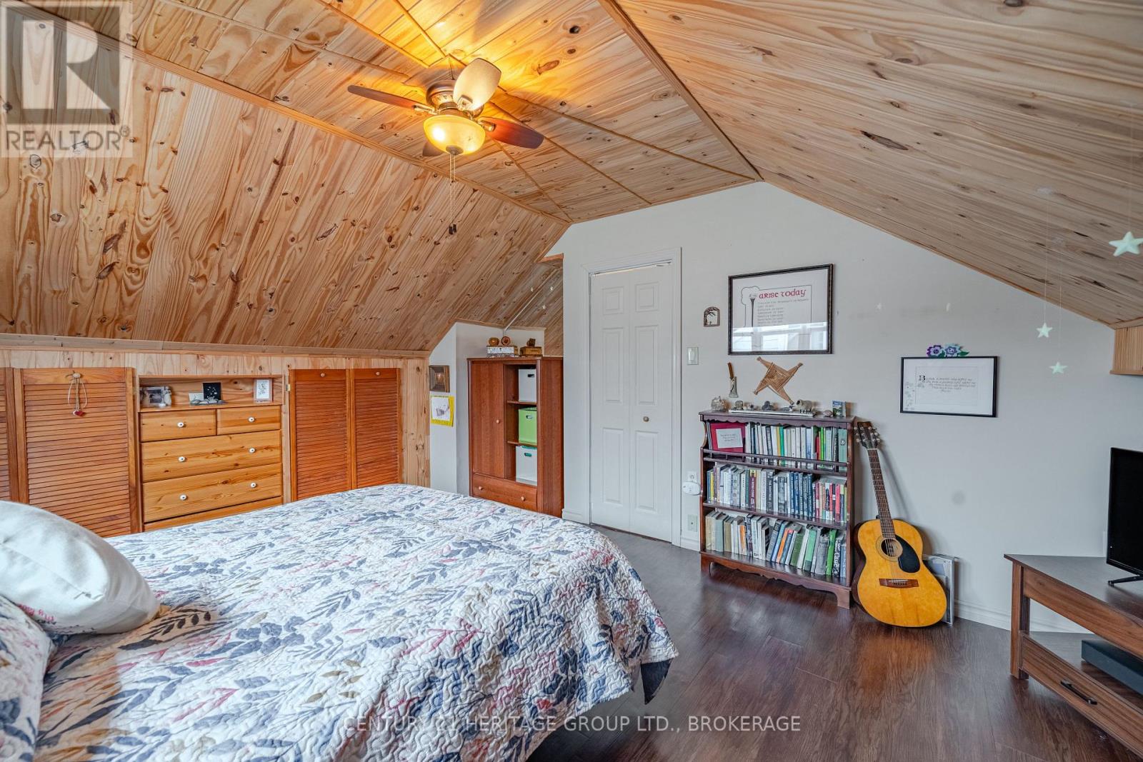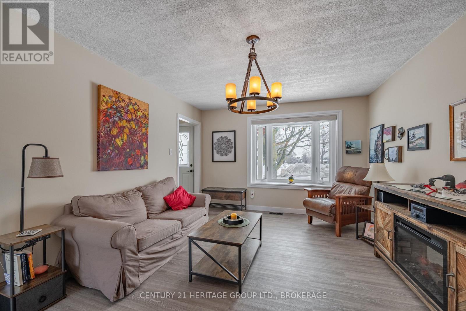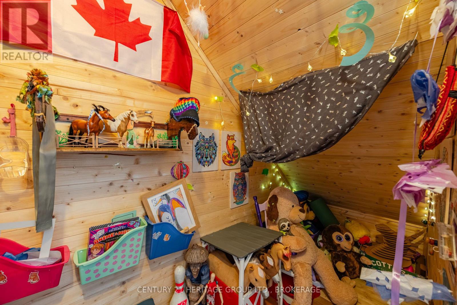 If I got excited about every house, I'd be nothing more than a puddle by now, or one of those little dogs that runs into walls. Luckily, I've learned to ration my enthusiasm, to save it up like pocket money, waiting for the right place to spend big. 19 Fifth Avenue, plum centre of Kingscourt and close to the parks and allotments, churches and the high school, is an early 2026 standout. From its last-forever and forest-green metal roof, to its lower level Muskoka cottage set-up, as convincing as a movie set, this detached and brilliant home is just slightly different from anything I've seen before in the neighbourhood. The renovations are unusually comprehensive and take in both infrastructure and energy-efficiency (insulation, vinyl siding, furnace, AC) and aesthetics (bathrooms, luxury vinyl flooring, stainless steel appliances, windows); it's a long list, much longer than I'm letting on. The feeling is of a home in need of nothing but your company. There are two bedrooms upstairs, and the bigger of the two (with its vaulted ceiling, its clerestory window) is lined with pine and feels like a sanctuary, a secluded haven from the daily grind. There is a third bedroom on the main level, and if you need a fourth, then it's already set up for you in the basement, one room over from the woodstove. The re-done kitchen is spacious enough for your dining table and your nightly catch-ups. The idea is that you could have a family at 19 Fifth and not do a thing, just send the kids on foot to school and pass the evenings sitting on the swing-chair that hangs out front all summer like a local landmark. The garage (how did I forget the adorable, low-slung period garage?) contains a workshop off to one side, and the garden it sits in is, for want of a better word, simply splendid (check out the summer photos). (id:29295)
