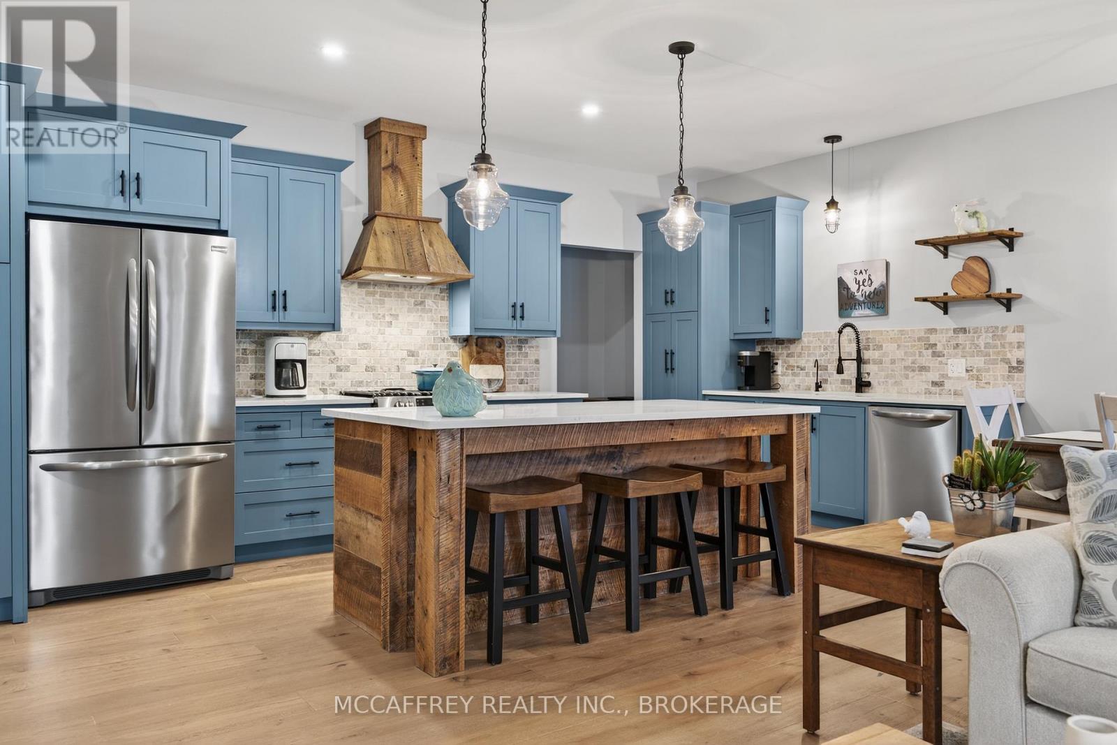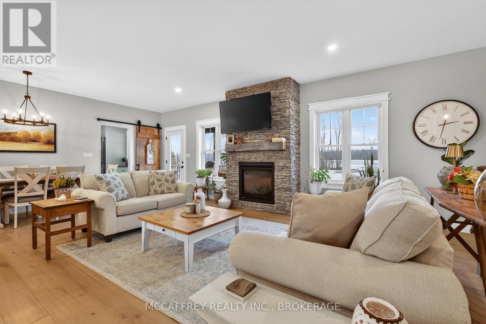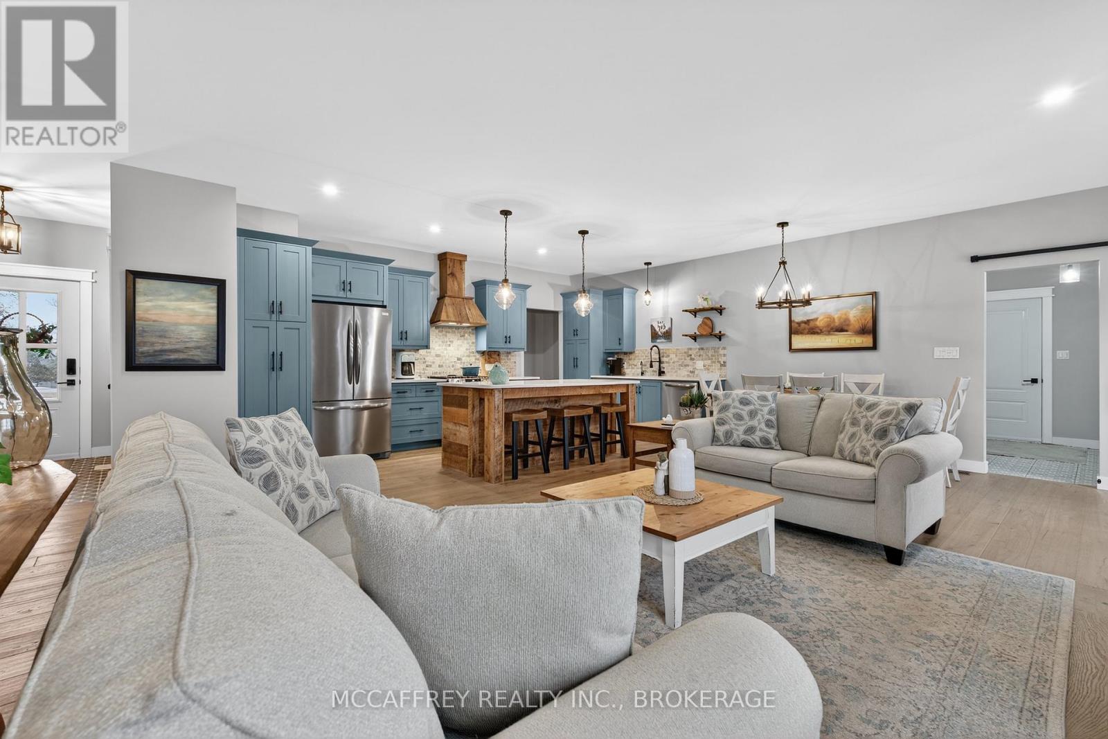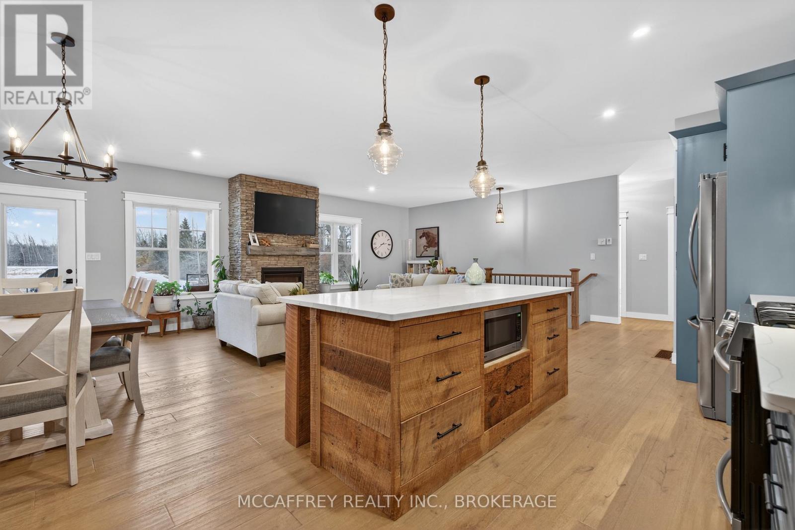 Welcome to this beautiful country home offering space, style, and comfort on the scenic outskirts of town. This move-in ready property truly shines with a blend of modern finishes and warm, inviting touches throughout, all set on an expansive, meticulously maintained lot of approximately 2.2 acres-perfect for family living or peaceful rural retreats. Step inside to discover a bright, open-concept main floor. At the heart of the home is a lovely kitchen boasting beautiful blue cabinetry, gleaming countertops, a large island, and high-end stainless steel appliances. The kitchen seamlessly flows into the sun-filled dining area, ideal for casual meals or formal gatherings alike. Just beyond, the inviting living room features two lovely windows framing peaceful country views and a cozy gas fireplace, adding warmth and ambiance for relaxed evenings. Three generously sized bedrooms each offer ample closet space, and the elegant, spa-inspired main bathroom features a double vanity and a beautiful walk-in shower. The main-floor laundry is conveniently located in the large mudroom just off the attached garage, streamlining daily routines and offering extra storage and coat hooks, perfect for busy families and pet owners. The fully finished lower level offers great versatility with an expansive family/rec room-ideal for movie nights, playtime, or a home gym-and plenty of additional storage. Outside, enjoy the tranquility of country living with a sweeping backyard perfect for children, pets, or gardening enthusiasts. Arriving at the property, you're greeted by an impressive entrance featuring elegant stone pillars and a matching stone wall, creating instant curb appeal. The long, sweeping driveway provides ample parking and a grand welcome. Located just minutes from downtown Napanee, schools, and an easy drive to Kingston or Prince Edward County, this is a rare opportunity to enjoy country living on over two acres with all the conveniences of town. (id:29295)