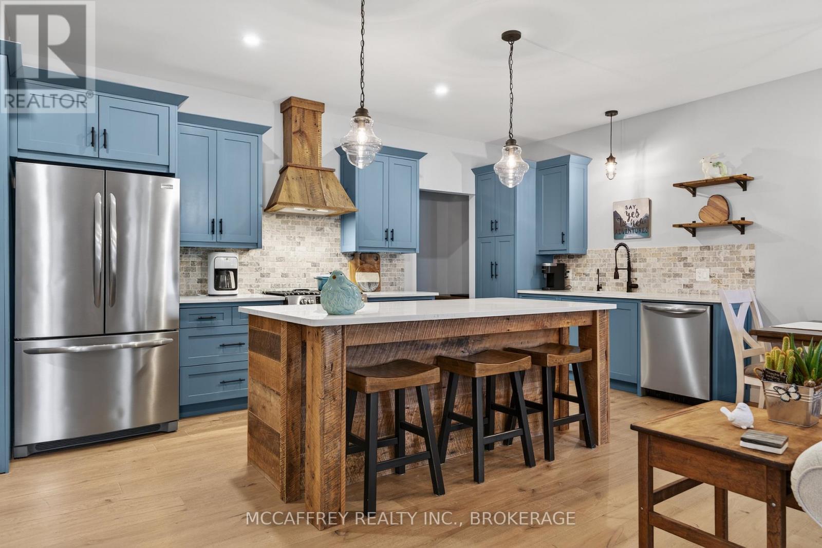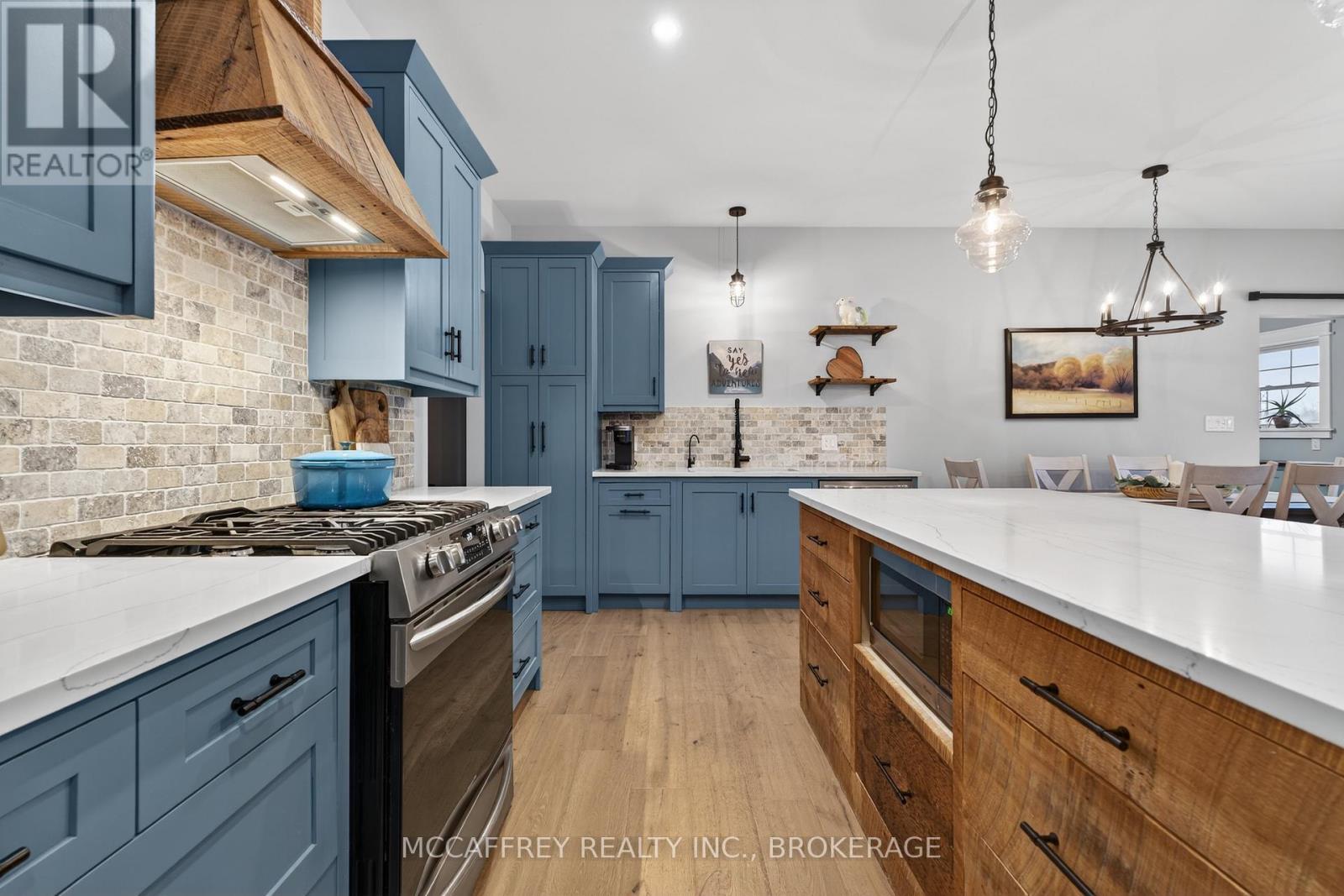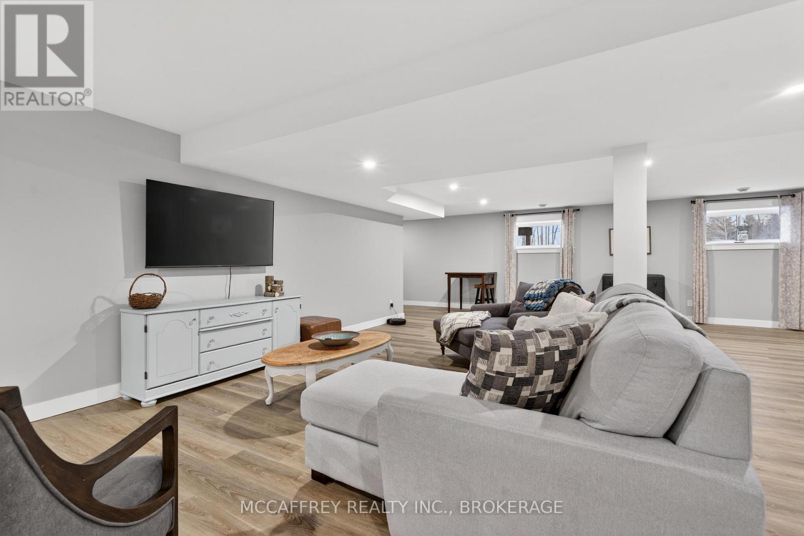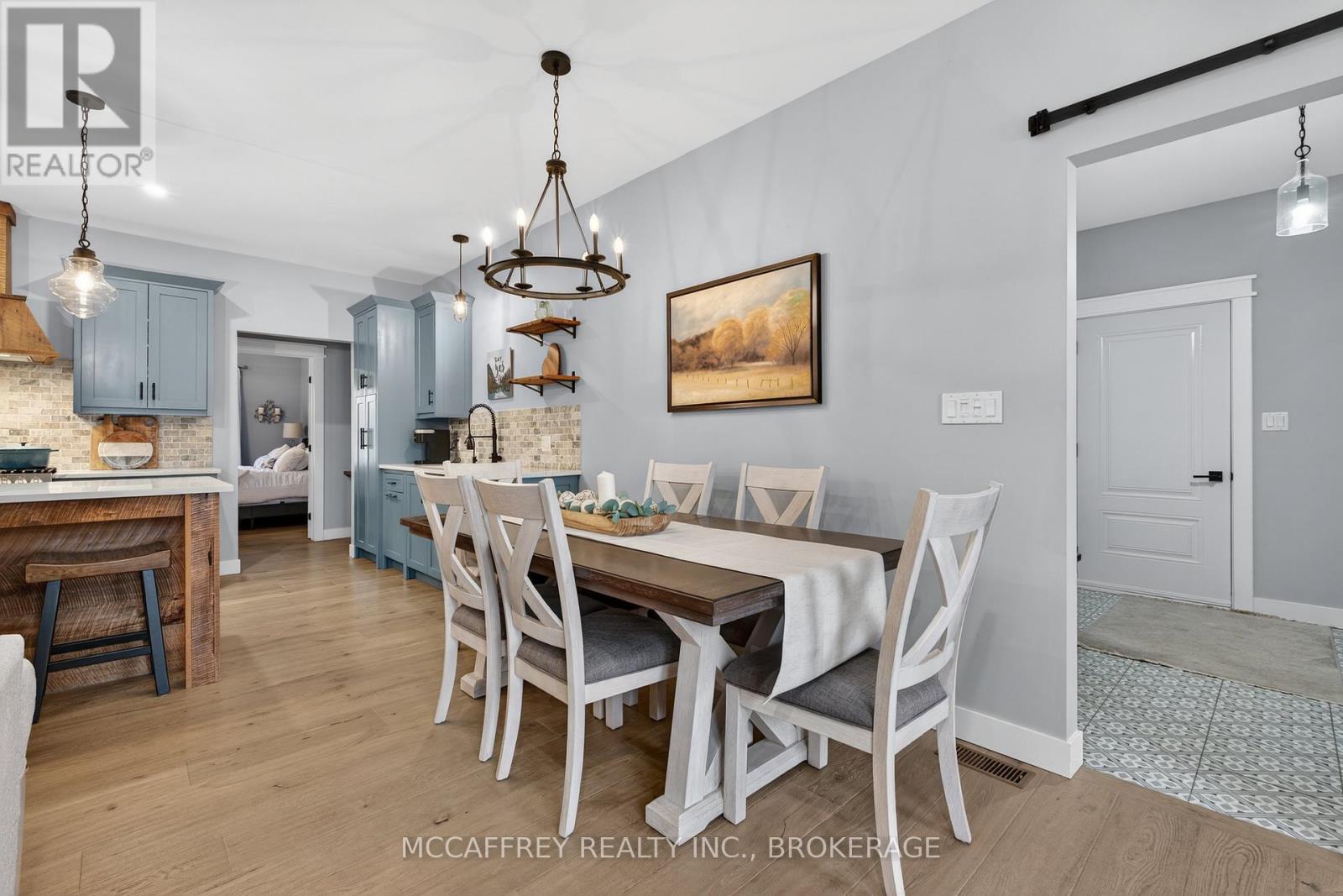 Welcome to this beautiful country home offering space, style, and comfort on the scenic outskirts of town. This move-in ready property truly shines with a blend of modern finishes and warm, inviting touches throughout, all set on an expansive, meticulously maintained lot of approximately 2.2 acres-perfect for family living or peaceful rural retreats. Step inside to discover a bright, open-concept main floor. At the heart of the home is a lovely kitchen boasting beautiful blue cabinetry, gleaming countertops, a large island, and high-end stainless steel appliances. The kitchen seamlessly flows into the sun-filled dining area, ideal for casual meals or formal gatherings alike. Just beyond, the inviting living room features two lovely windows framing peaceful country views and a cozy gas fireplace, adding warmth and ambiance for relaxed evenings. Three generously sized bedrooms each offer ample closet space, and the elegant, spa-inspired main bathroom features a double vanity and a beautiful walk-in shower. The main-floor laundry is conveniently located in the large mudroom just off the attached garage, streamlining daily routines and offering extra storage and coat hooks, perfect for busy families and pet owners. The fully finished lower level offers great versatility with an expansive family/rec room-ideal for movie nights, playtime, or a home gym-and plenty of additional storage. Outside, enjoy the tranquility of country living with a sweeping backyard perfect for children, pets, or gardening enthusiasts. Arriving at the property, you're greeted by an impressive entrance featuring elegant stone pillars and a matching stone wall, creating instant curb appeal. The long, sweeping driveway provides ample parking and a grand welcome. Located just minutes from downtown Napanee, schools, and an easy drive to Kingston or Prince Edward County, this is a rare opportunity to enjoy country living on over two acres with all the conveniences of town. (id:29295)