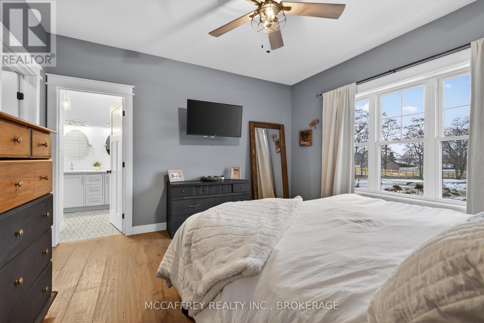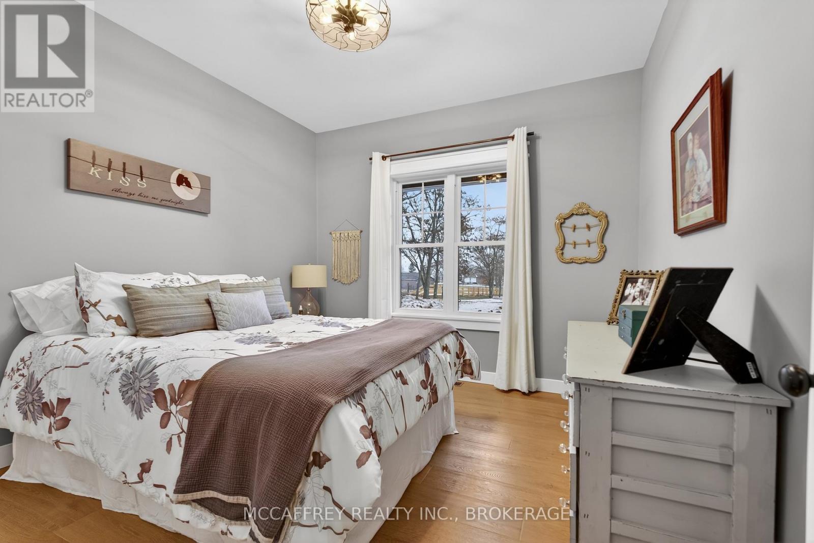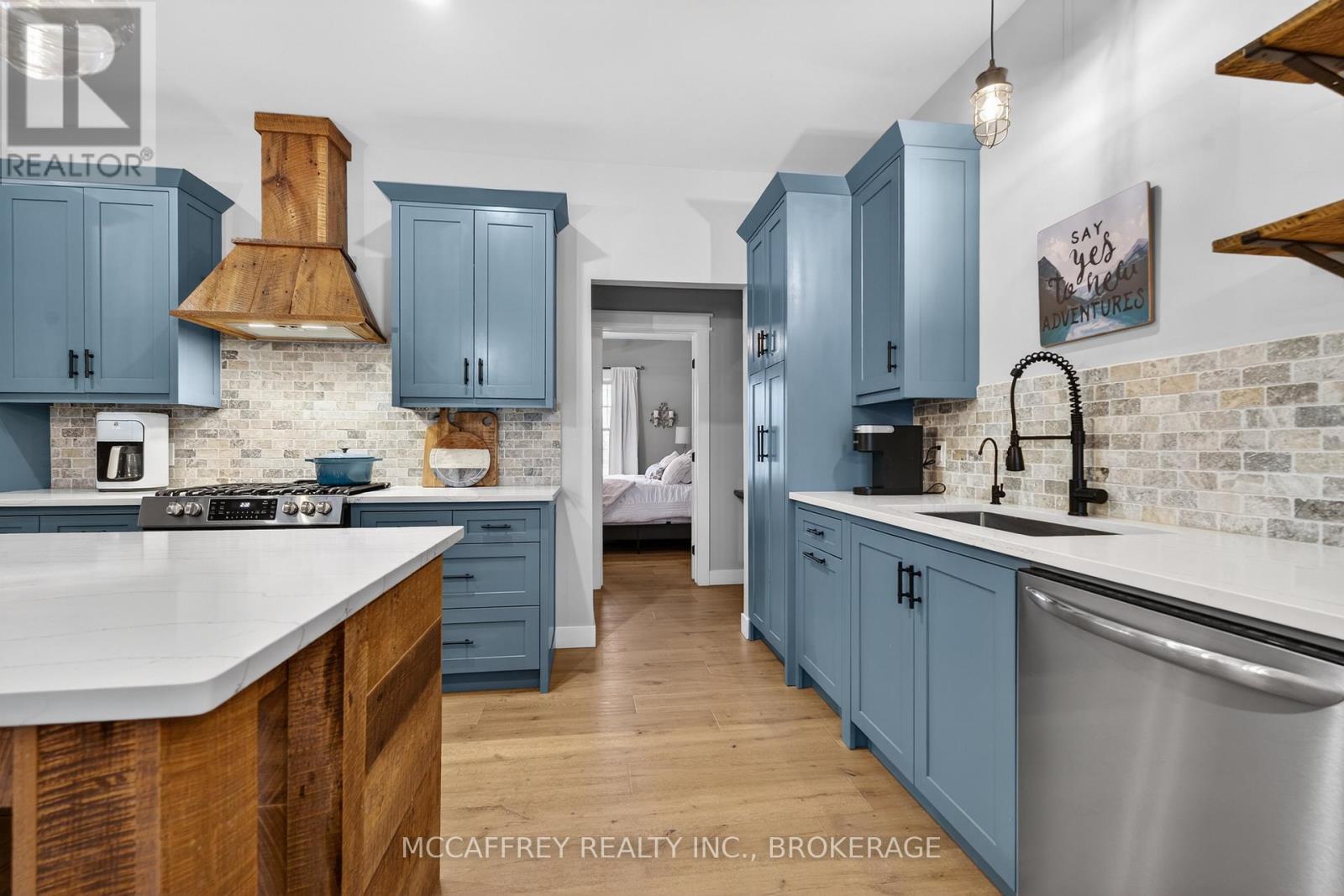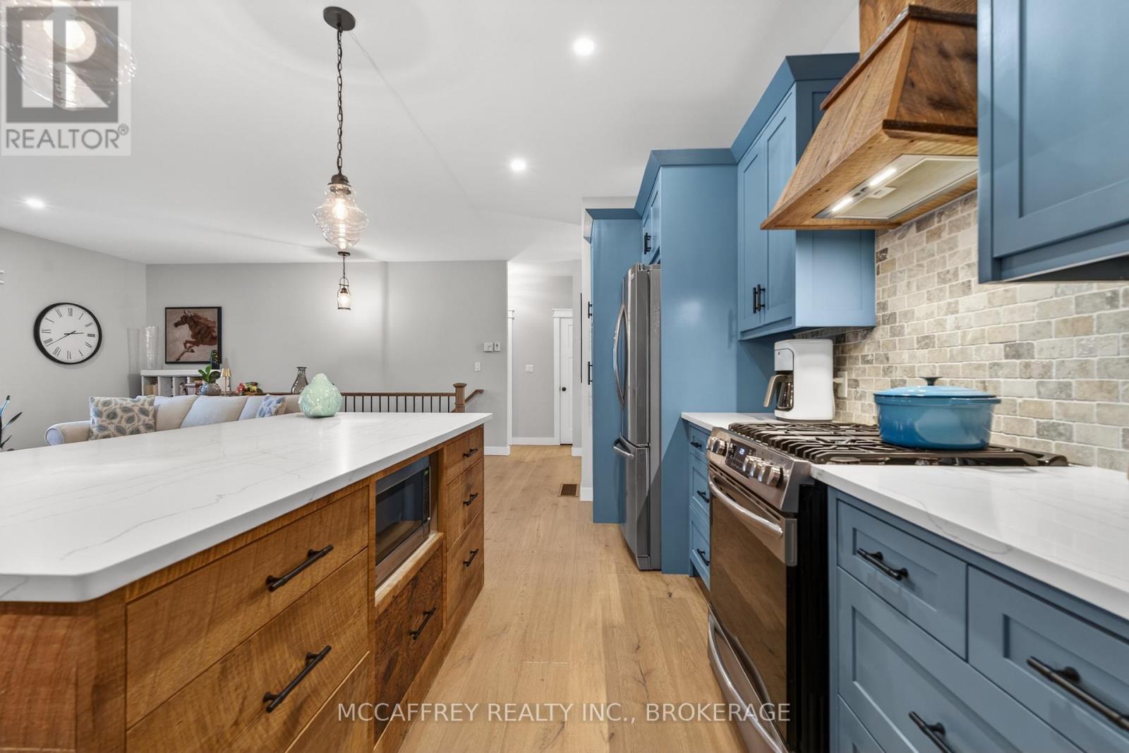 Welcome to this beautiful country home offering space, style, and comfort on the scenic outskirts of town. This move-in ready property truly shines with a blend of modern finishes and warm, inviting touches throughout, all set on an expansive, meticulously maintained lot of approximately 2.2 acres-perfect for family living or peaceful rural retreats. Step inside to discover a bright, open-concept main floor. At the heart of the home is a lovely kitchen boasting beautiful blue cabinetry, gleaming countertops, a large island, and high-end stainless steel appliances. The kitchen seamlessly flows into the sun-filled dining area, ideal for casual meals or formal gatherings alike. Just beyond, the inviting living room features two lovely windows framing peaceful country views and a cozy gas fireplace, adding warmth and ambiance for relaxed evenings. Three generously sized bedrooms each offer ample closet space, and the elegant, spa-inspired main bathroom features a double vanity and a beautiful walk-in shower. The main-floor laundry is conveniently located in the large mudroom just off the attached garage, streamlining daily routines and offering extra storage and coat hooks, perfect for busy families and pet owners. The fully finished lower level offers great versatility with an expansive family/rec room-ideal for movie nights, playtime, or a home gym-and plenty of additional storage. Outside, enjoy the tranquility of country living with a sweeping backyard perfect for children, pets, or gardening enthusiasts. Arriving at the property, you're greeted by an impressive entrance featuring elegant stone pillars and a matching stone wall, creating instant curb appeal. The long, sweeping driveway provides ample parking and a grand welcome. Located just minutes from downtown Napanee, schools, and an easy drive to Kingston or Prince Edward County, this is a rare opportunity to enjoy country living on over two acres with all the conveniences of town. (id:29295)