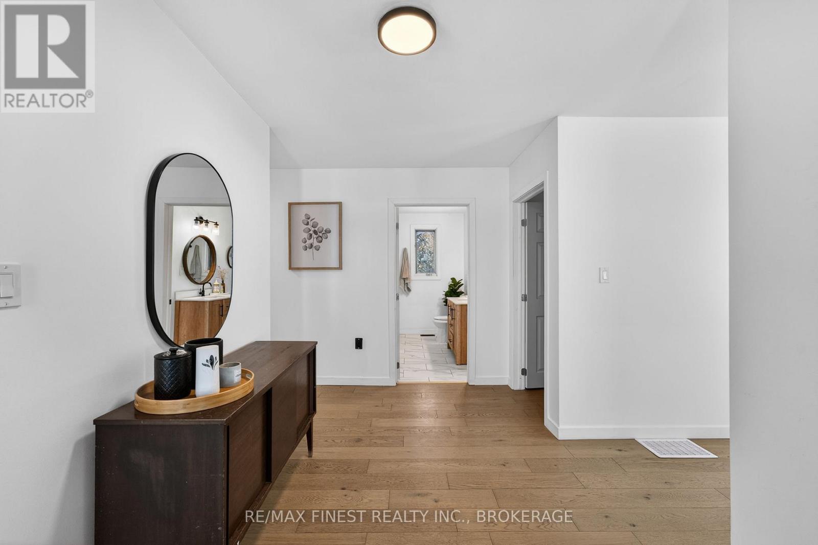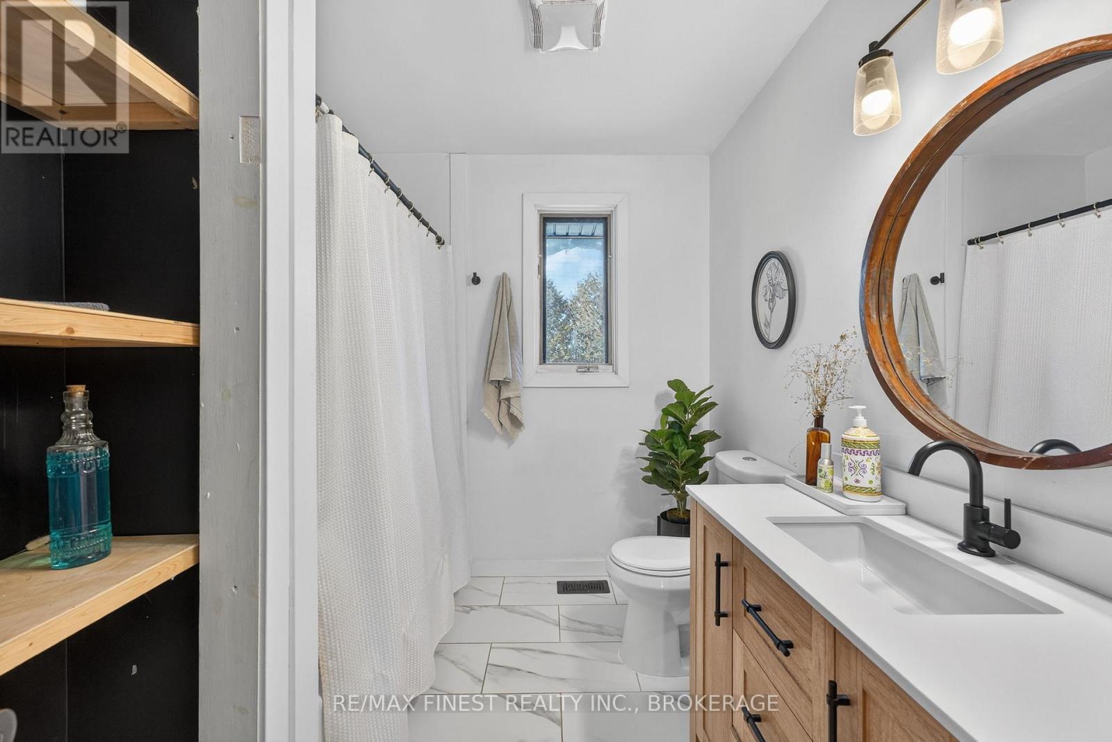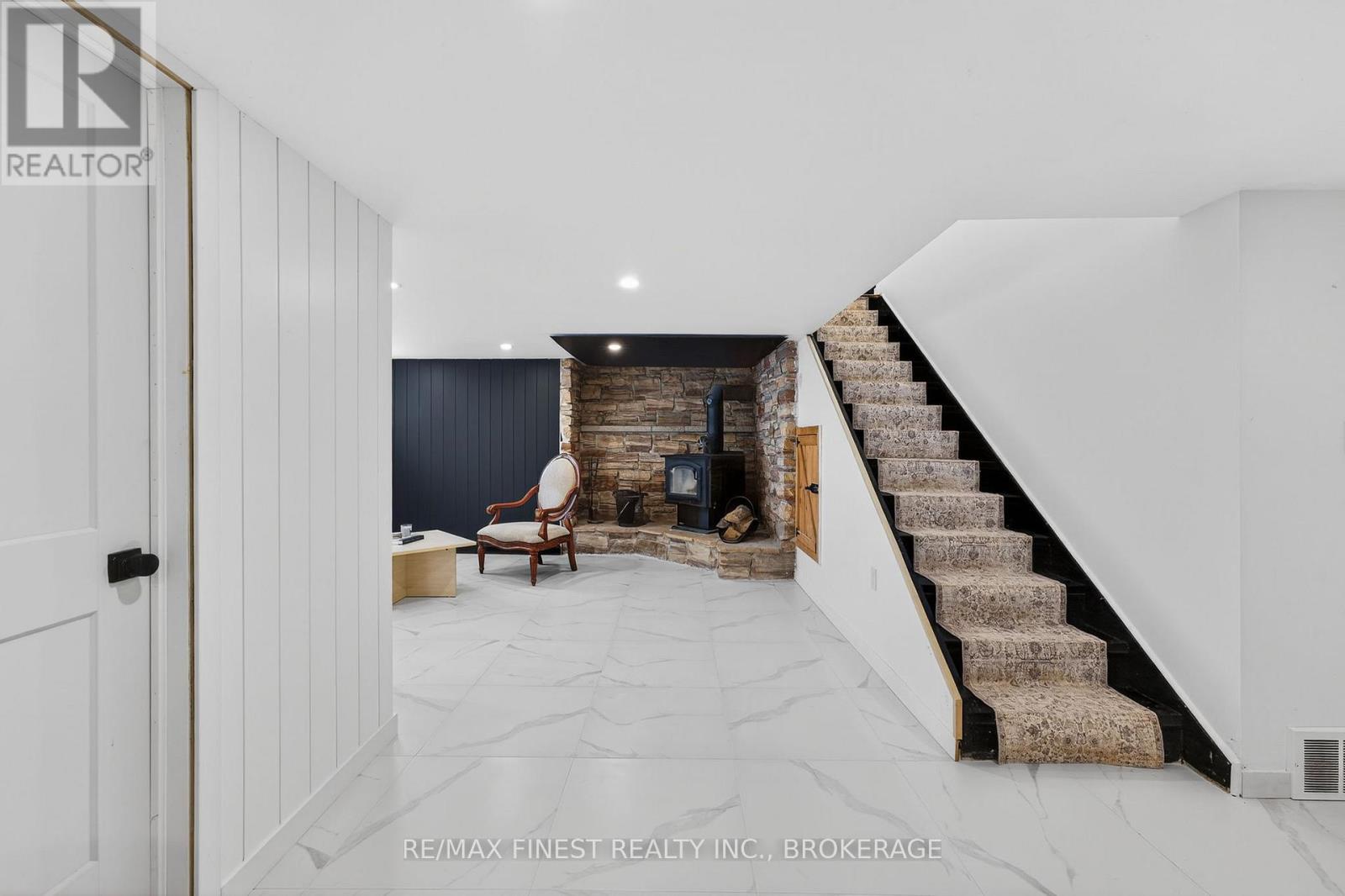 Welcome to 2055 Switzerville Road, a beautifully renovated all brick bungalow set on just over an acre of peaceful countryside, complete with an attached one car garage. Thoughtfully updated from top to bottom, this move-in-ready home blends modern finishes with timeless rural charm. Step inside to discover quality craftsmanship throughout, beginning with a bright eat-in kitchen featuring a striking waterfall island, generous cabinetry, and a seamless flow for everyday living and entertaining. A spacious separate dining room, framed by large windows, fills the space with natural light and scenic views. The main floor offers a private primary retreat with a three-piece ensuite and ample closet space, along with a second bedroom and a four-piece bath. Downstairs, the fully finished walk-up basement provides exceptional additional living space, including a cozy rec room warmed by a woodstove, two well-sized bedrooms, a three-piece bathroom, and a utility room with abundant storage and direct access to the garage. Outdoors, enjoy the tranquility of country living with a newly installed deck, gazebo, and an inviting in-ground saltwater pool that is perfect for long summer days and memorable gatherings. The expansive yard offers plenty of room to relax, entertain, or simply take in the surrounding natural beauty. Notable updates include a heat pump (2023), kitchen renovation (2023), woodstove (2024), metal roof (2024), pool liner (2022), pool pump (2024), and salt cell (2025) and so much more. This exceptional property offers the comfort of a modernized home paired with the serenity of an idyllic country setting. A true retreat close to town but far enough away to be immersed in the countryside. (id:29295)