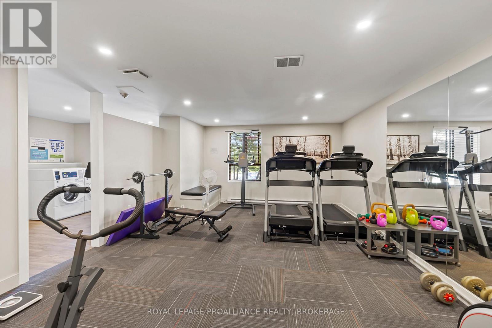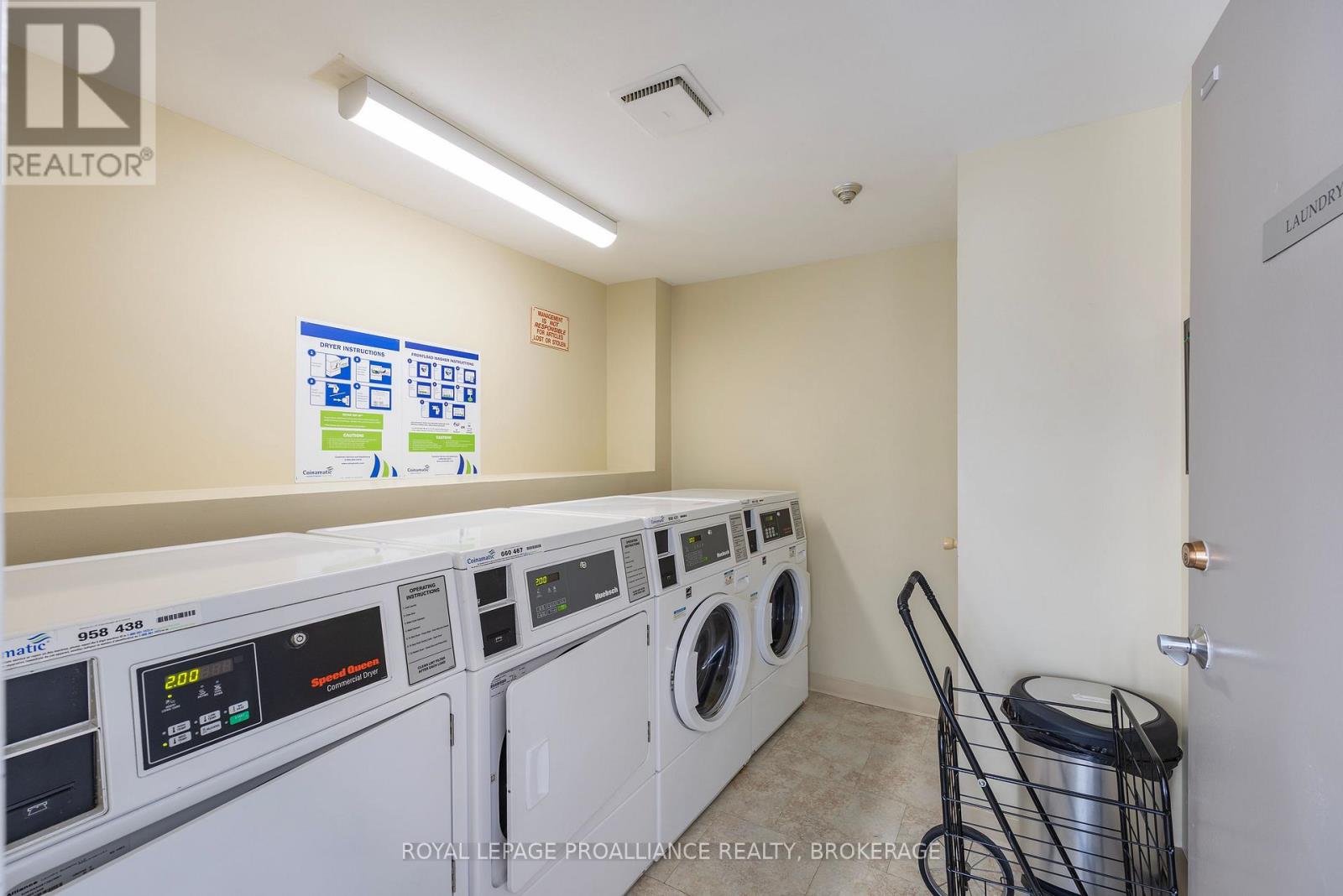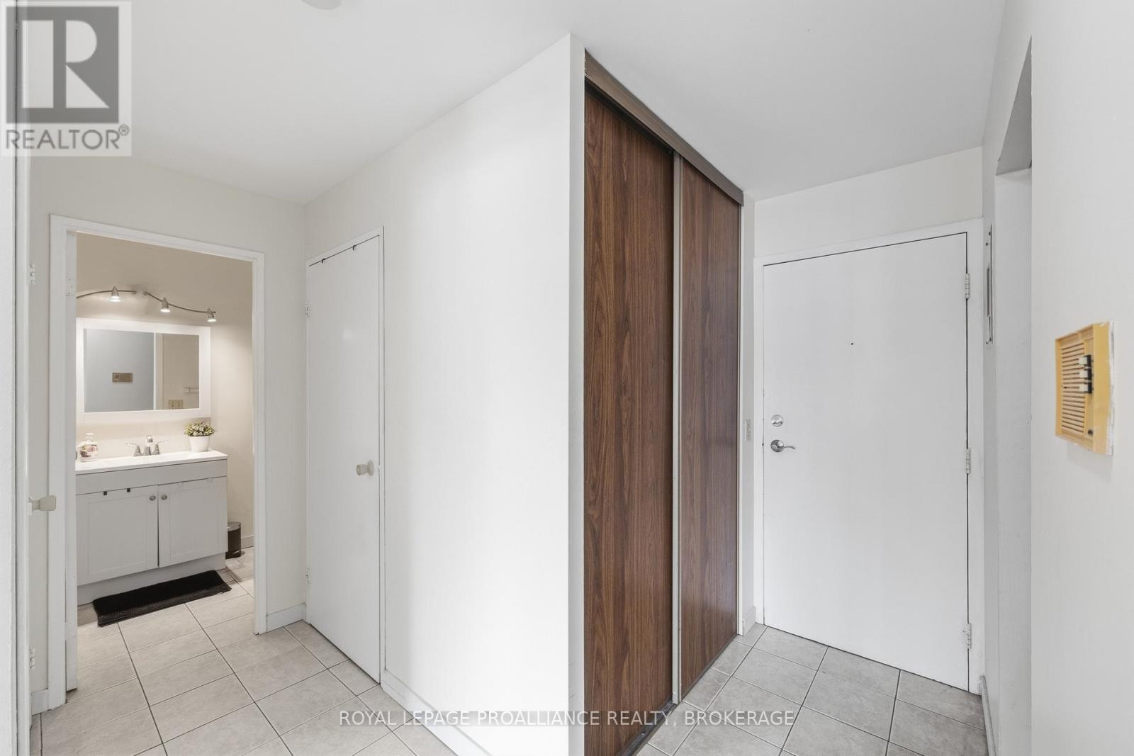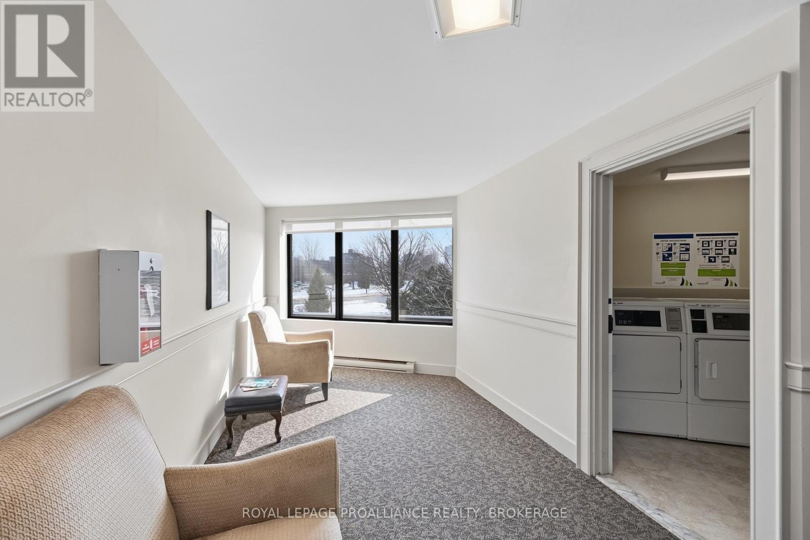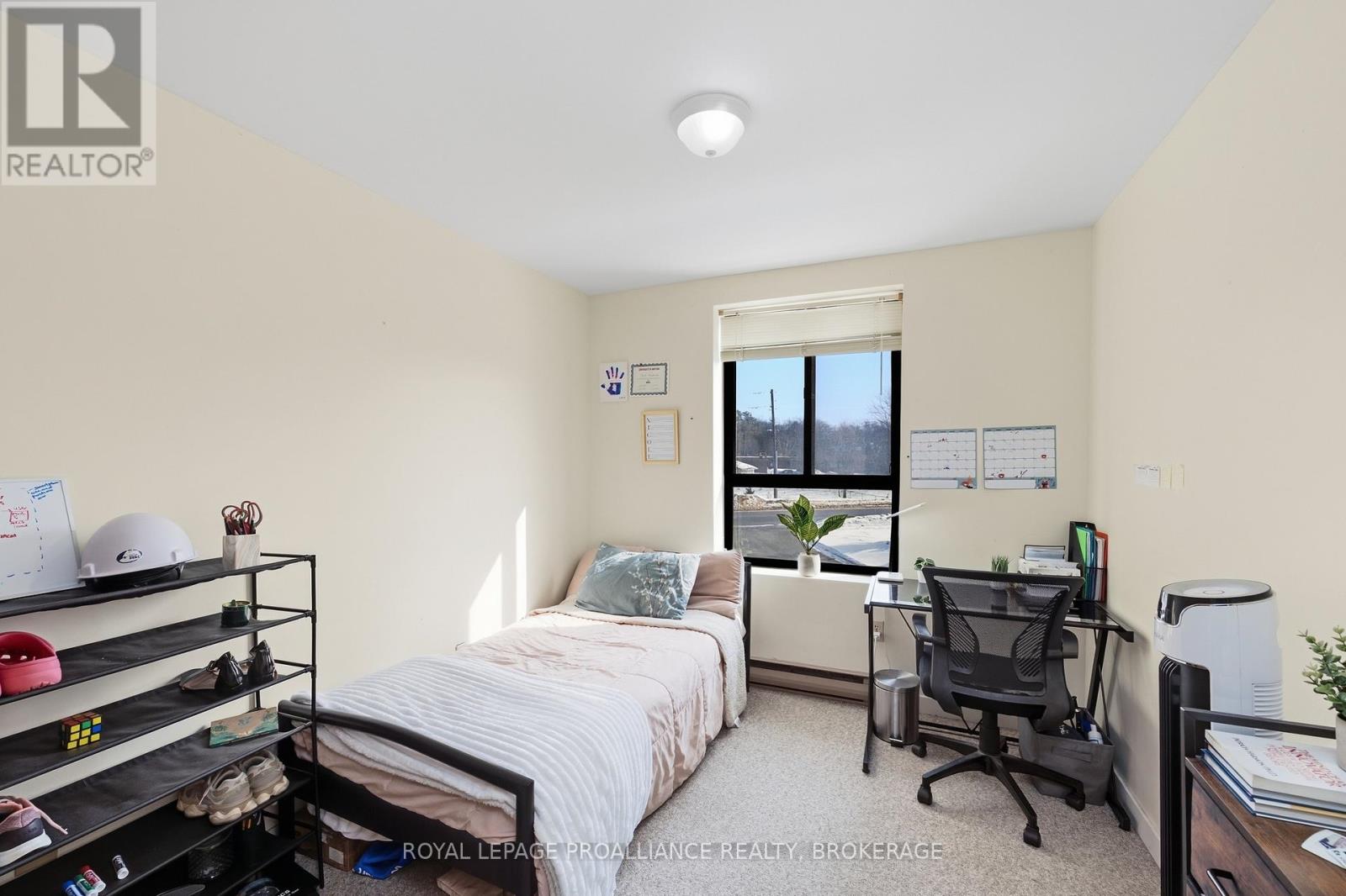 $486.25 MonthlyThis recently renovated, modern and meticulously maintained, 2 bedroom condo is a pleasure to show. The unit boasts a bright open concept dining and living room with south facing views off the private balcony. There are also 2 generous bedrooms and an updated kitchen, bathroom and a convenient storage room. The well maintained no pets, no smoking building is secure and recent improvements include the lobby, elevator, and exercise room. Each unit comes with it's own designated parking spot and there is also a library, party room, guest suite, and laundry facilities on every floor. With new appliances and an owned hot water tank while being centrally located close to green space with walking trails, shopping, restaurants, public transportation, and Queen's University, this unit has a lot to offer. (id:29295)