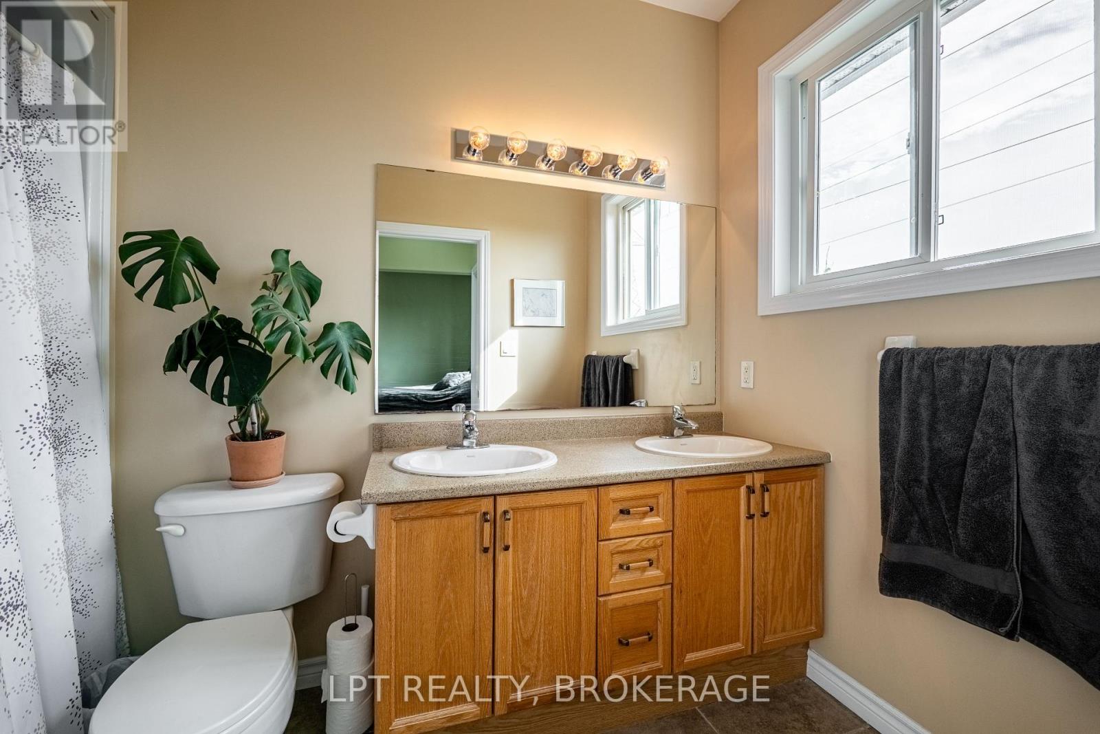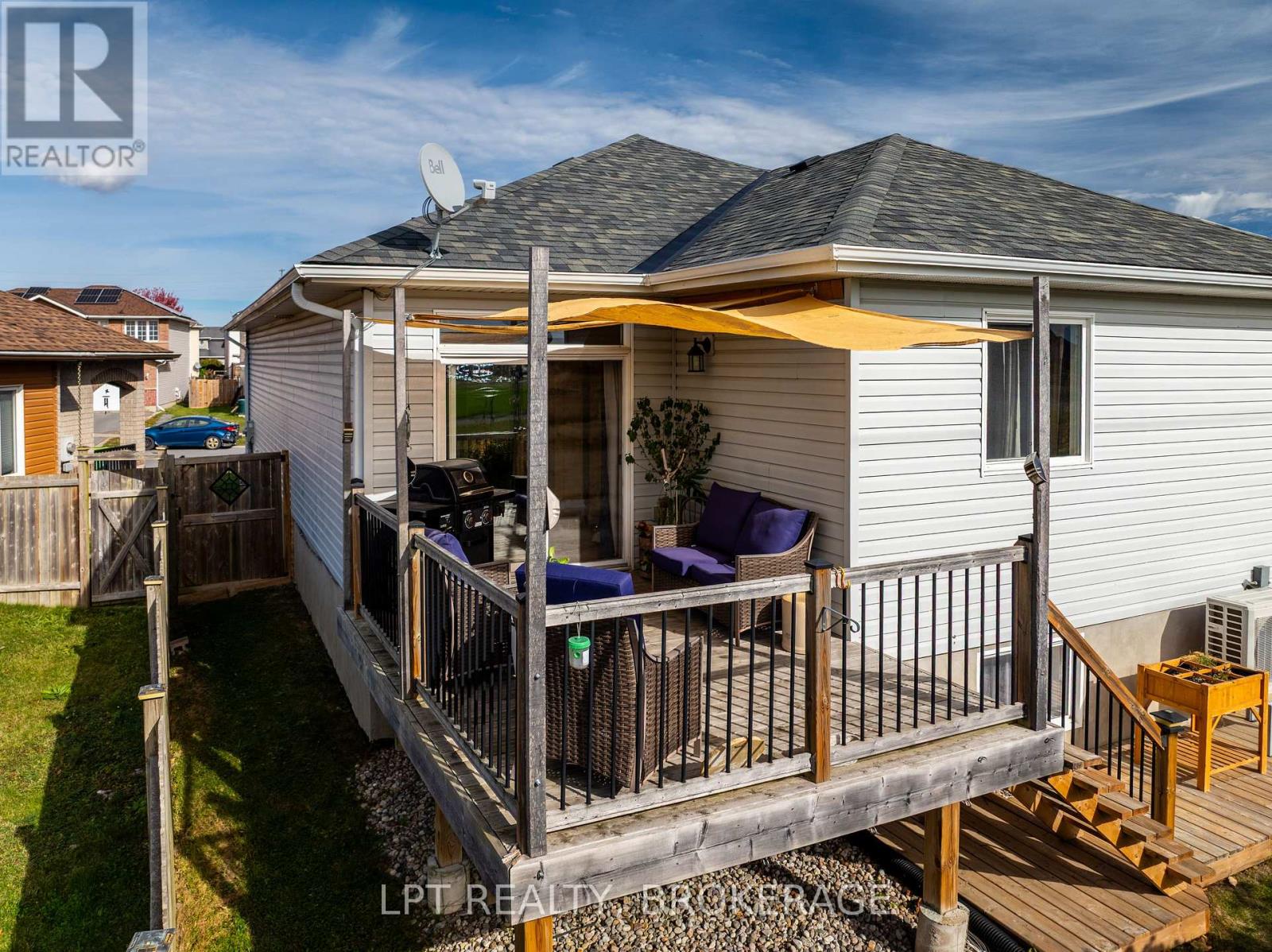 Welcome to this impeccably maintained 3-bedroom, 2.5-bath bungalow in Kingston's sought-after west end. From the moment you arrive you'll notice the beautifully landscaped yard and the privacy offered by no rear neighbours. Step inside to an inviting main level defined by soaring 10-foot ceilings and oversized windows that bathe every room in natural light. The living and dining areas flow effortlessly, anchored by a sleek, brand-new heat-pump system for year-round comfort, and complemented by a brand-new, high-efficiency furnace and a brand-new owned hot water tank, roof(2021) The kitchen offers ample cabinetry and stainless-steel appliances, and convenient main-floor laundry adds practical everyday ease. There's even a built-in central vacuum system for quick, whole-home cleaning. Slide open the glass doors off the dining area to a generous deck overlooking the meticulously landscaped backyard - an entertainer's dream with plenty of space for morning coffee or summer barbecues. Downstairs, the partially finished lower level features a stylish bar beside a gas-fired fireplace, creating a cozy setting for movie nights or hosting friends. A large recreation room provides flexible space for a home gym, hobby area, or secondary living room, and a convenient 2-piece bath completes the level. Set on a quiet, family-friendly street close to parks, schools, and local amenities, this home blends modern upgrades with classic bungalow charm. Everything you've been dreaming of - stylish, comfortable living - awaits. Don't miss your chance to make it yours! A SHOWING FEE OF 50% OF THE SELLING SIDE COMMISSION (PLUS HST) WILL BE WITHHELD BY THE LISTING BROKERAGE IF THEY INTRODUCE/SHOW CO-OPERATING BROKERAGE'S EVENTUAL BUYER, BUYER'S SPOUSE, PARTNER OR IMMEDIATE FAMILY MEMBER TO THE PROPERTY THROUGH A PRIVATE SHOWING. (id:29295)