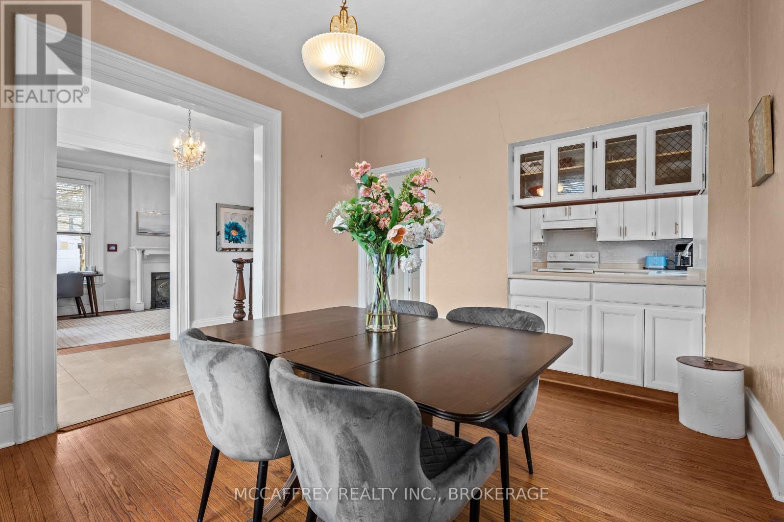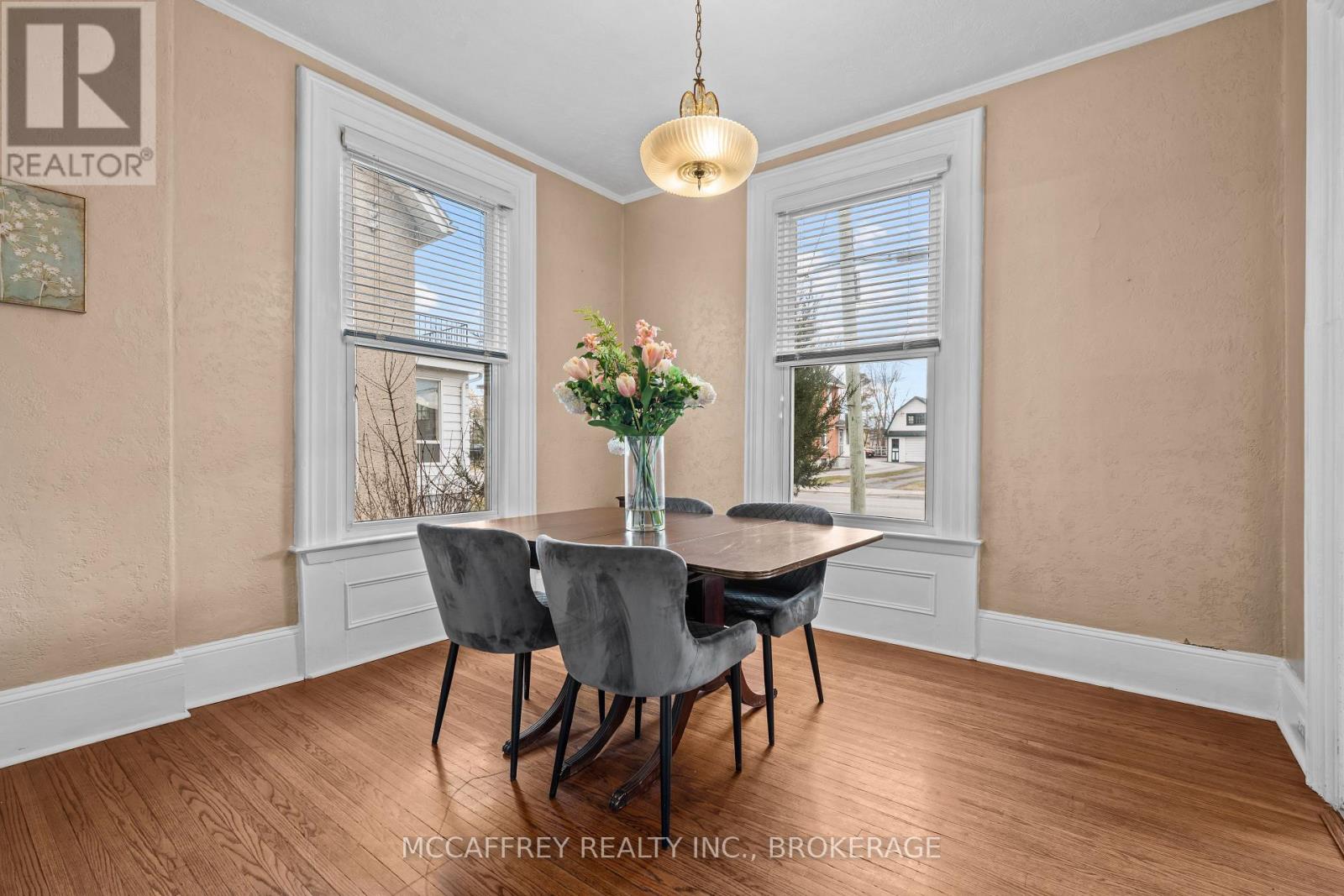 Stunning two-storey century home, an exquisite blend of timeless elegance and modern convenience, nestled on a coveted double lot in the heart of downtown Napanee. This bright and meticulously maintained residence boasts three spacious bedrooms and two bathrooms, providing the perfect haven for families or those who love to entertain. As you step inside, you'll be greeted by a charming family room that radiates warmth and comfort, ideal for cozy gatherings or quiet evenings. The dining room, conveniently located just off the kitchen, is perfect for hosting dinner parties and enjoying culinary delights. A rare find for a home of this era, the main floor laundry room adds an extra layer of convenience to your daily routine. Throughout the home, you'll marvel at the original millwork and trim, which add a touch of classic sophistication and pay homage to the property's rich history. Outside, the detached two-car garage includes a bonus workshop space, perfect for hobbyists or those in need of extra storage. The fully fenced yard is a private oasis, featuring a beautiful garden patio and lovely, well-maintained landscaping that offers a peaceful retreat from the bustle of daily life. Located within walking distance of an array of shops, schools, restaurants, and more, this property offers the perfect blend of charm, convenience, and community. Don't miss the chance to make this elegant century home your own slice of Napanee's history. (id:29295)