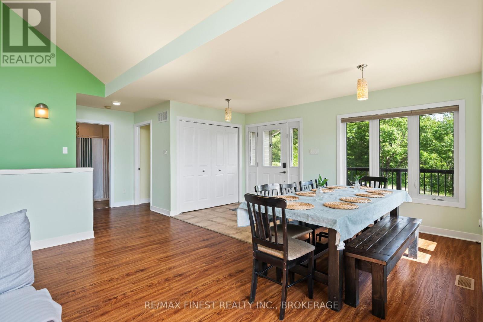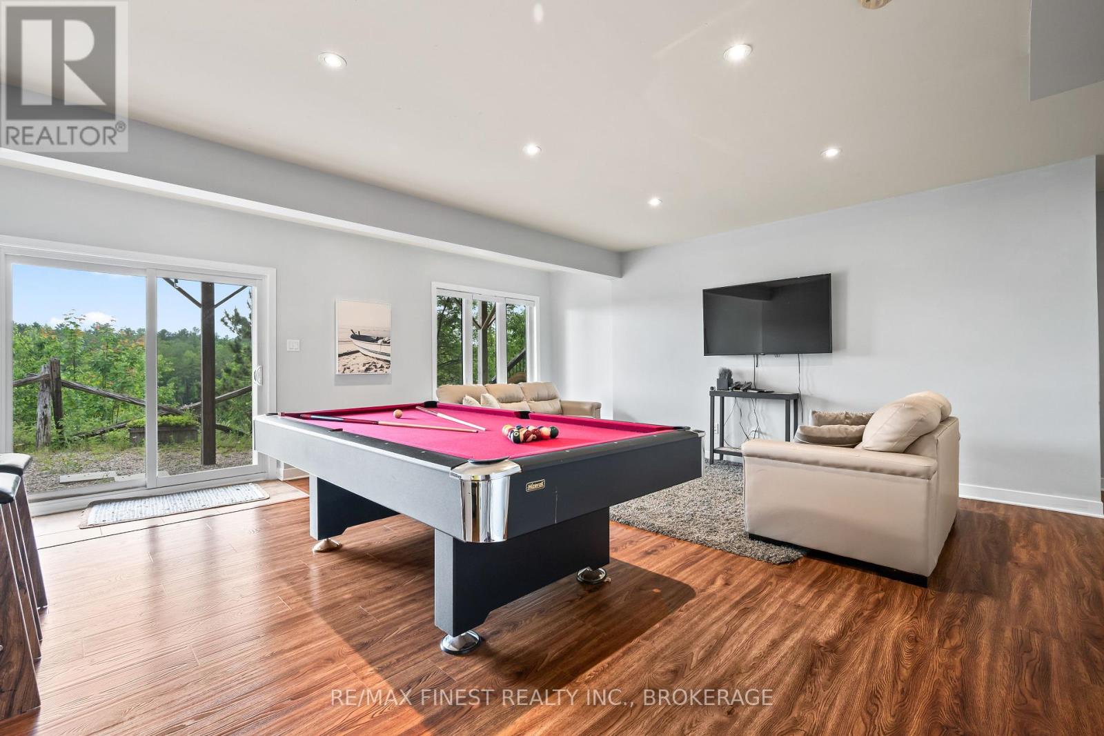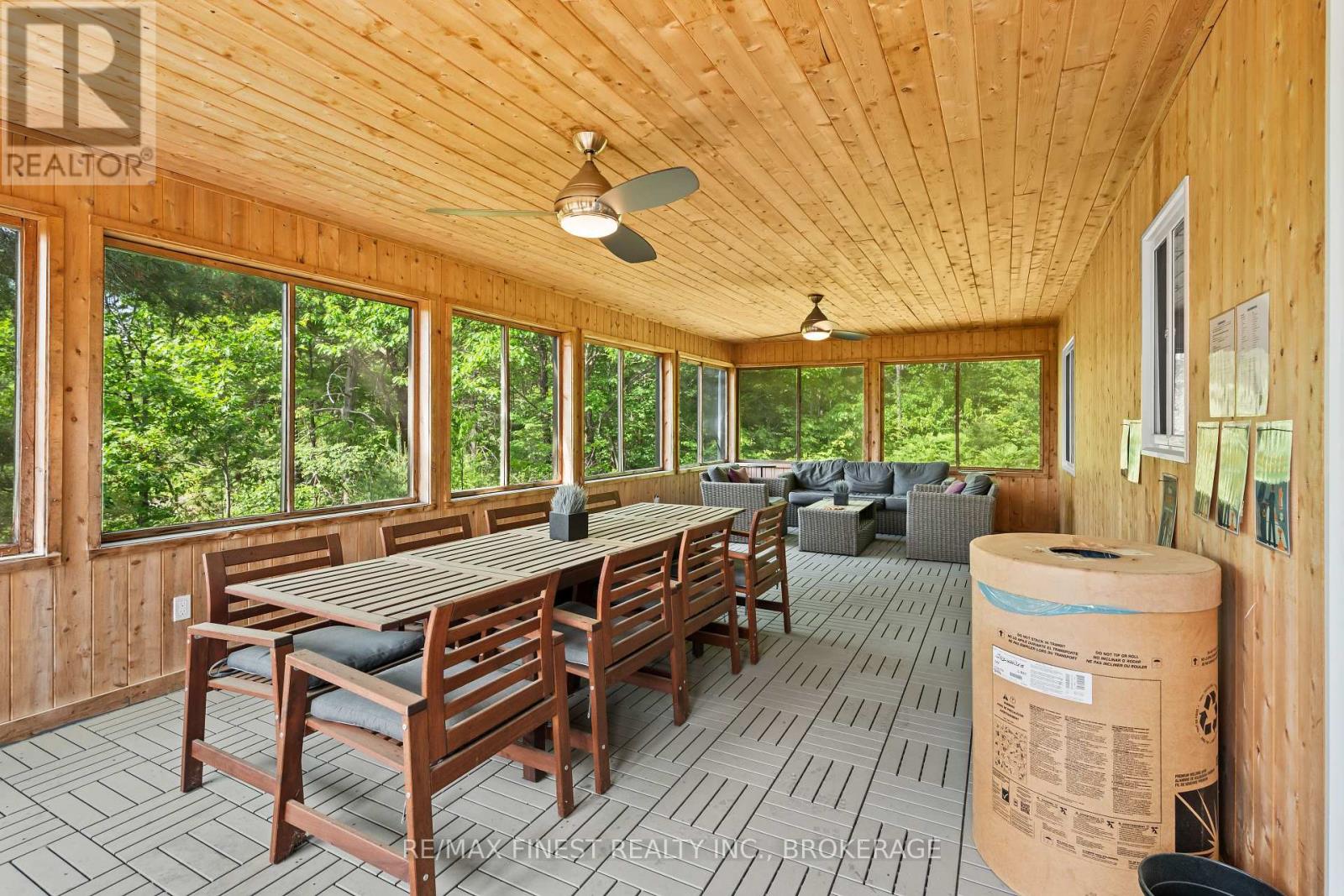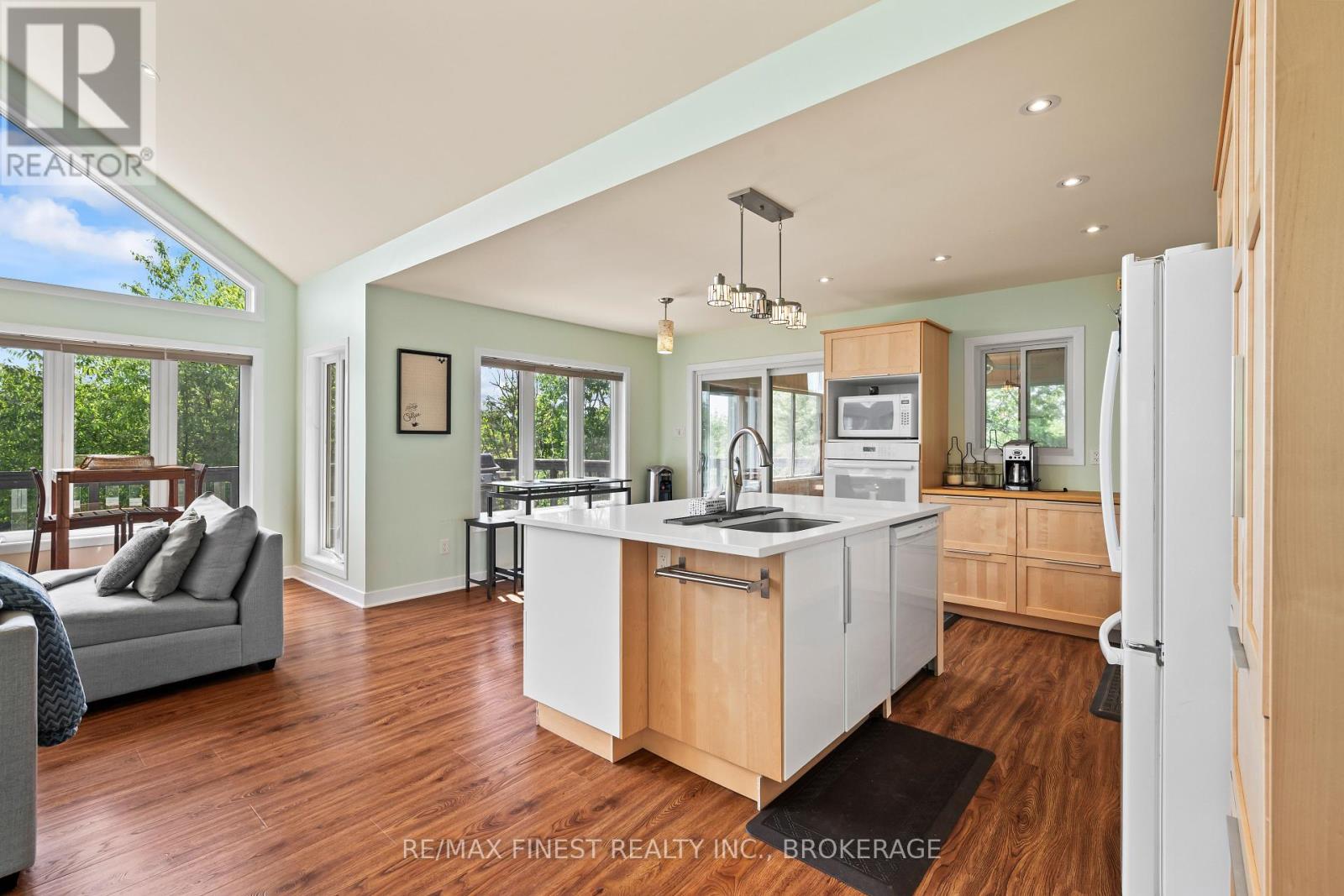 Welcome to 2092 Beach Road- a stunning, year-round waterfront retreat on the shores of pristine Shawenegog Lake. Set on 2.1 private acres with clean, deep, rocky shoreline and panoramic lake views, this exceptional property looks across to Crown land, offering total privacy and direct access to swimming, boating, fishing, and stargazing in one of Ontario's darkest sky areas. Built in 2015, this well-appointed 5-bedroom, 2.5-bath bungalow offers over 3,000 sq. ft. of finished living space and sleeps 11+ guests. Whether you're seeking a full-time home, family cottage, or short-term rental, this fully furnished property is Airbnb-ready (yes-including beds, kitchenware, patio furniture, and more!). The open-concept main floor features vaulted ceilings, a dining area that seats ten, a stylish living room with a stone gas fireplace, and a wall of windows framing the lake. The kitchen includes a large quartz island and ample storage. Cozy nooks throughout provide spots for reading, music, or a home office. This level also includes three bedrooms, a full bath, and a laundry/half bath combo. The walkout lower level offers two additional bedrooms, a spacious rec room with a pool table, TV, and lounge area (all included), a full bathroom, and a large utility/storage room. Outdoor living includes a wraparound deck, a massive screened-in porch, a cozy gazebo, and a campfire area. Down by the water, you'll find a dock with storage and a few included kayaks and canoes- perfect for launching your next adventure! A private laneway provides ample parking and room for future outbuildings. Enjoy sunrise coffee on the deck, evenings by the fire, and a proven setup for rental success. Bonus features include Starlink high-speed internet and an electric car charger. Located near Hwy 7 with easy access to Ottawa, Kingston, and Toronto. Close to Bon Echo Park, scenic trails, caves, and charming villages with groceries and everything you need. A rare, move-in ready lakefront gem. (id:29295)