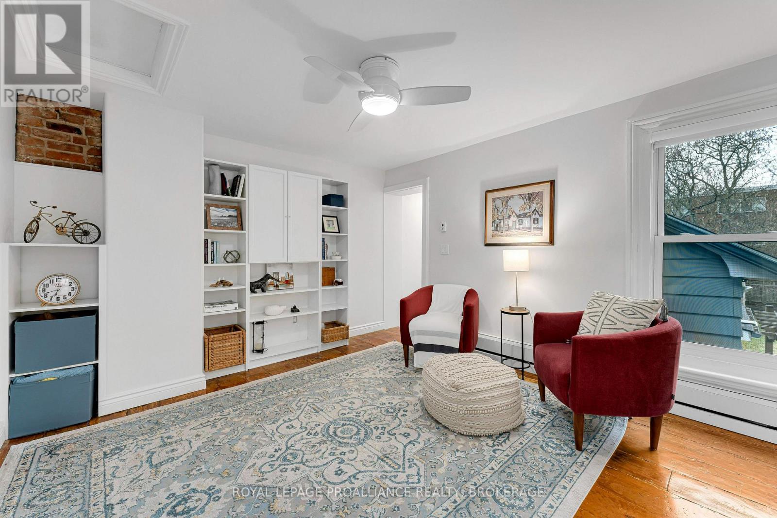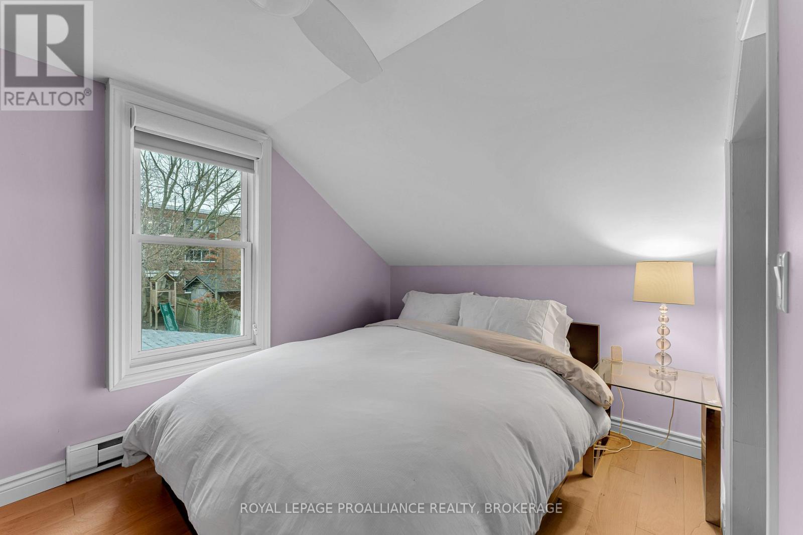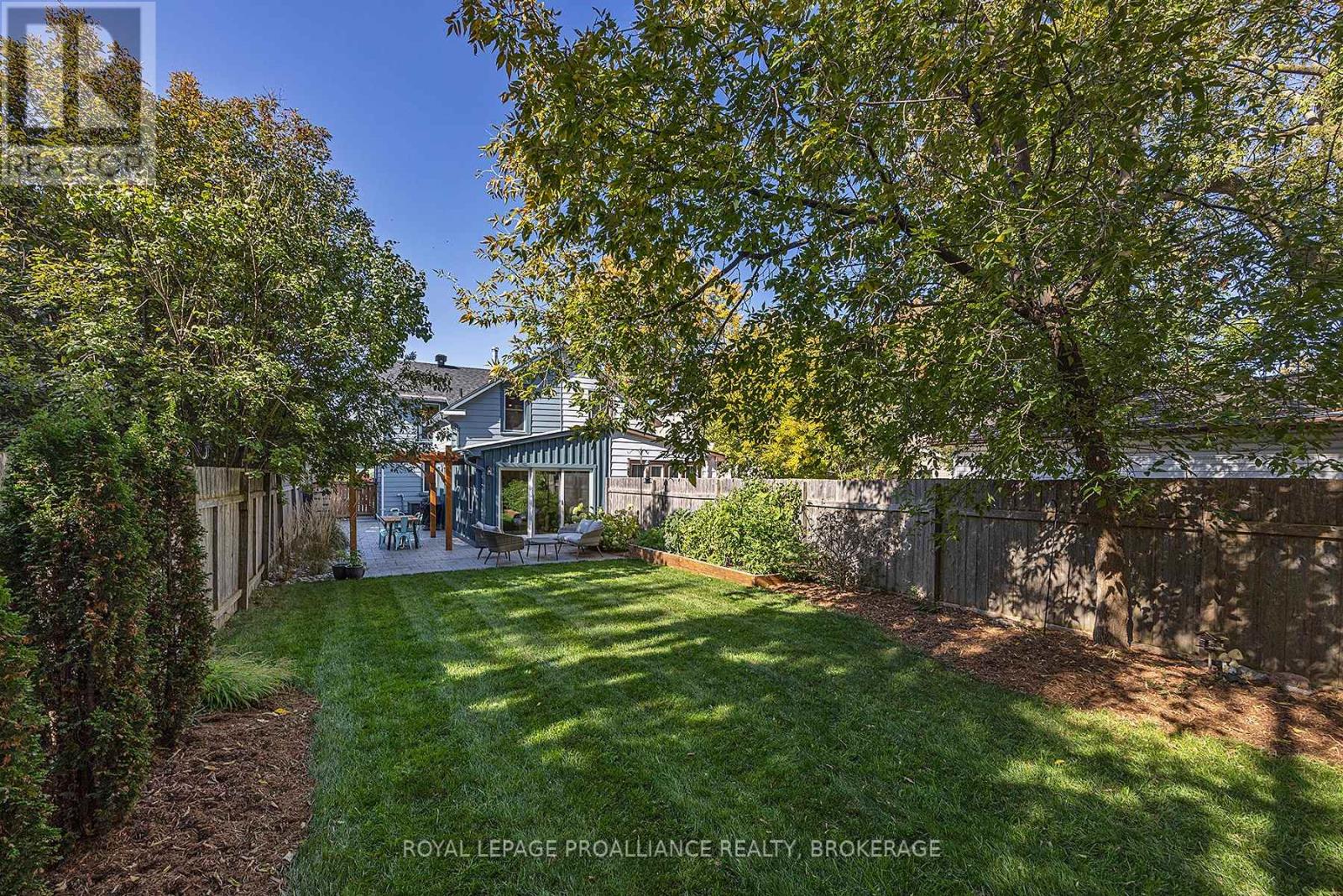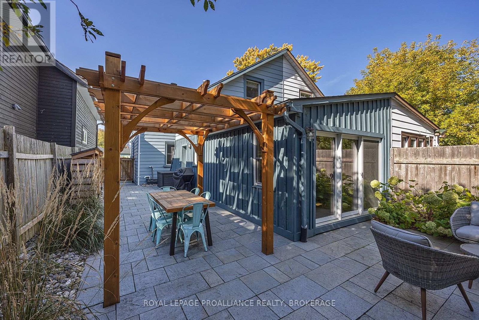 Set in a prime downtown Kingston location, this circa 1870 gem blends timeless character with modern updates. Offering 3 bedrooms and 1.5 bathrooms, the home features a welcoming open concept living room and dining room, along with an updated kitchen designed for everyday living. Upstairs, a versatile flex space adds the perfect spot for a home office, reading nook, or additional lounge. Rich in character, you'll find exposed brick, wood beams and limestone, a woodstove, and beautiful original pine plank floors that speak to the home's history. Extensive renovations in recent years include the roof, boiler, windows, and inviting outdoor living space making this property truly move-in ready. Step outside to a private backyard retreat with pergola, patios, a play structure and cedar shed or small studio space. All just a short walk to McBurney Park, Queen's University, and Kingston's vibrant downtown. (id:29295)
