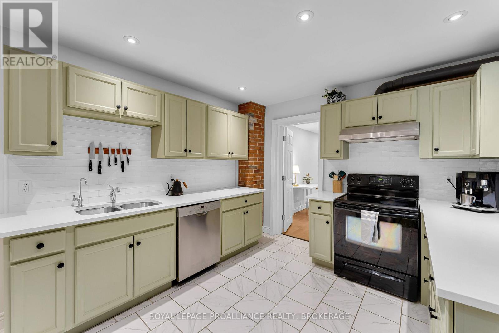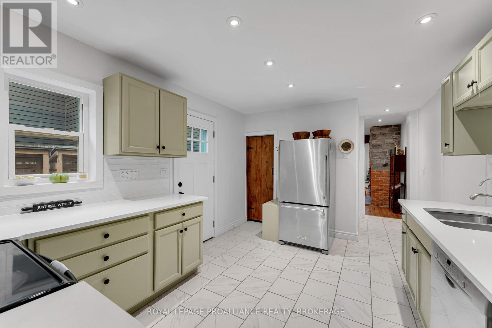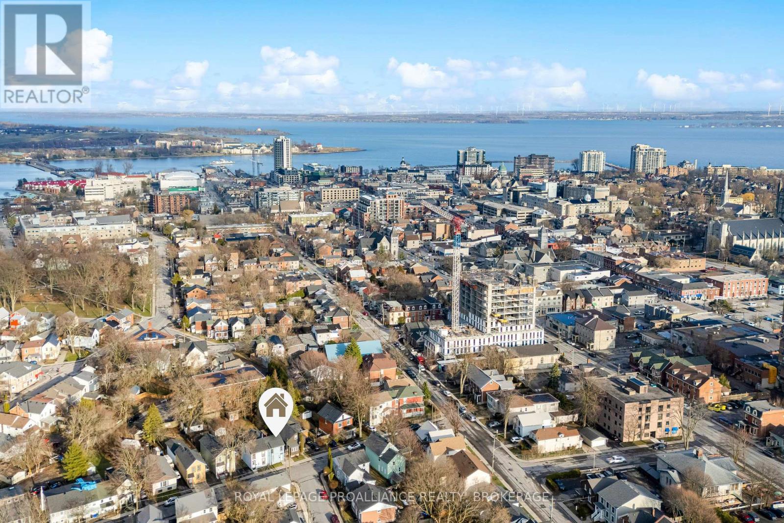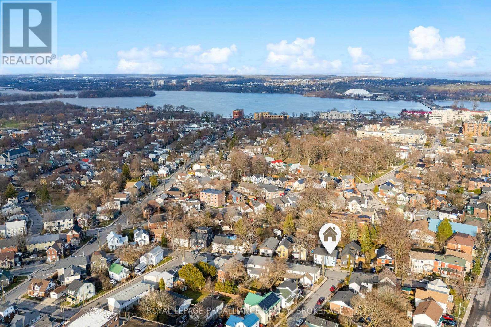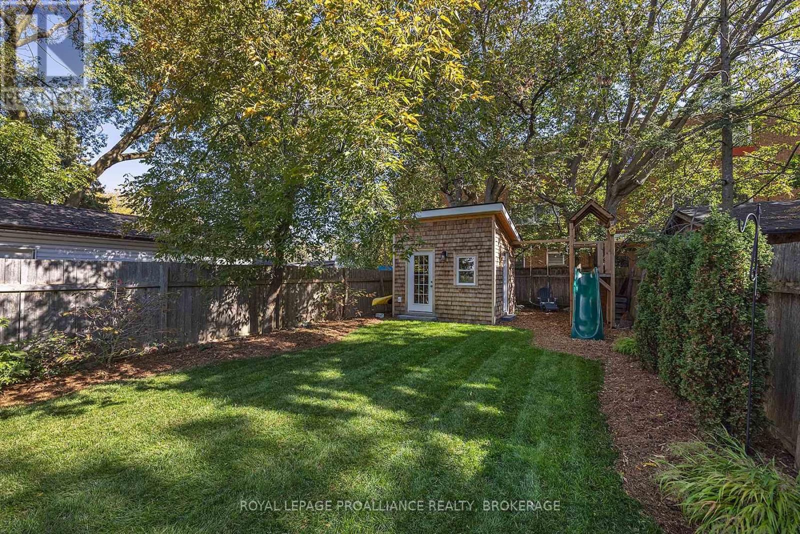 Set in a prime downtown Kingston location, this circa 1870 gem blends timeless character with modern updates. Offering 3 bedrooms and 1.5 bathrooms, the home features a welcoming open concept living room and dining room, along with an updated kitchen designed for everyday living. Upstairs, a versatile flex space adds the perfect spot for a home office, reading nook, or additional lounge. Rich in character, you'll find exposed brick, wood beams and limestone, a woodstove, and beautiful original pine plank floors that speak to the home's history. Extensive renovations in recent years include the roof, boiler, windows, and inviting outdoor living space making this property truly move-in ready. Step outside to a private backyard retreat with pergola, patios, a play structure and cedar shed or small studio space. All just a short walk to McBurney Park, Queen's University, and Kingston's vibrant downtown. (id:29295)