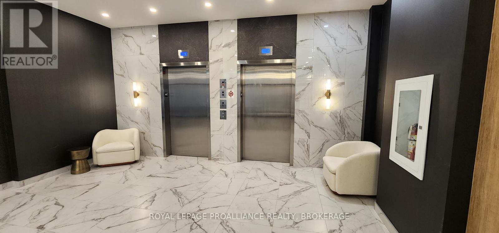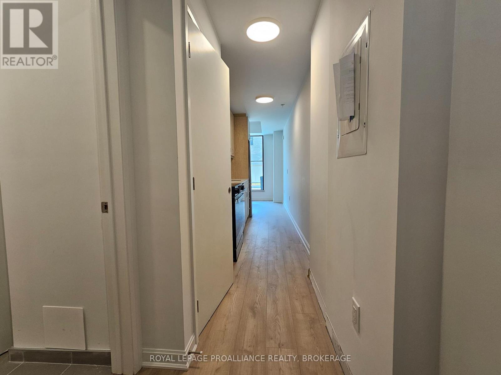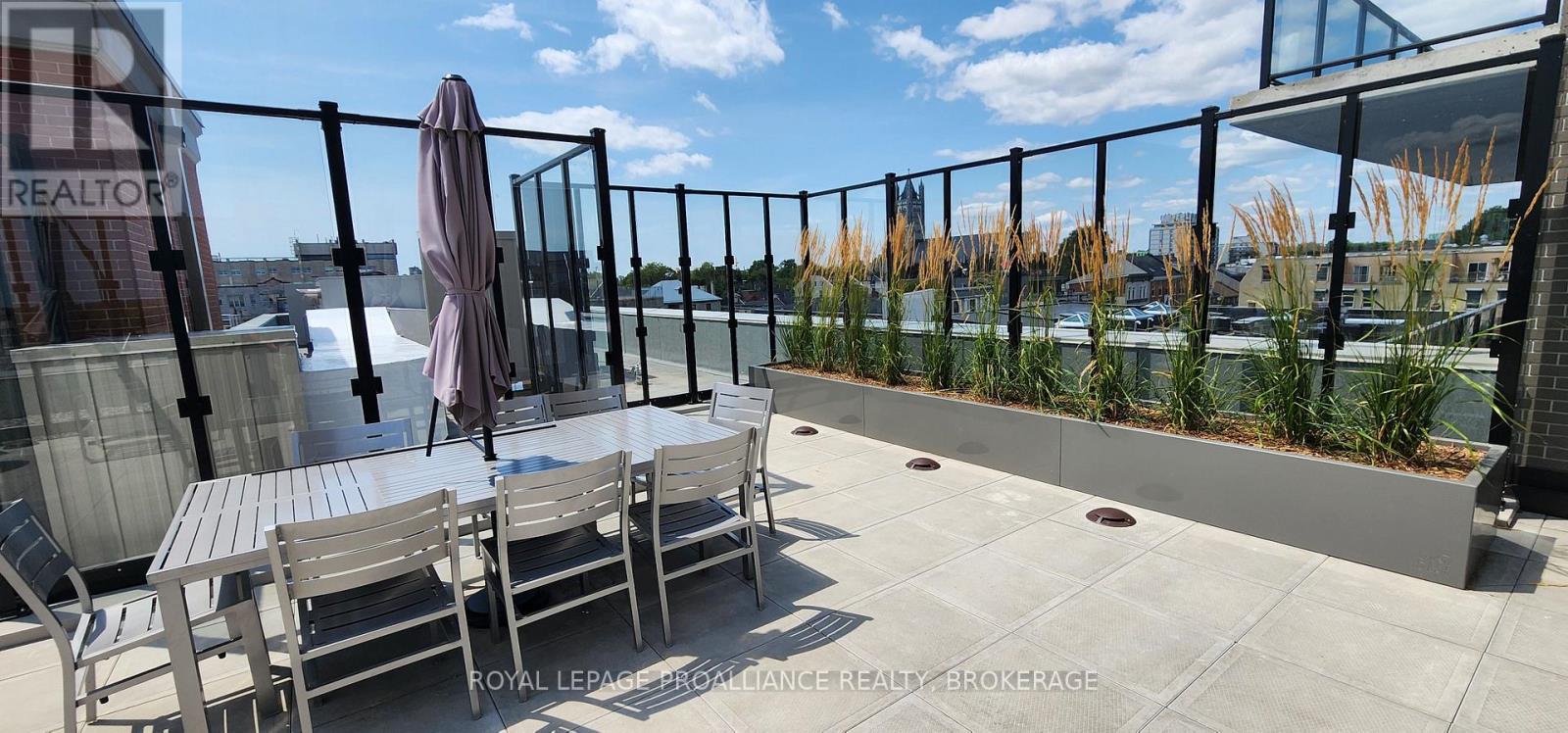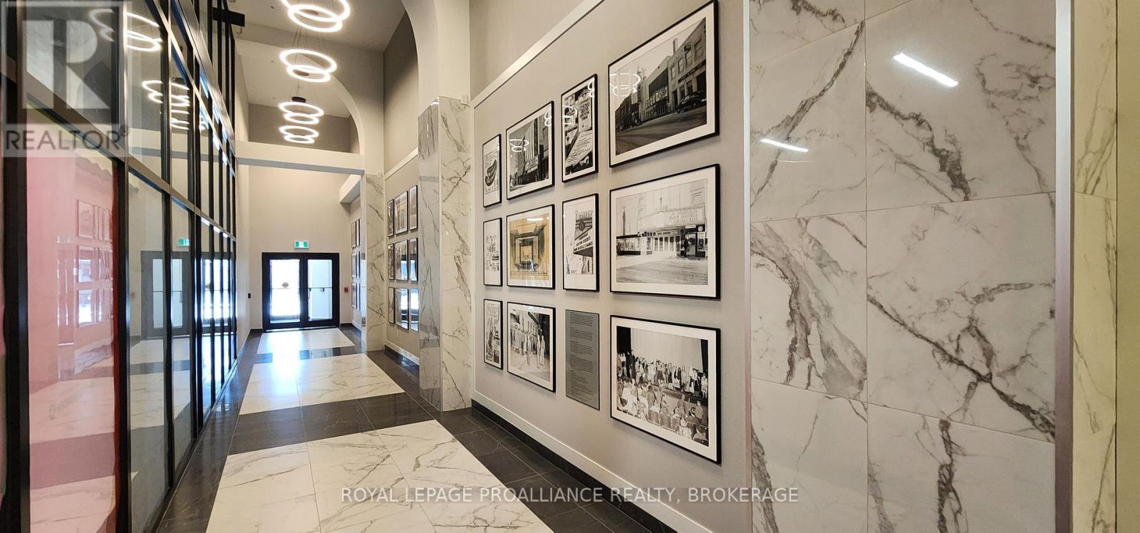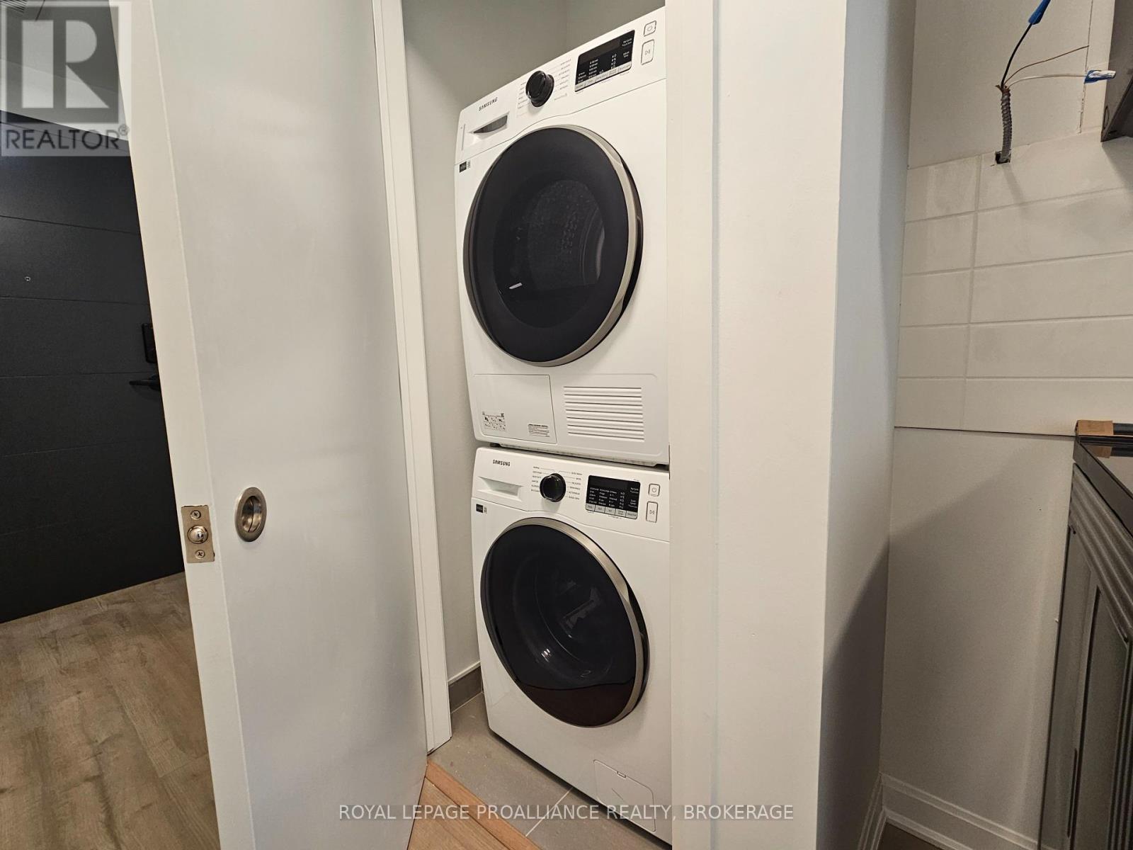Welcome to The Crown Condominiums in the heart of Downtown Kingston! This bright second-floor unit features 1 bedroom, 1 bathroom, an open-concept living/dining area, in-suite laundry, and a 3-piece cheater ensuite. The unit offers approx. 461 sq ft of efficient living space. Enjoy premium amenities including a rooftop terrace with BBQs, lounge areas, greenery, yoga space, concierge service, a fitness center, yoga studio, and a party room with full kitchen. Underground parking, bike storage, and lockers available at an additional cost. (id:29295)