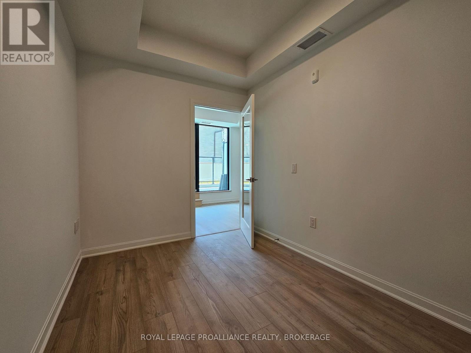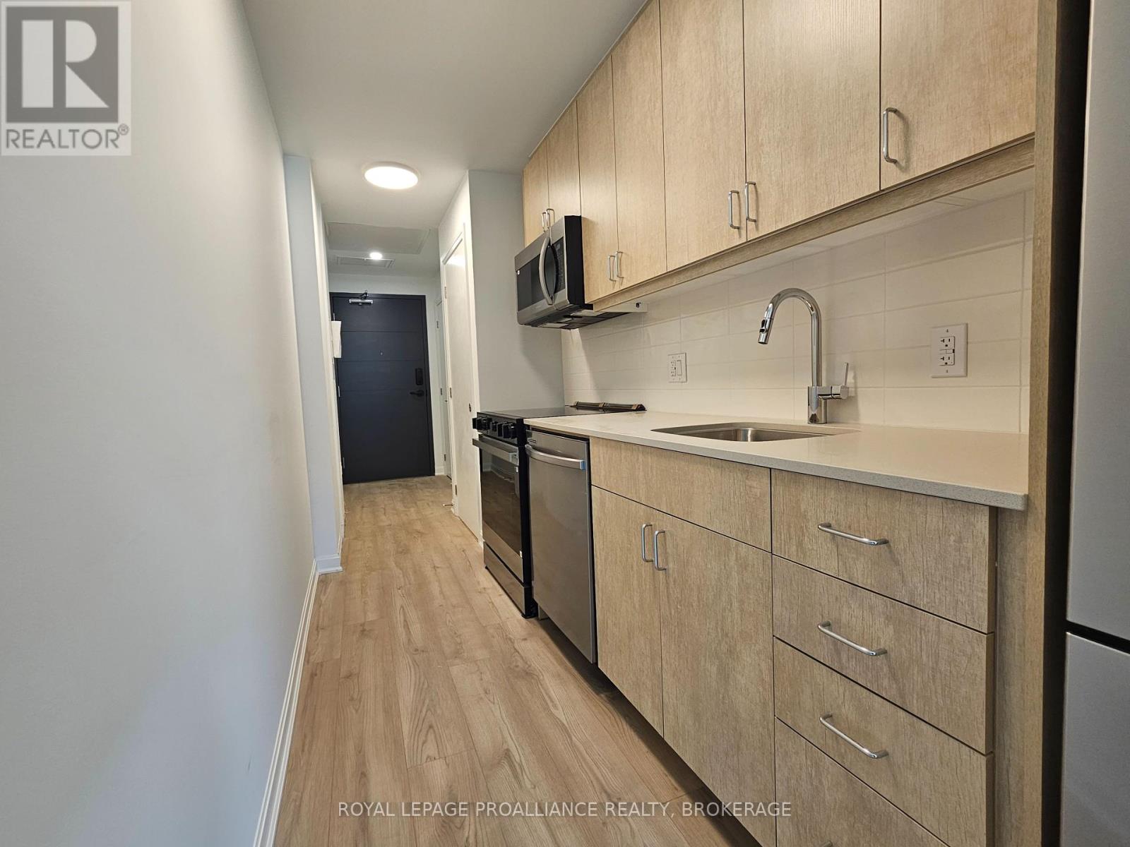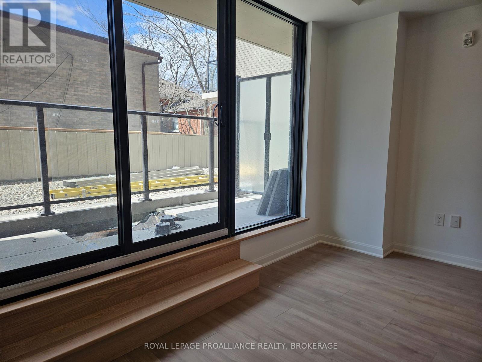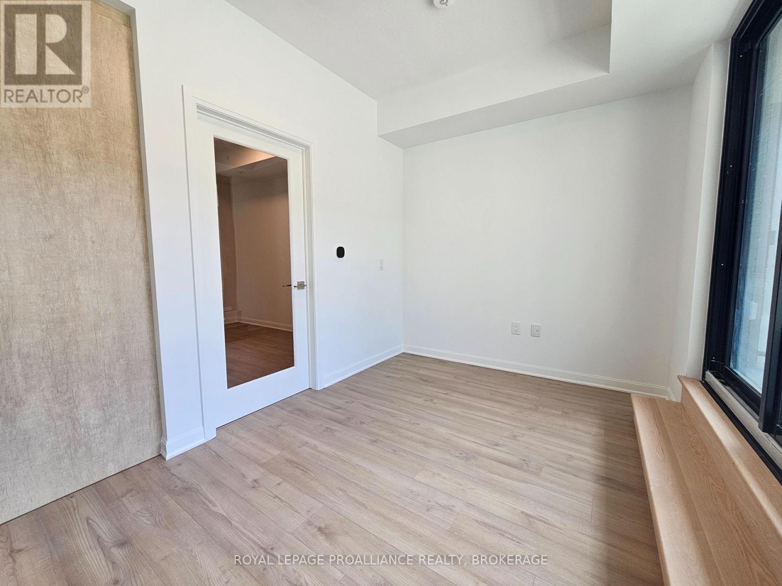 Welcome to The Crown Condominiums in the heart of Downtown Kingston! This bright second-floor unit features 1 bedroom, 1 bathroom, an open-concept living/dining area, in-suite laundry, and a 3-piece cheater ensuite. The unit offers approx. 461 sq ft of efficient living space. Enjoy premium amenities including a rooftop terrace with BBQs, lounge areas, greenery, yoga space, concierge service, a fitness center, yoga studio, and a party room with full kitchen. Underground parking, bike storage, and lockers available at an additional cost. (id:29295)
