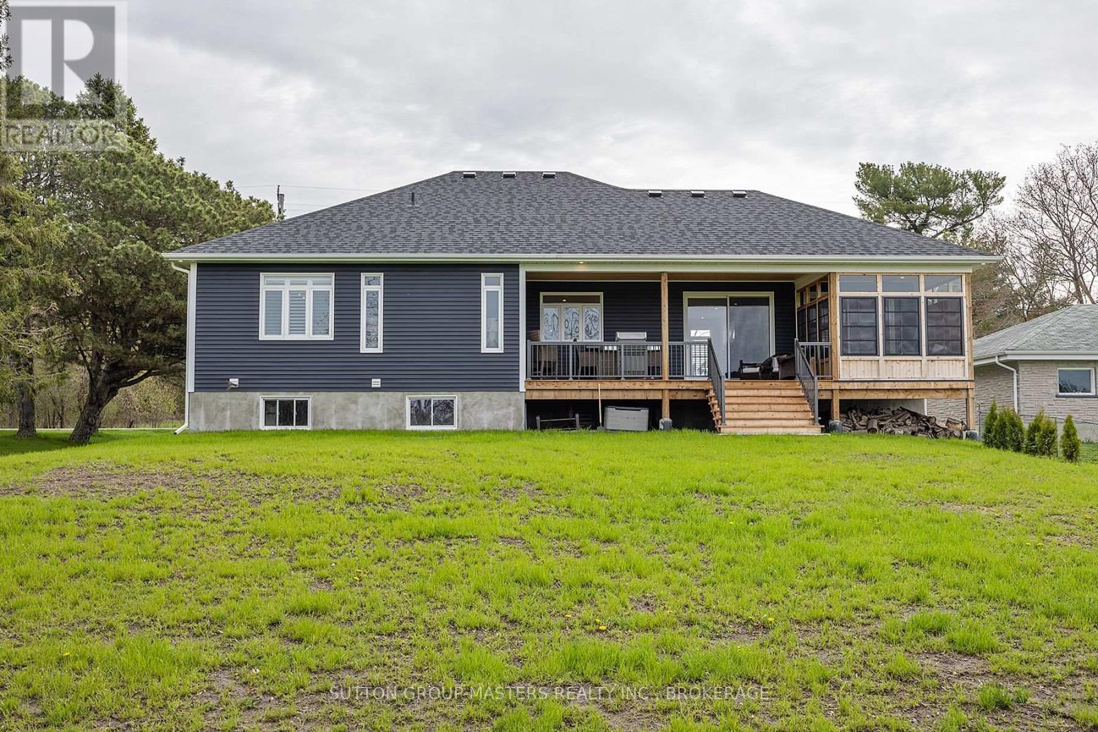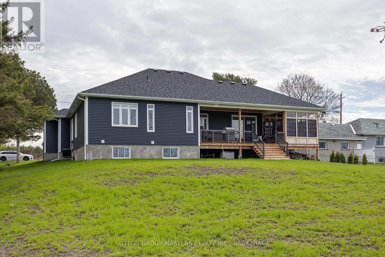 Don't miss out on this beautiful custom built; 4 year old bungalow! It sits on a West facing 90'x180' lot with no neighboring homes in the front or rear. The large backyard is a blank canvas awaiting the perfect oasis with year round sunsets. Open concept, 3 bedroom, 2 baths with 9' ceilings main floor and basement- just minutes to the 401 and all Kingston has to offer. Rare rural location with access to natural gas and high speed fiber optic internet; yet only 15 mins to downtown Kingston. Oversized heated attached double car garage with one 9' door and one 10' with extended bay. Bright open concept kitchen with built in wine fridge, wine rack and bar area. Stunning quarts countertops, engineered hardwood, 9 ft ceilings, and oversized 8' solid core doors throughout. Covered front and rear porches with pine tongue and groove ceilings. Premium 8' sliding doors fill the home with natural light and give access to the 3 season cedar screened in room and rear covered deck. Stone fireplace keeps the entire living area incredibly cozy. Master bedroom with walk in closet and ensuite featuring a large soaker tub and standing glass shower. California shutters throughout. Main floor laundry. Partially finished basement is roughed in for another full bath and has plenty of space for additional bedrooms or whatever suits your needs. Just a few steps to Glenburnie grocery, LCBO, and Shannon's corners little league park with ball diamond, basketball courts, and city maintained skating rink. This one won't last long! Inquire for more details. (id:29295)