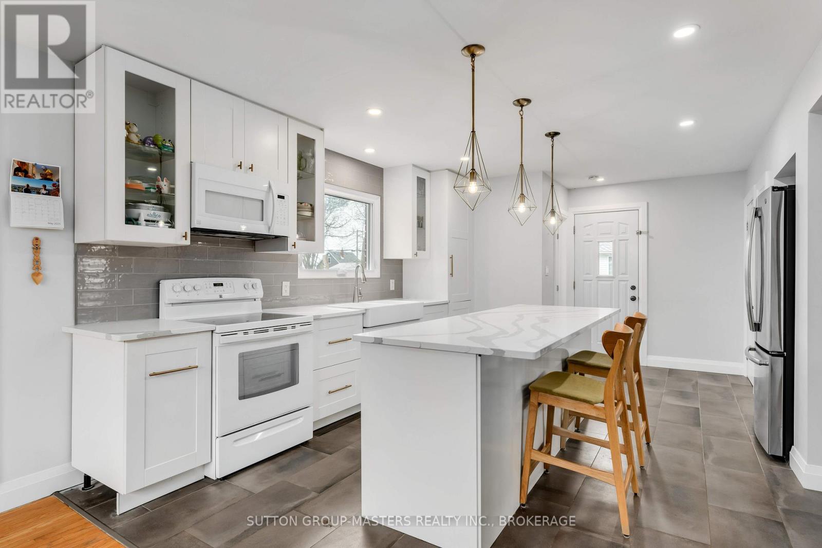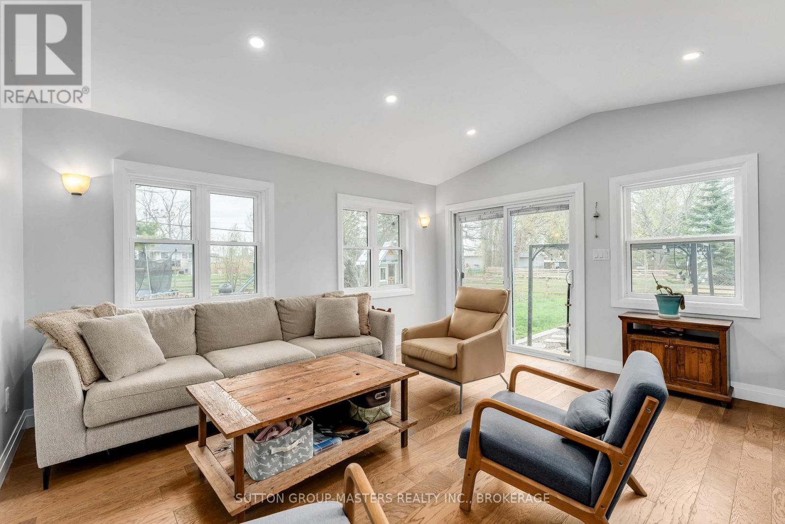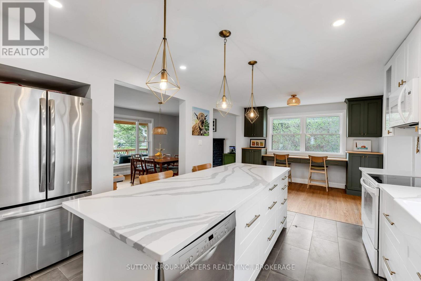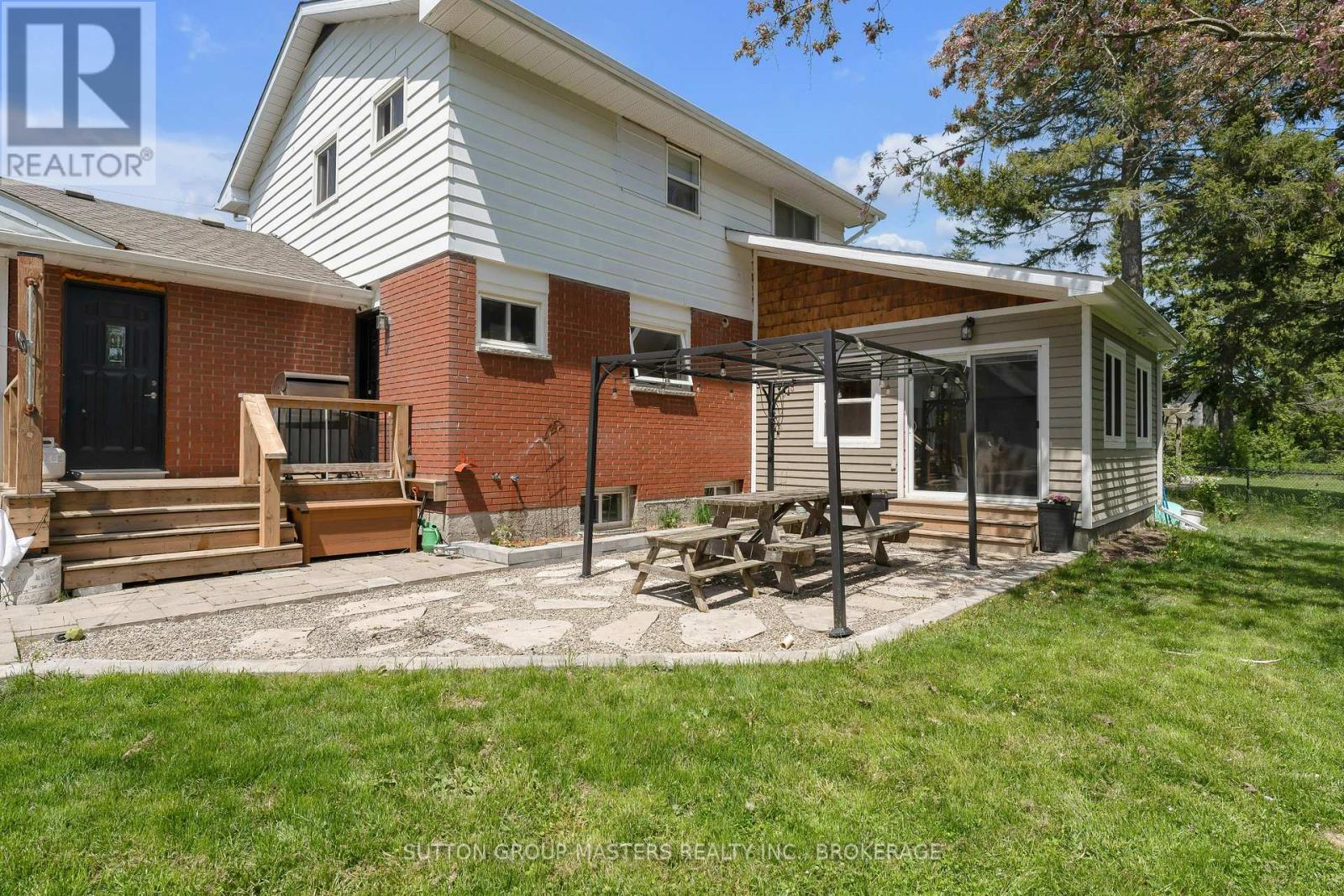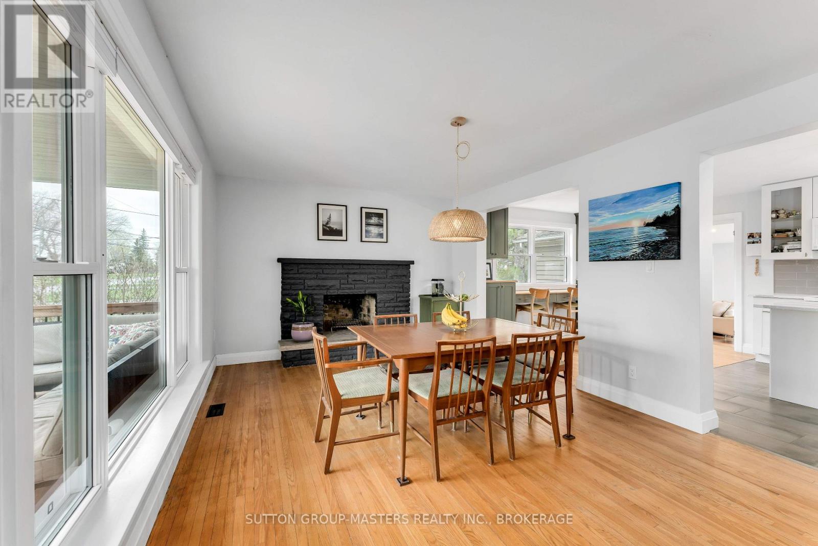 Come check out this beautifully updated home in sought-after Point Pleasant neighbourhood! Featuring a double-wide drive, 2.5-car garage, and a newer covered porch, this home offers great curb appeal upon first arriving. Inside, enjoy a spacious foyer with two closets, hardwood flooring, formal dining with wood fireplace, and a semi open-concept kitchen with Quartz counters, large island, modern tile backsplash, new cabinetry and pantry. The sunken family room addition boasts high ceilings, built-in shelving, and a gas fireplace. Upstairs features 4 bright bedrooms, including a large primary, 4pc bathroom and fully renovated 3pc bathroom with rain shower. As you head to the lower level, you will appreciate the fully finished space offering a bright family room and 5th bedroom. The fully fenced backyard is every family's dream with two patios, gazebo and loads of green space. This home is situated in a family-friendly neighbourhood, only a short walk to Lake Ontario, Jorene Park and R.G. Sinclair Public School. Recent updates include the paved drive (2025), shingles (2021), furnace (2022), A/C (2015), hot water tank (2024) and the majority of windows have been done in last 10 years. This home shows even better in person - come take a tour for yourself! (id:29295)