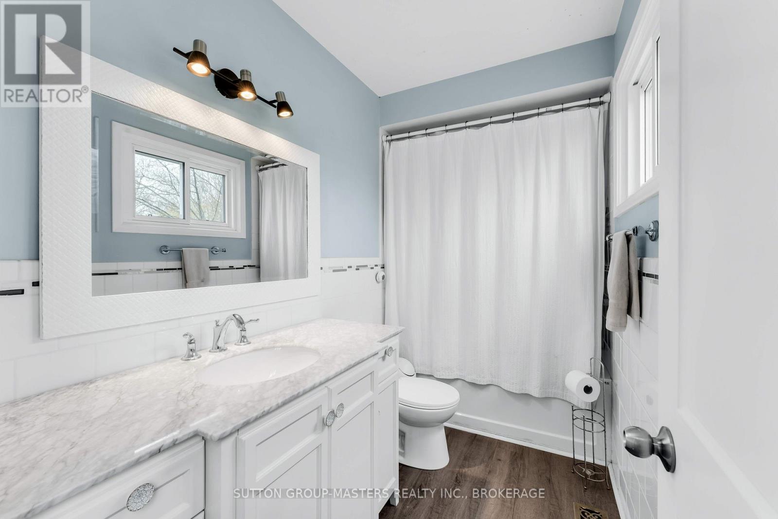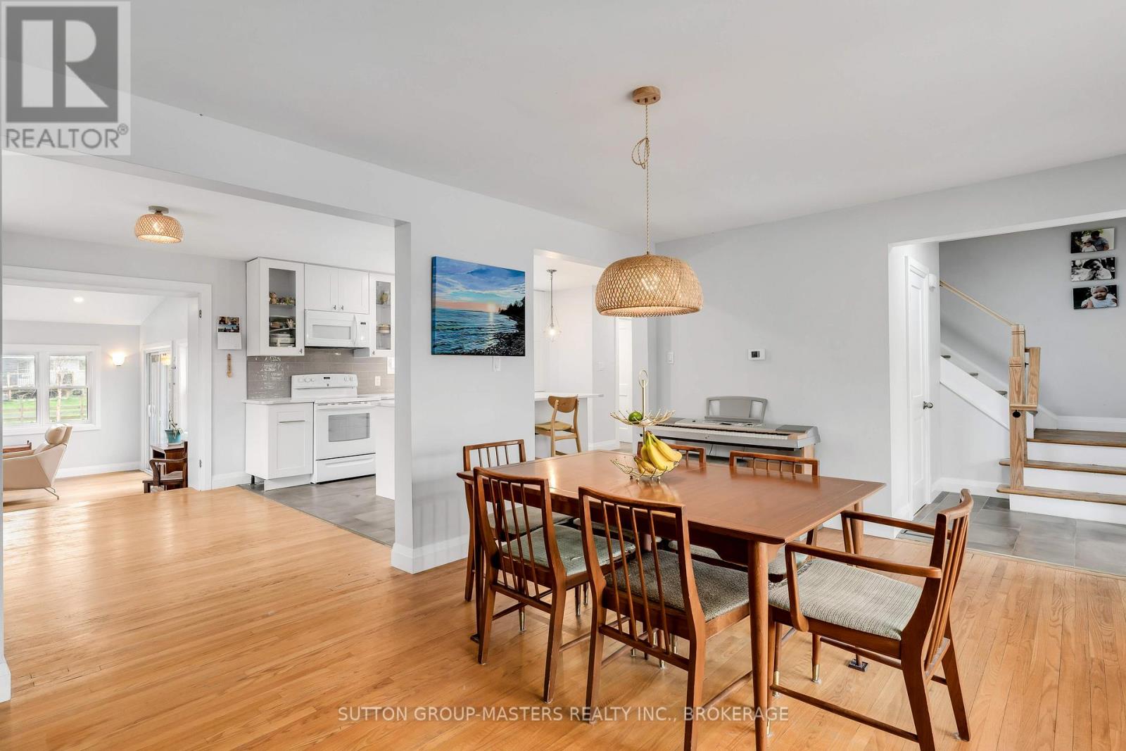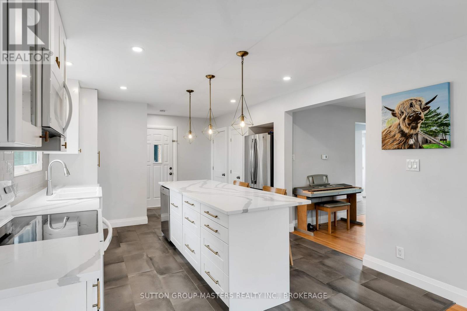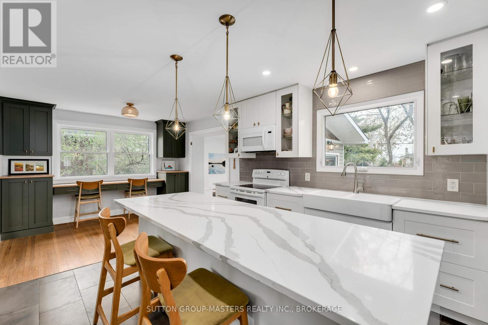 Come check out this beautifully updated home in sought-after Point Pleasant neighbourhood! Featuring a double-wide drive, 2.5-car garage, and a newer covered porch, this home offers great curb appeal upon first arriving. Inside, enjoy a spacious foyer with two closets, hardwood flooring, formal dining with wood fireplace, and a semi open-concept kitchen with Quartz counters, large island, modern tile backsplash, new cabinetry and pantry. The sunken family room addition boasts high ceilings, built-in shelving, and a gas fireplace. Upstairs features 4 bright bedrooms, including a large primary, 4pc bathroom and fully renovated 3pc bathroom with rain shower. As you head to the lower level, you will appreciate the fully finished space offering a bright family room and 5th bedroom. The fully fenced backyard is every family's dream with two patios, gazebo and loads of green space. This home is situated in a family-friendly neighbourhood, only a short walk to Lake Ontario, Jorene Park and R.G. Sinclair Public School. Recent updates include the paved drive (2025), shingles (2021), furnace (2022), A/C (2015), hot water tank (2024) and the majority of windows have been done in last 10 years. This home shows even better in person - come take a tour for yourself! (id:29295)