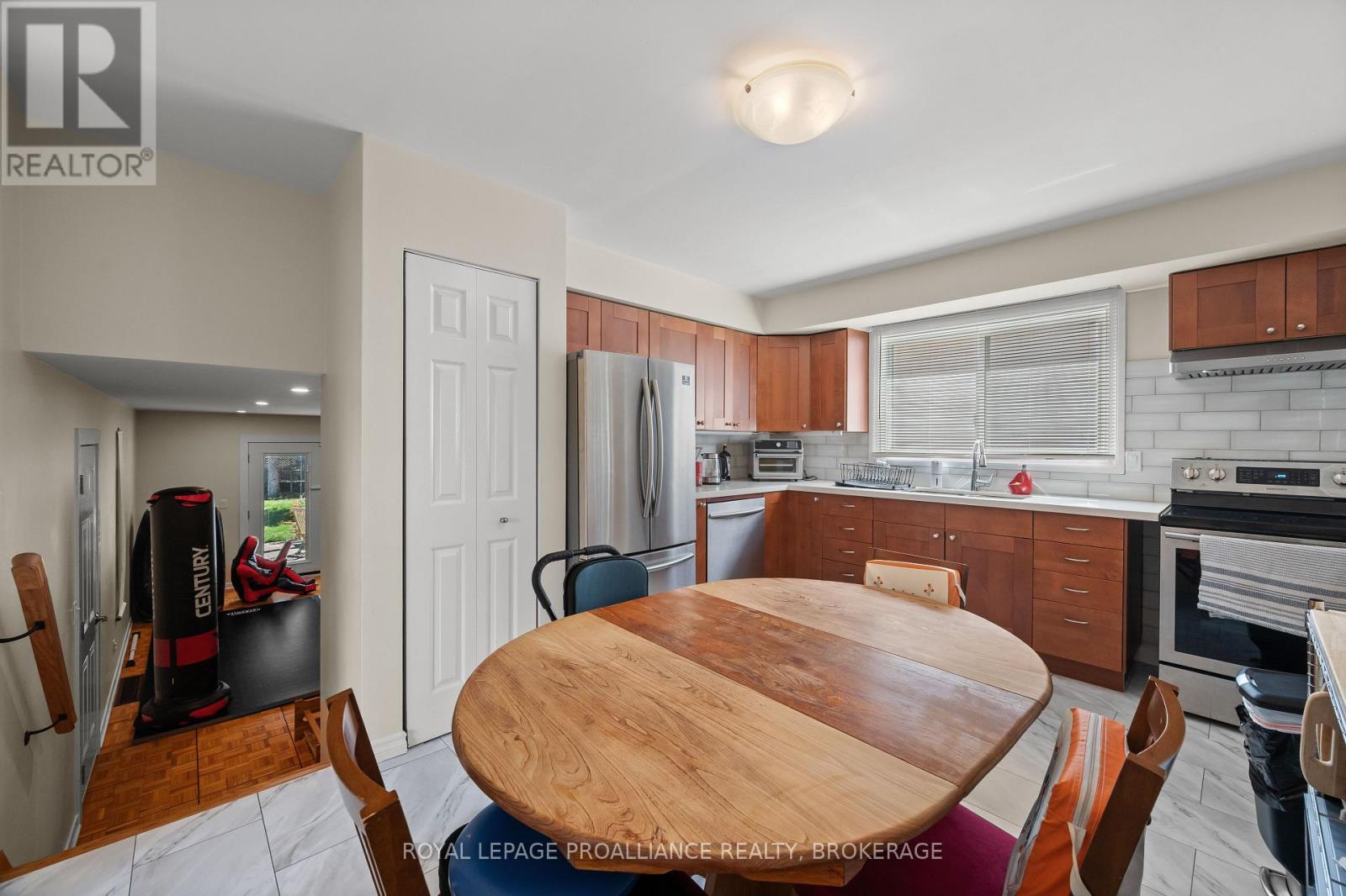 Welcome to 228 Robert Wallace Drive! This well-maintained home features a practical layout, is carpet- free and has been updated throughout. Step into the spacious foyer with newly updated LVT flooring and a powder room. The main floor hosts a bright open concept living and dining room, a renovated eat-in kitchen by NCP homes with gleaming quartz countertops and stainless steel appliances. The upper level hosts a well-sized primary bedroom, 2 additional bedrooms and a 4pc bathroom. The lower level provides more living space with a family room with a gas fireplace and patio doors with direct access to the backyard, a laundry room and inside entry to the garage. The basement hosts an additional bedroom, a sizable rec room, a 3pc bathroom, a kitchenette area, ample storage space which is perfect for families or future in-law potential. The private backyard is partially fenced with a concrete patio and surrounded by mature trees. Some extensive updates include Roof Shingles (2019), Updated 200 Amp Panel (2019), Updated Garage door & front door (2019), Updated LED lighting, Furnace (2020), A/C (2020), Updated LVT flooring in foyer, powder room, kitchen and main bathroom (2025) & more. (id:29295)