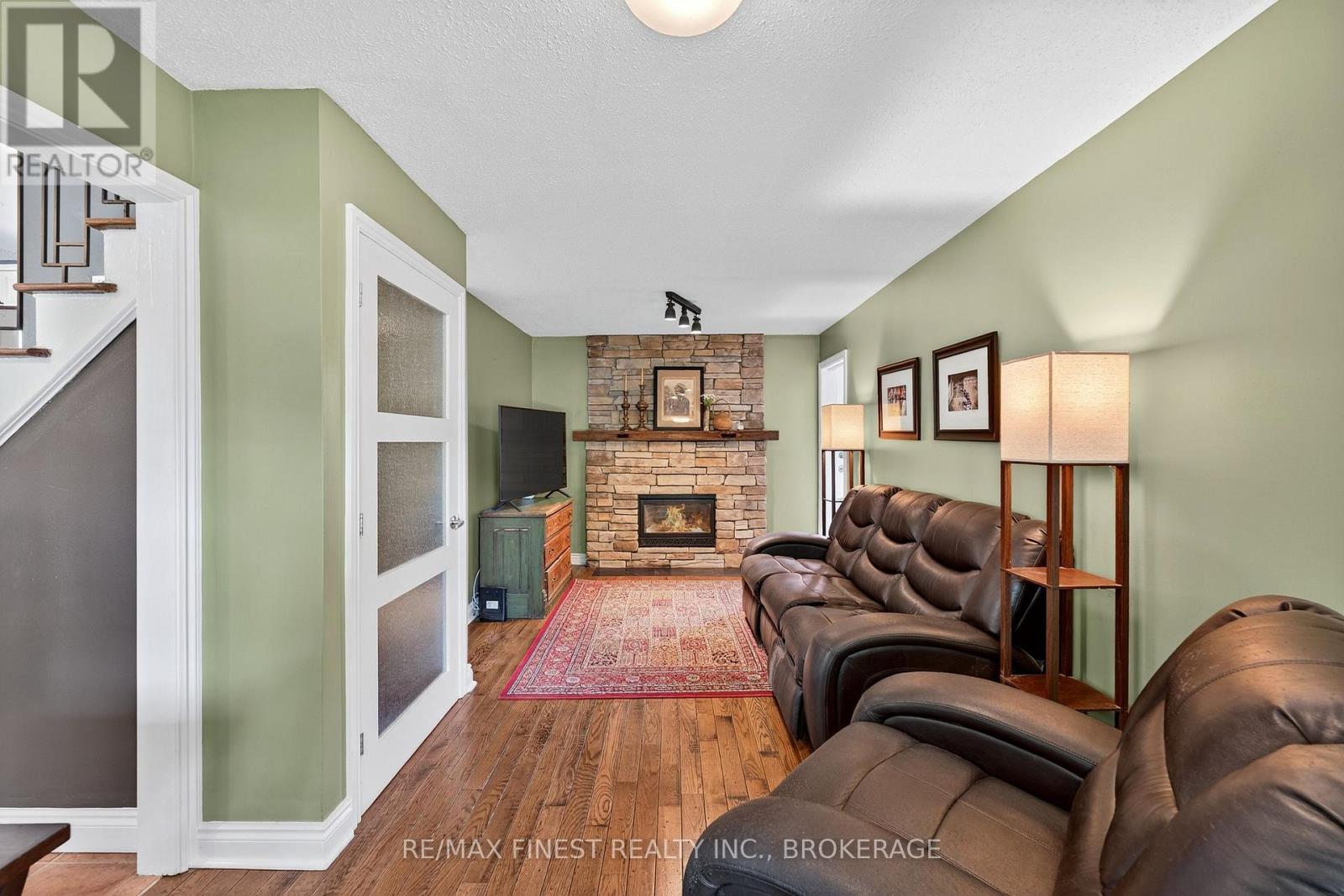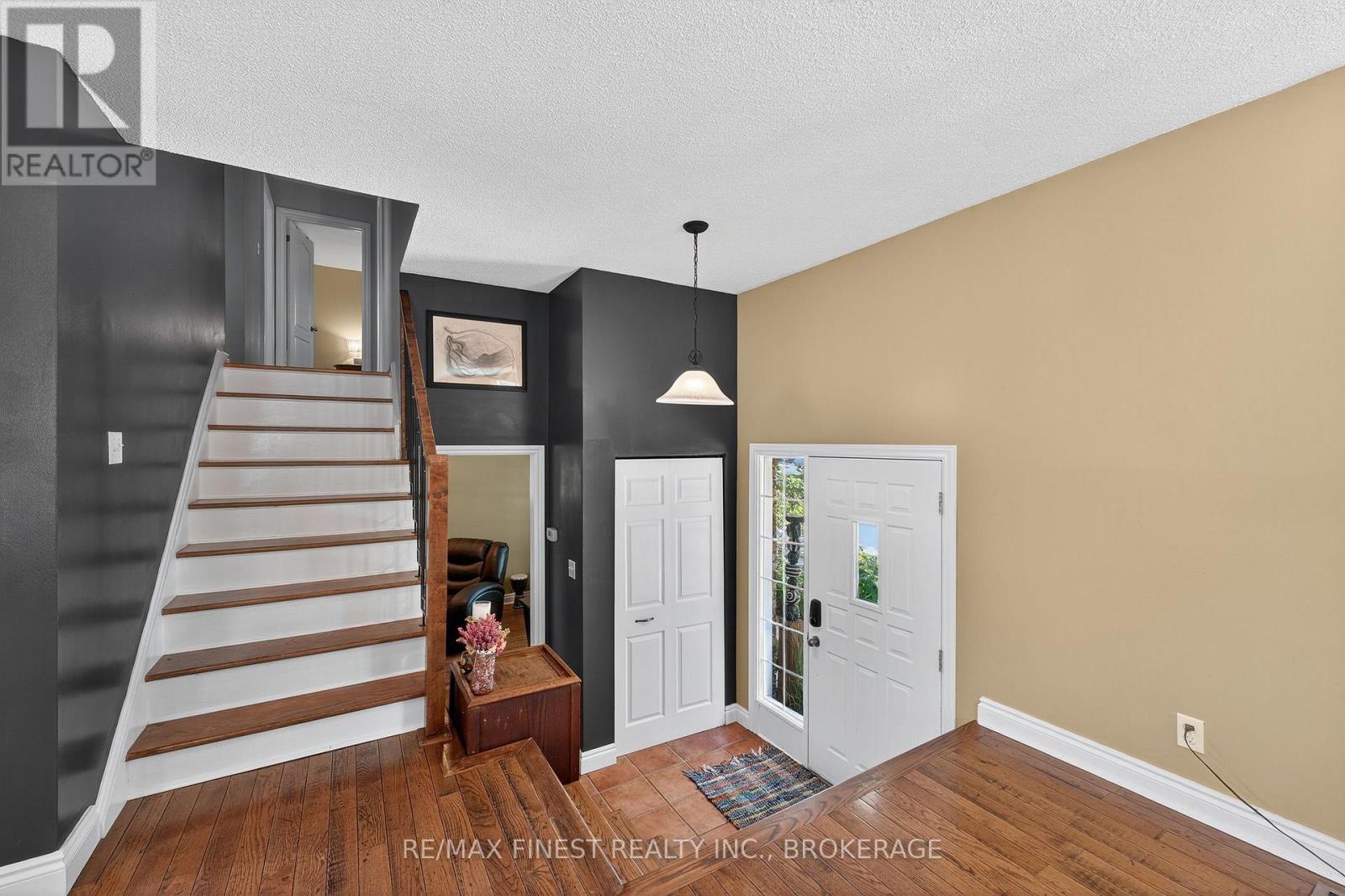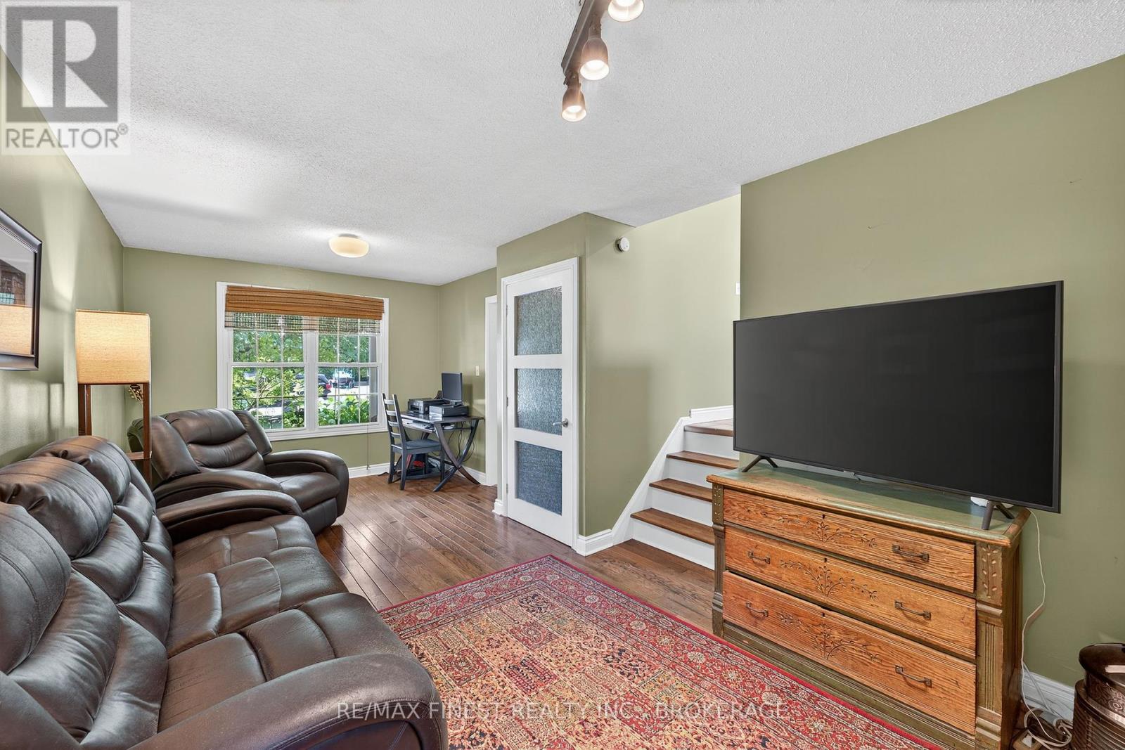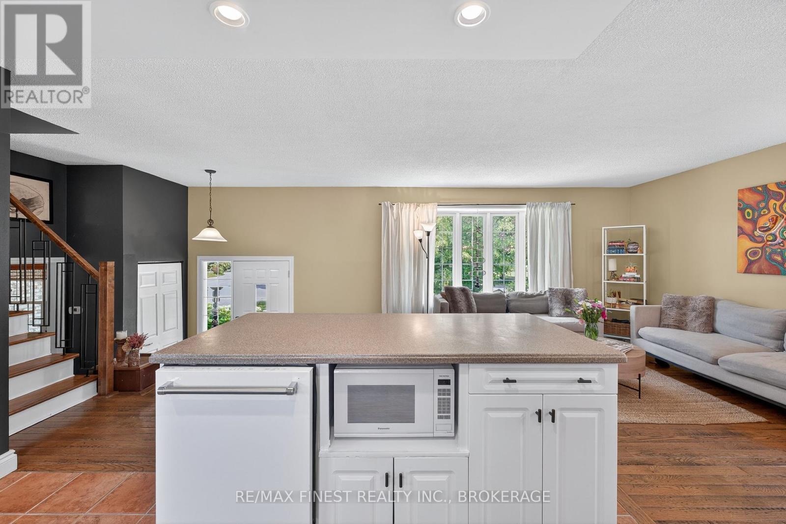 Welcome to 23 Diamond Crescent, a bright, well-maintained corner lot side split on a quiet crescent in Belleville's highly sought-after East Hill. With3+1 bedrooms, 1.5 bathrooms, and three finished levels of living space, this home offers flexibility, comfort, and charm in one of the citys most established neighbourhoods.The main floor features a sunlit open-concept living and dining area with large windows and a functional kitchen just off the dining space. Up a short flight, you'll find three spacious bedrooms and a full 4-piece bathroom. The mid-level offers a cozy den with a gas fireplace perfect for movie nights aswell as a handy 2-piece bathroom and direct access to the backyard. Downstairs, the lower level includes a fourth bedroom, a generous rec room, laundry area, and plenty of storage ideal for teens, guests, or a home gym. Outside, relax on your private side deck complete with a built-in hot tub and BBQ area, or gather around the fire pit in the fully fenced, side yard. The large driveway and single car garage allow for your whole crew to park with ease. Located just minutes from top-rated schools (Harry J. Clarke, Eastside Secondary), the hospital, shopping, public transit, and scenic Moira Rivertrails, this home delivers lifestyle and location in equal measure. (id:29295)