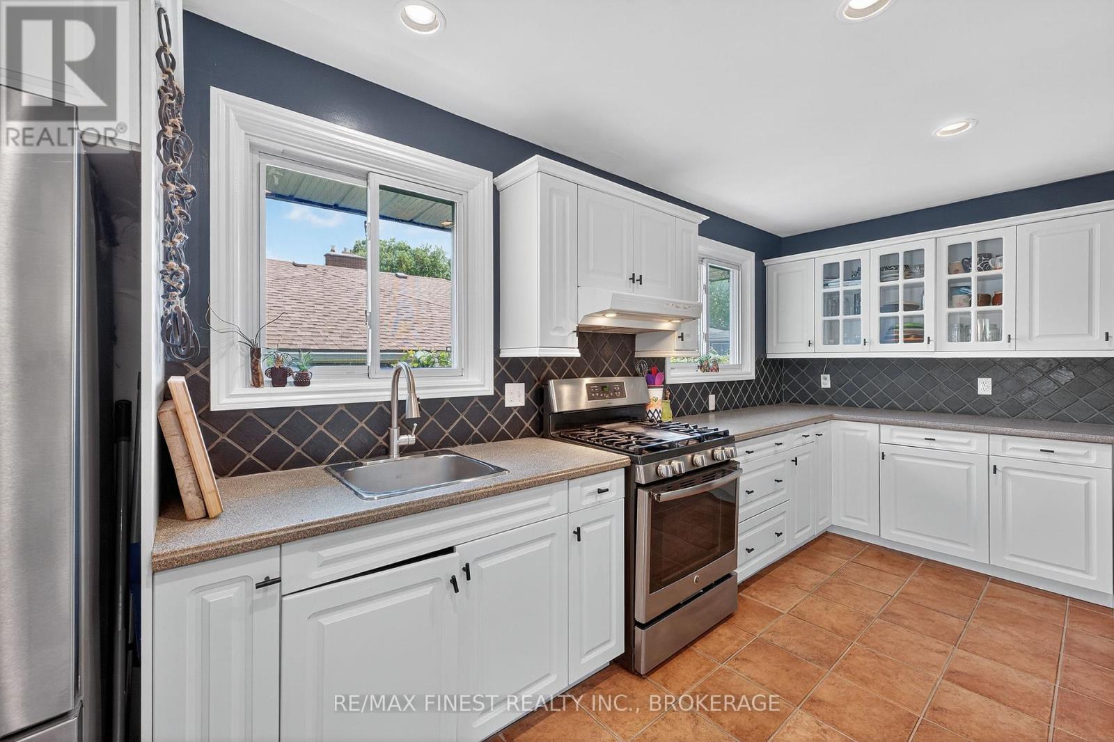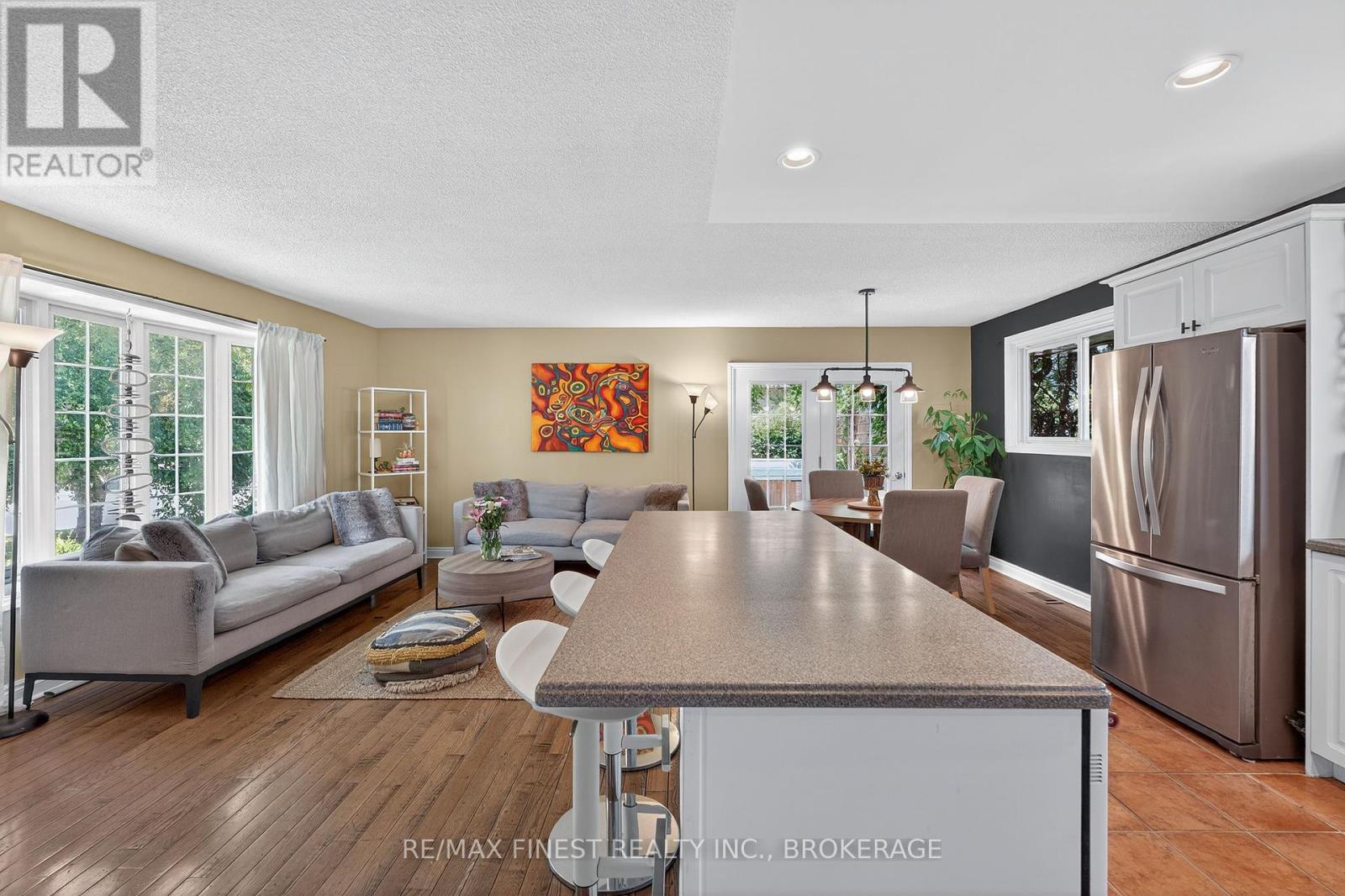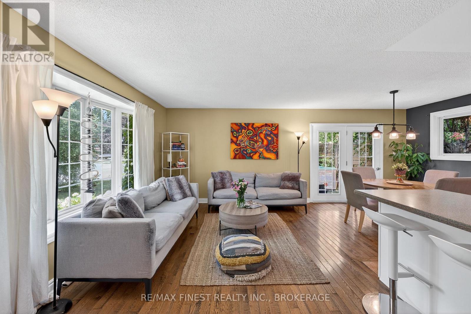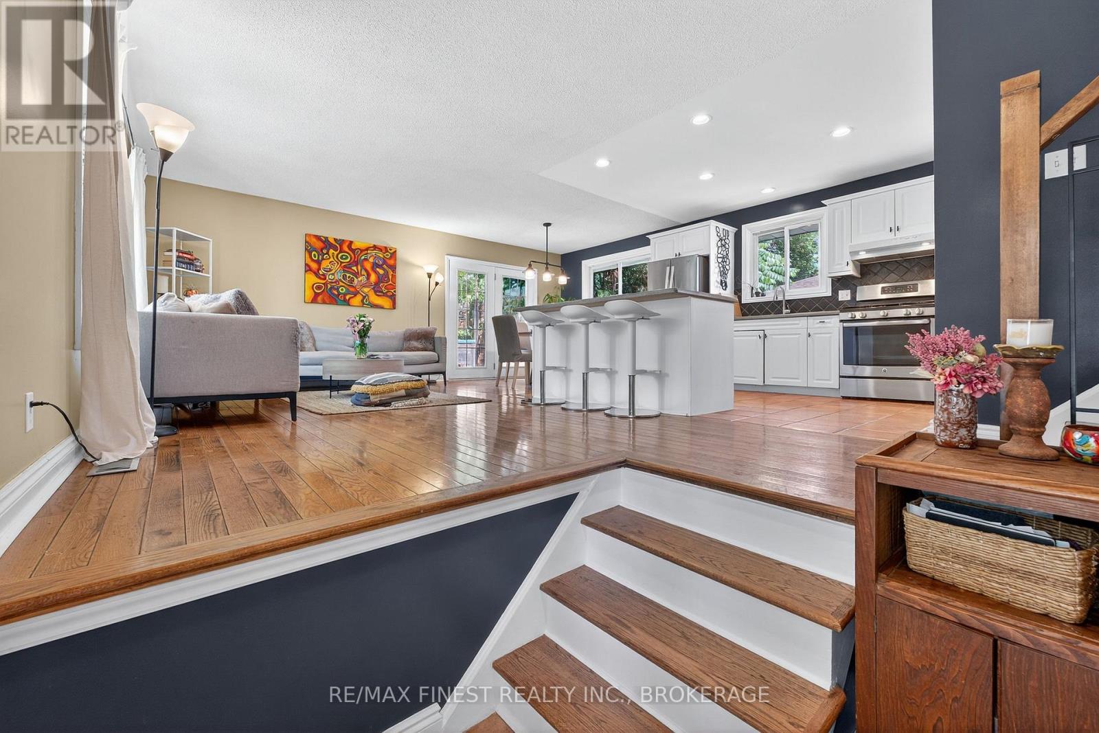 Welcome to 23 Diamond Crescent, a bright, well-maintained corner lot side split on a quiet crescent in Belleville's highly sought-after East Hill. With3+1 bedrooms, 1.5 bathrooms, and three finished levels of living space, this home offers flexibility, comfort, and charm in one of the citys most established neighbourhoods.The main floor features a sunlit open-concept living and dining area with large windows and a functional kitchen just off the dining space. Up a short flight, you'll find three spacious bedrooms and a full 4-piece bathroom. The mid-level offers a cozy den with a gas fireplace perfect for movie nights aswell as a handy 2-piece bathroom and direct access to the backyard. Downstairs, the lower level includes a fourth bedroom, a generous rec room, laundry area, and plenty of storage ideal for teens, guests, or a home gym. Outside, relax on your private side deck complete with a built-in hot tub and BBQ area, or gather around the fire pit in the fully fenced, side yard. The large driveway and single car garage allow for your whole crew to park with ease. Located just minutes from top-rated schools (Harry J. Clarke, Eastside Secondary), the hospital, shopping, public transit, and scenic Moira Rivertrails, this home delivers lifestyle and location in equal measure. (id:29295)
