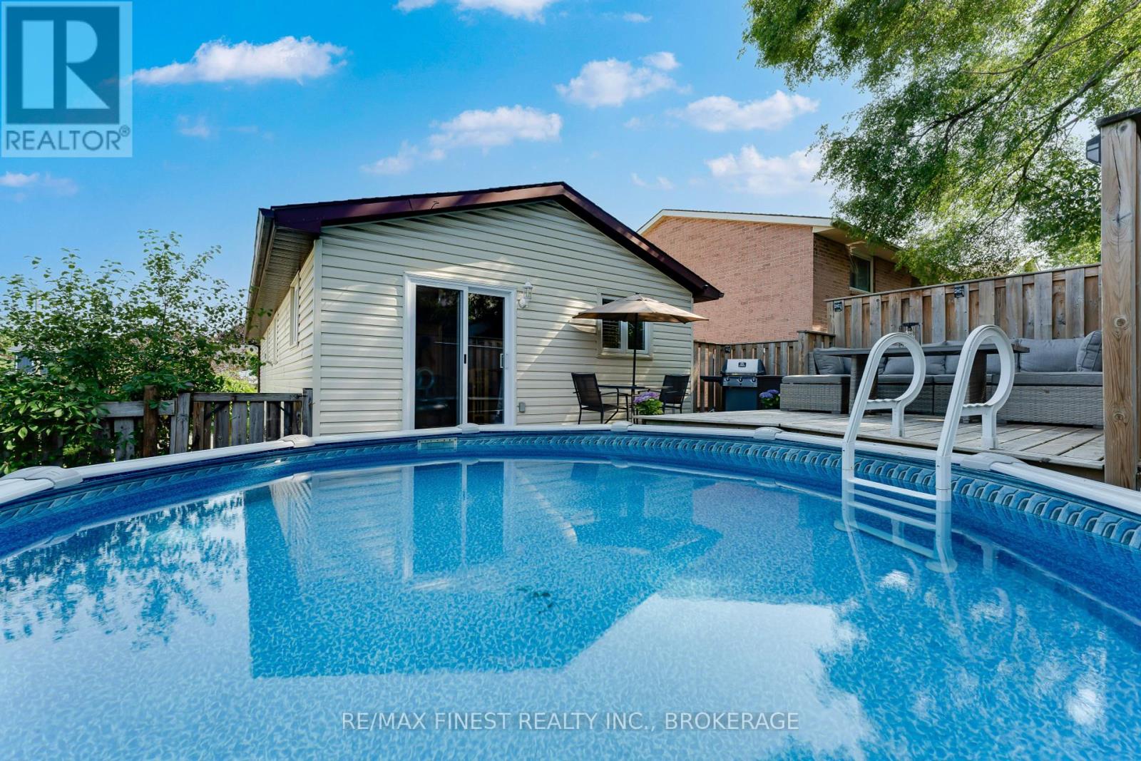 Welcome to 240 Old Quarry Rd, a bright and family-friendly raised bungalow in one of Kingston's most convenient central locations perfect for first-time buyers and growing families. This well-kept, carpet free home offers 3 bedrooms up, 2 full baths, and a fully finished basement with a cozy propane woodstove great for movie nights or a playroom. The layout is ideal for families, with a one-car garage that has inside entry to the basement, offering the potential for a future in-law suite or private space for teens or guests. Major updates have already been taken care of, including a new furnace (2017), air conditioning (2018), shingles (2019), and updated basement bathroom (2019). A new front door, new front window and back patio door (2025) add great curb appeal. All appliances washer, dryer, stove, fridge, and microwave were replaced in 2021, making this home truly move-in ready. Enjoy summers in the cozy, fully fenced, low-maintenance backyard with a two-tiered deck and above-ground pool (liner and heater replaced in 2020) a perfect space for kids to play or to host family BBQs. Set in a great school district and just steps to a nearby park, this home checks all the boxes for convenience, comfort and value. Move in, relax and enjoy everything this wonderful family home has to offer. (id:29295)
