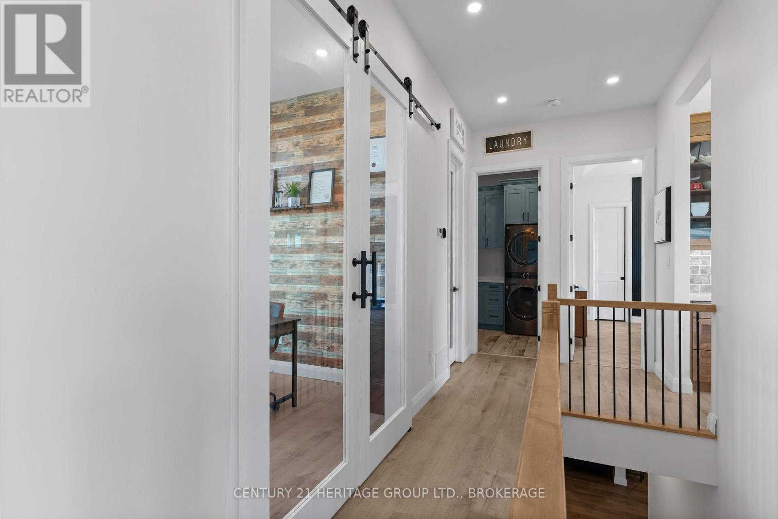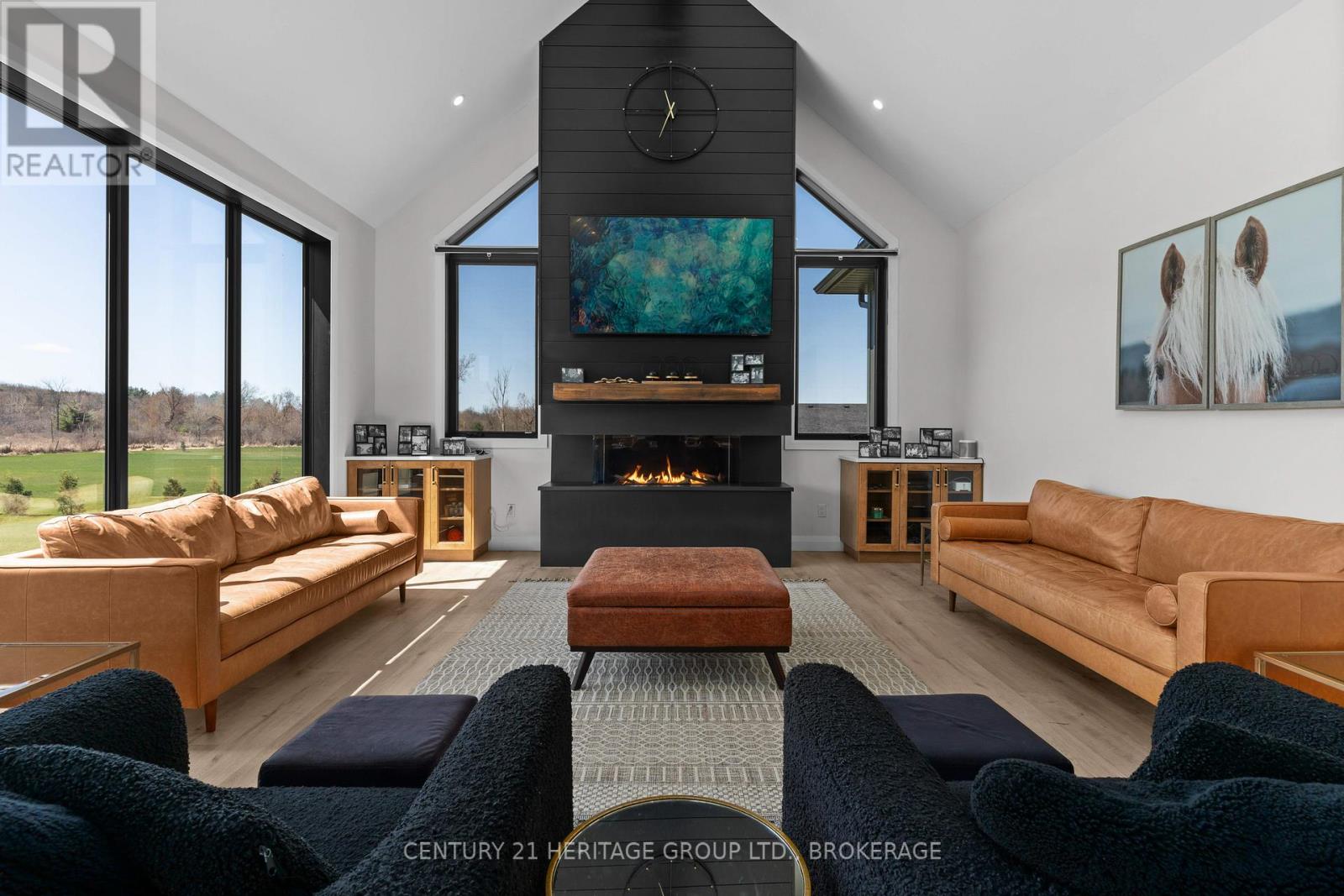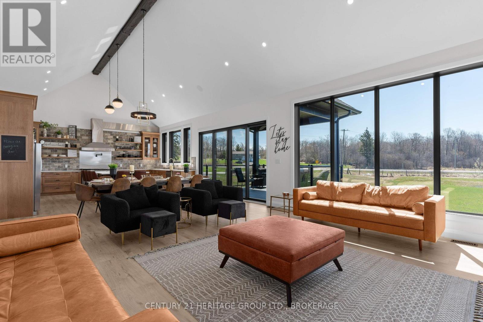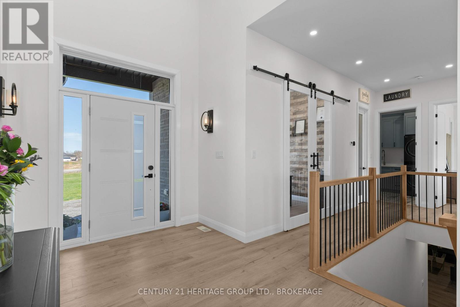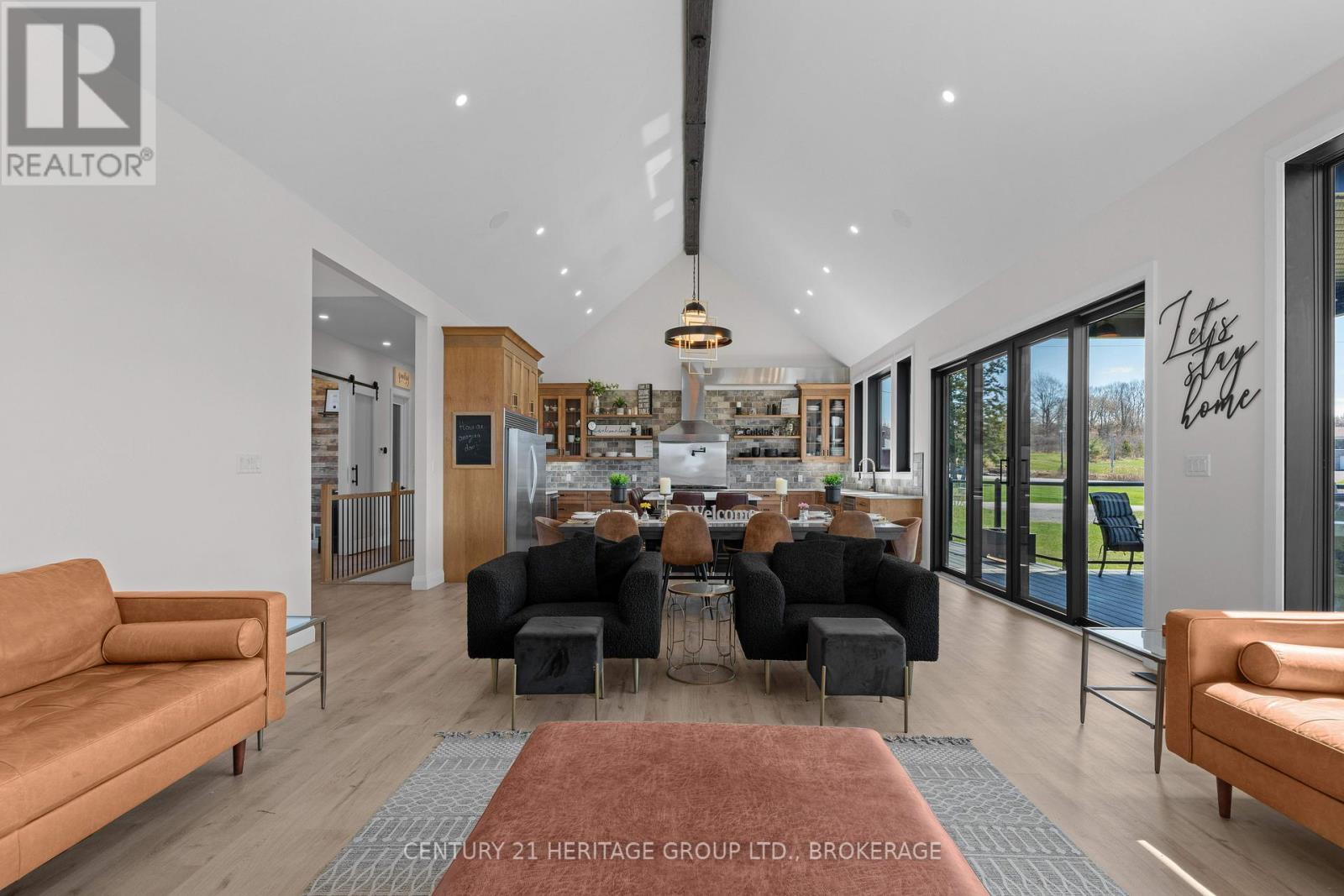 Welcome to 245 Mann Drive, an extraordinary 5-bedroom, 3.5-bathroom custom home set on an estate-sized lot in the sought-after community of Gibraltar Estates. Offering over 4,600 square feet of thoughtfully designed living space, this impressive residence blends elegant design with everyday functionality-ideal for families, entertaining, and multi-generational living. The striking stone and Hardie board exterior introduces a home defined by quality craftsmanship. Inside, dramatic 20-foot vaulted ceilings, floor-to-ceiling windows, and an expansive open-concept layout create a bright, welcoming atmosphere. At the heart of the home is a chef-inspired kitchen featuring an oversized quartz island, brick backsplash, open shelving, high-end appliances including a propane double-oven stove, and a spacious walk-in pantry. The adjacent dining area is perfectly suited for hosting gatherings. The main-floor primary suite offers a private retreat with dual walk-in closets, deck access, and a spa-like ensuite with a soaker tub, dual vanities, and an impressive walk-in shower. A dedicated office, two additional bedrooms, and main-floor laundry provide excellent day-to-day functionality. The fully finished walkout lower level adds two bedrooms, a full bath, a games room, a cozy den with a fireplace, and a home gym complete with sauna-ideal for guests, teens, or extended family. Outside, enjoy the covered upper deck, swim spa, and stunning sunset views. Built to impress and designed to live in, 245 Mann Drive offers the perfect balance of luxury, comfort, and lifestyle in one exceptional property. (id:29295)