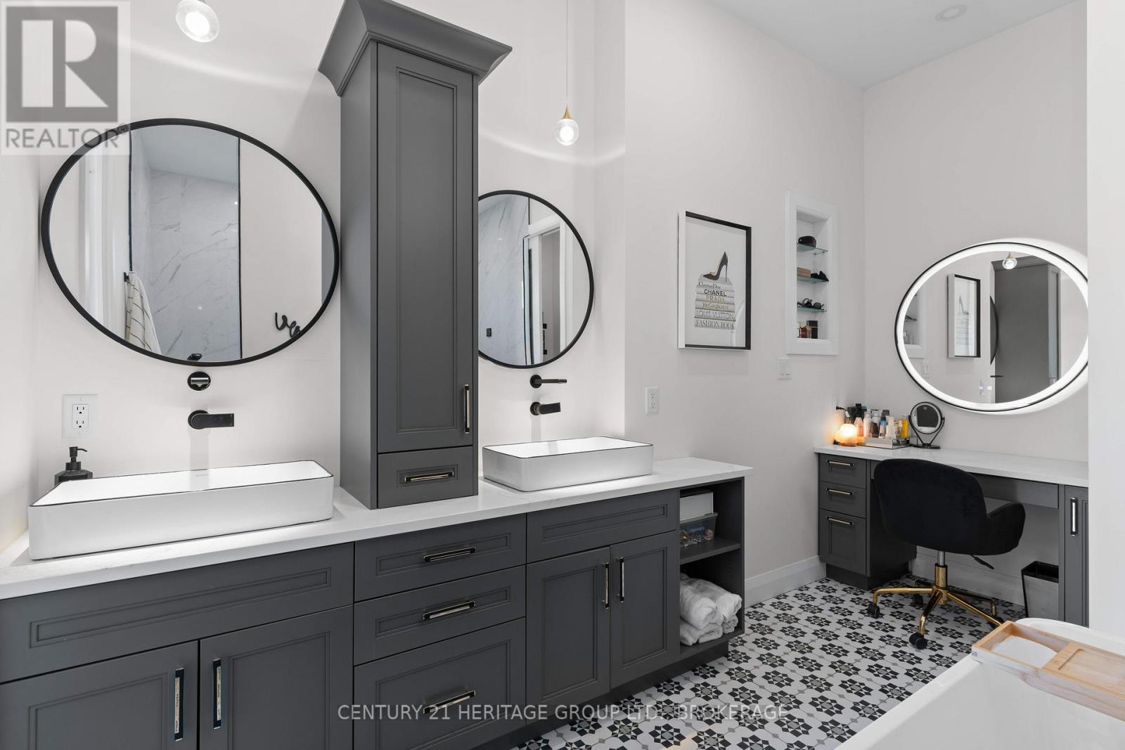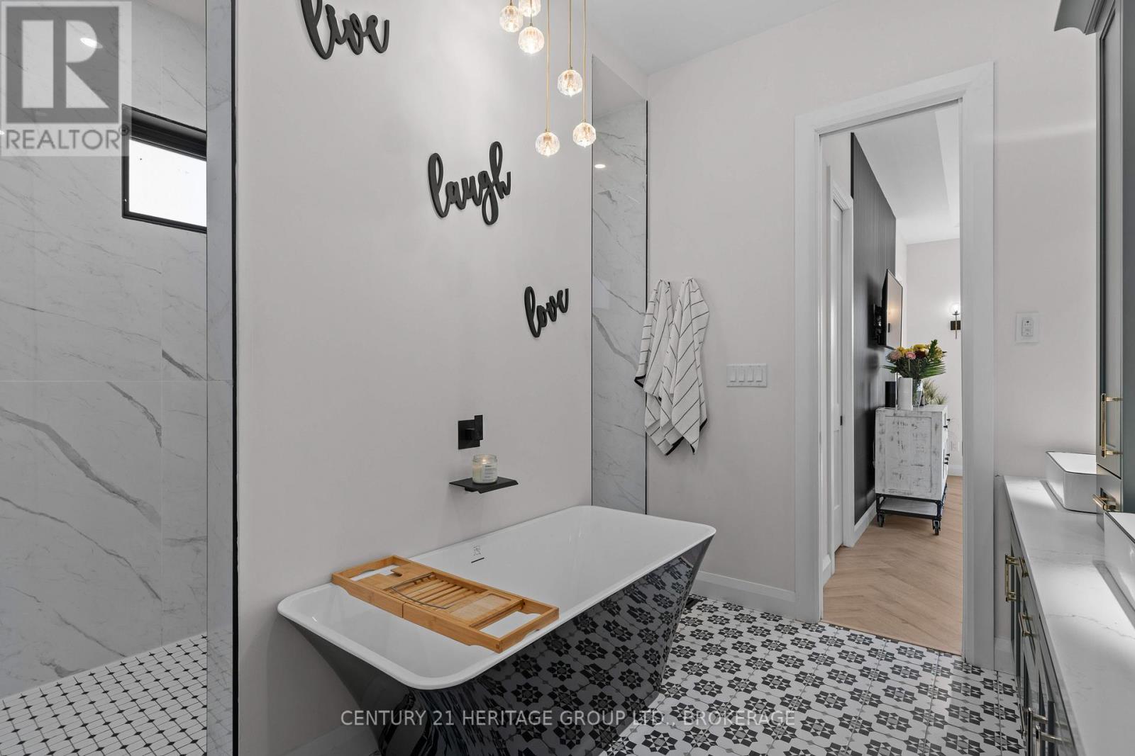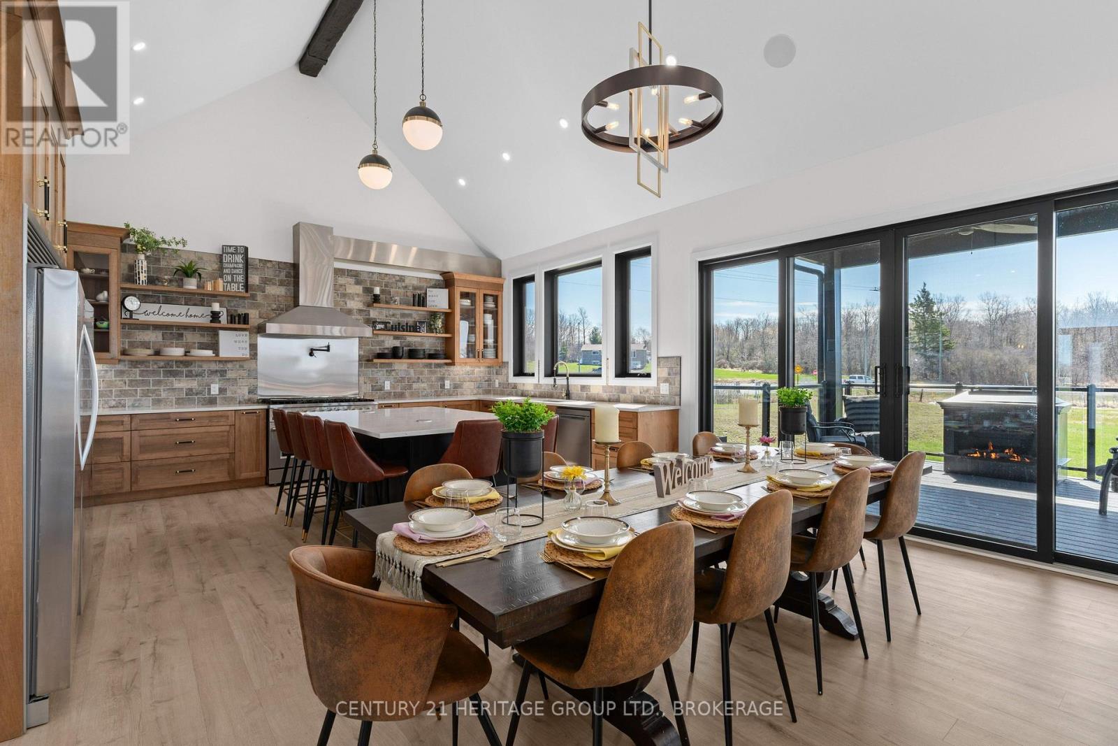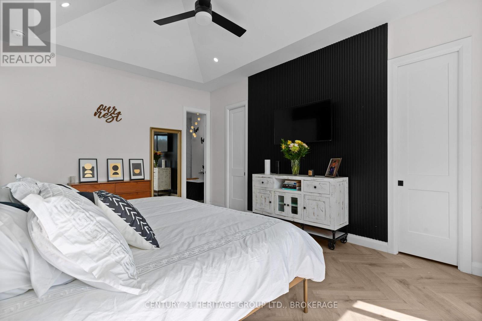 Welcome to 245 Mann Drive, an extraordinary 5-bedroom, 3.5-bathroom custom home set on an estate-sized lot in the sought-after community of Gibraltar Estates. Offering over 4,600 square feet of thoughtfully designed living space, this impressive residence blends elegant design with everyday functionality-ideal for families, entertaining, and multi-generational living. The striking stone and Hardie board exterior introduces a home defined by quality craftsmanship. Inside, dramatic 20-foot vaulted ceilings, floor-to-ceiling windows, and an expansive open-concept layout create a bright, welcoming atmosphere. At the heart of the home is a chef-inspired kitchen featuring an oversized quartz island, brick backsplash, open shelving, high-end appliances including a propane double-oven stove, and a spacious walk-in pantry. The adjacent dining area is perfectly suited for hosting gatherings. The main-floor primary suite offers a private retreat with dual walk-in closets, deck access, and a spa-like ensuite with a soaker tub, dual vanities, and an impressive walk-in shower. A dedicated office, two additional bedrooms, and main-floor laundry provide excellent day-to-day functionality. The fully finished walkout lower level adds two bedrooms, a full bath, a games room, a cozy den with a fireplace, and a home gym complete with sauna-ideal for guests, teens, or extended family. Outside, enjoy the covered upper deck, swim spa, and stunning sunset views. Built to impress and designed to live in, 245 Mann Drive offers the perfect balance of luxury, comfort, and lifestyle in one exceptional property. (id:29295)