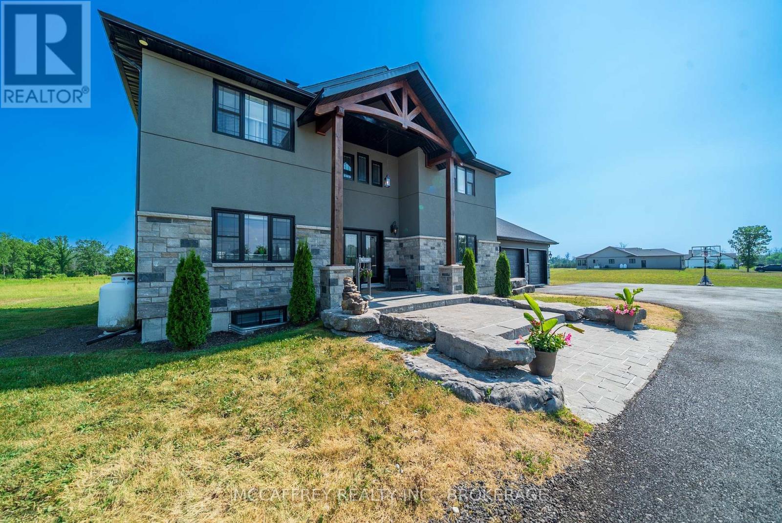 Welcome to your dream home, a breathtaking custom-built two-story residence that effortlessly combines luxury and comfort. As you approach the property, you'll be greeted by a circular driveway, and an attached two-car garage that adds convenience and ample space for parking. The grand entrance is truly a sight to behold, featuring large, elegant wood beams that exude a timeless charm and glandular appeal. Step inside and immerse yourself in a sun-drenched space where an open-concept design seamlessly unites style and functionality. The expansive kitchen is a chef's delight, complete with a large center island, generous pantry, and a dining area that invites lively gatherings and memorable moments. The spacious living room, bathed in natural light, offers the tranquility of a serene retreat. Open the patio doors to a welcoming deck, perfect for an afternoon unwind, and enjoy your private above-ground pool with picturesque views of the peaceful pond beyond. Completing the main level is a chic 2-piece bathroom, a versatile den or office space for those who work from home, and a convenient mudroom with direct access to the garage. Ascend the stunning wood staircase to the second floor, where every detail has been crafted with care. Discover three beautifully appointed bedrooms and a well-equipped laundry room with a sink for added ease. The primary bedroom is a true oasis, featuring a walk-in closet and a luxurious 4-piece ensuite that promises relaxation with its indulgent soaker tub and sleek glass shower. The lower level offers even more, leading you to a vibrant finished recreation room, a perfect canvas for family entertainment or personal retreat. This level also includes a fifth bedroom, a 4-piece bathroom, and a generous utility room with abundant storage. This spectacular home is your sanctuary, where every corner is designed to inspire and comfort. Embrace the elegance, the space, and the breathtaking views this is a property not to be missed! (id:29295)
