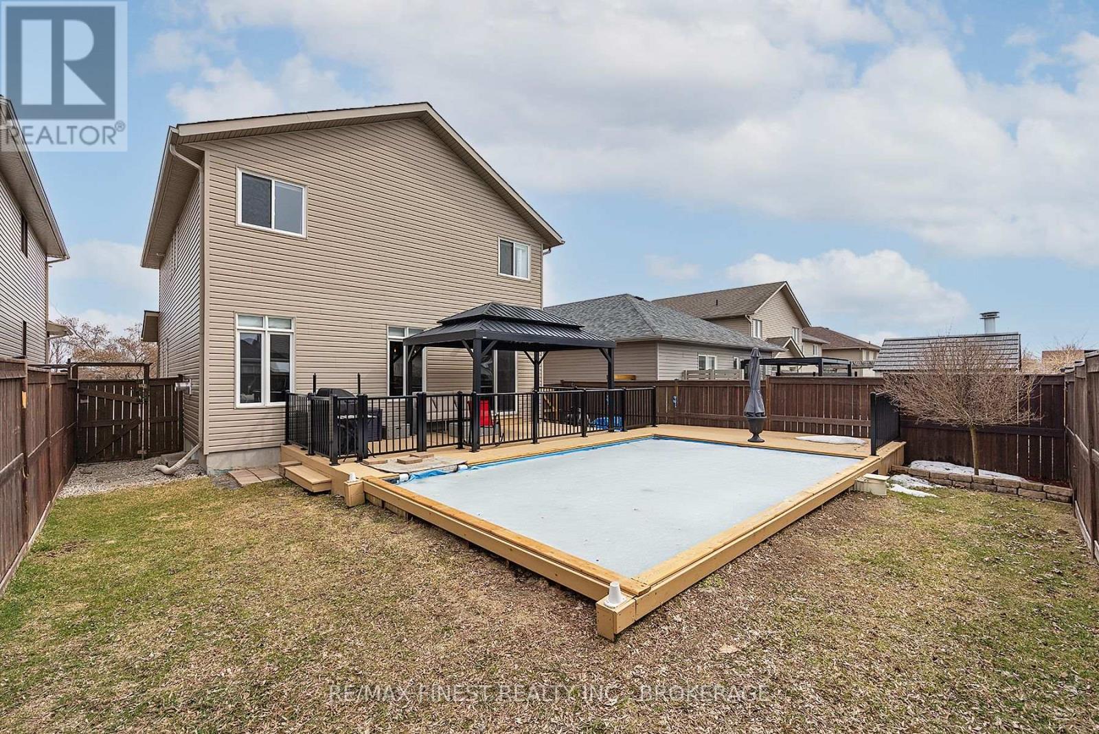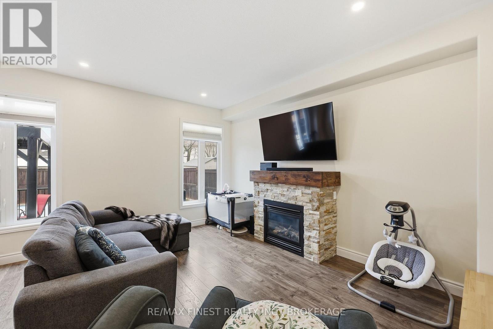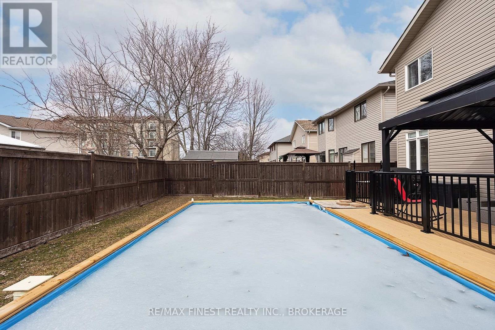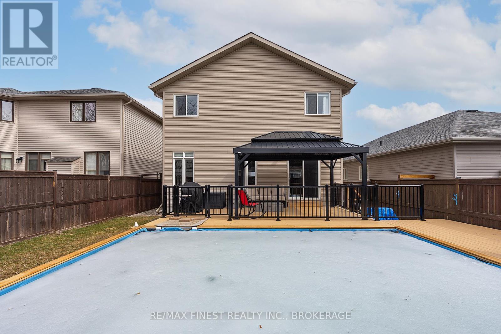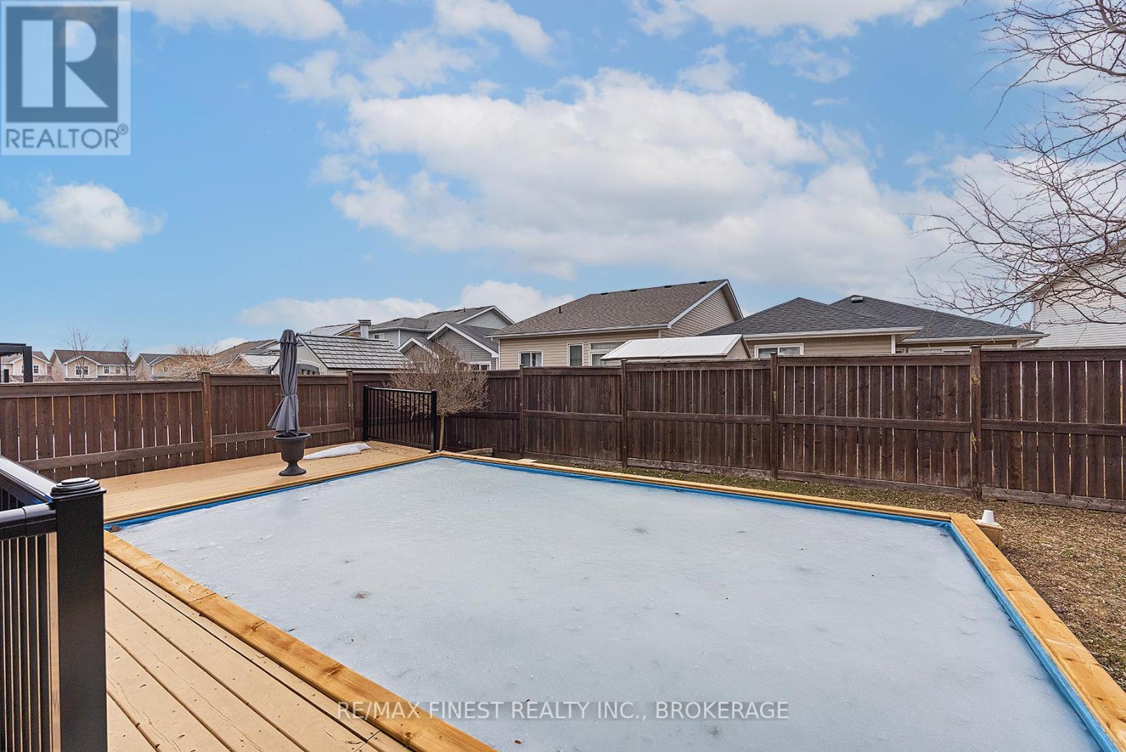 Welcome home to one of Kingston's most desirable west-end neighbourhoods, where convenience, community, and modern living come together. This two-storey home offers a functional layout with 3+1 bedrooms and 3.5 bathrooms. The main level features a bright, open-concept design, perfect for both everyday living and entertaining. The kitchen, dining, and living areas flow seamlessly together, anchored by a cozy natural gas fireplace in the family room, along with a convenient two-piece bathroom. Upstairs, you'll find generously sized bedrooms, two full bathrooms, and convenient upper-level laundry, including a spacious primary suite featuring an electric fireplace, a 5-piece ensuite with a soaker tub, and a large walk-in closet. The lower level adds valuable living space with a finished rec room, an additional bedroom, and a full bathroom-ideal for guests, a home office, or extended family. Step outside to your private backyard oasis, complete with a spacious deck and an on-ground pool, perfect for summer entertaining or unwinding at the end of the day. Located close to schools, parks, shopping, and recreation, this home offers the perfect balance of lifestyle and location (id:29295)