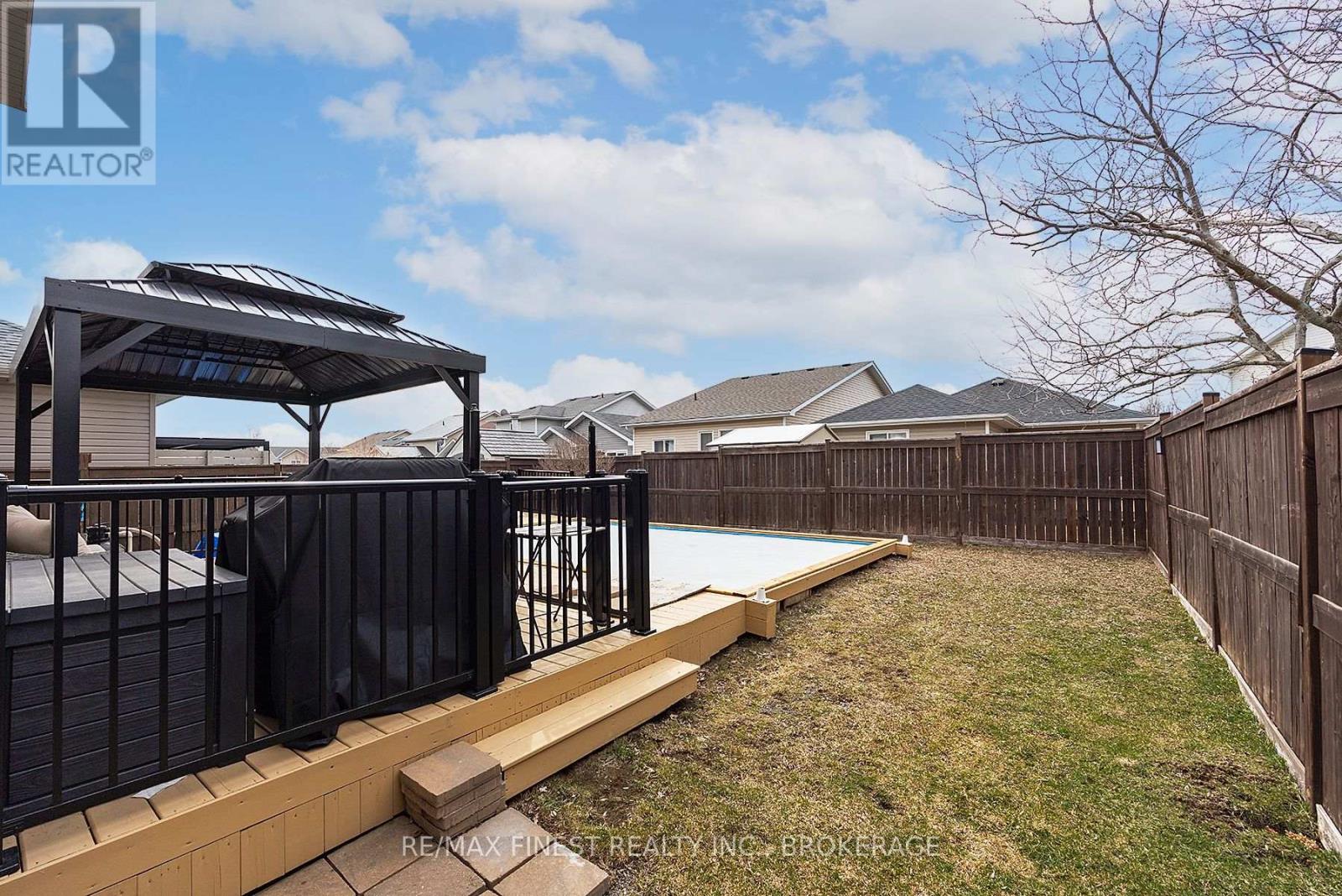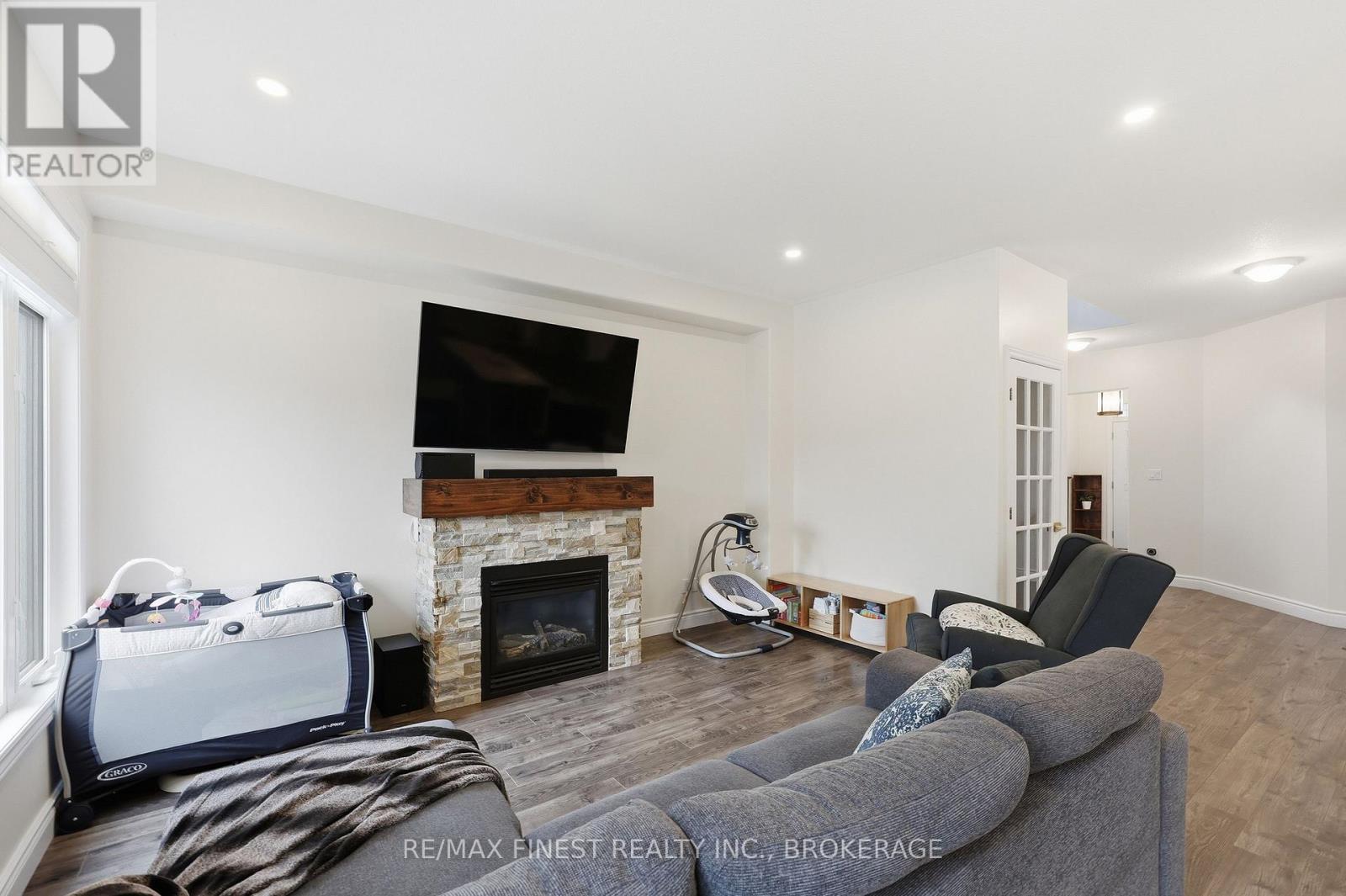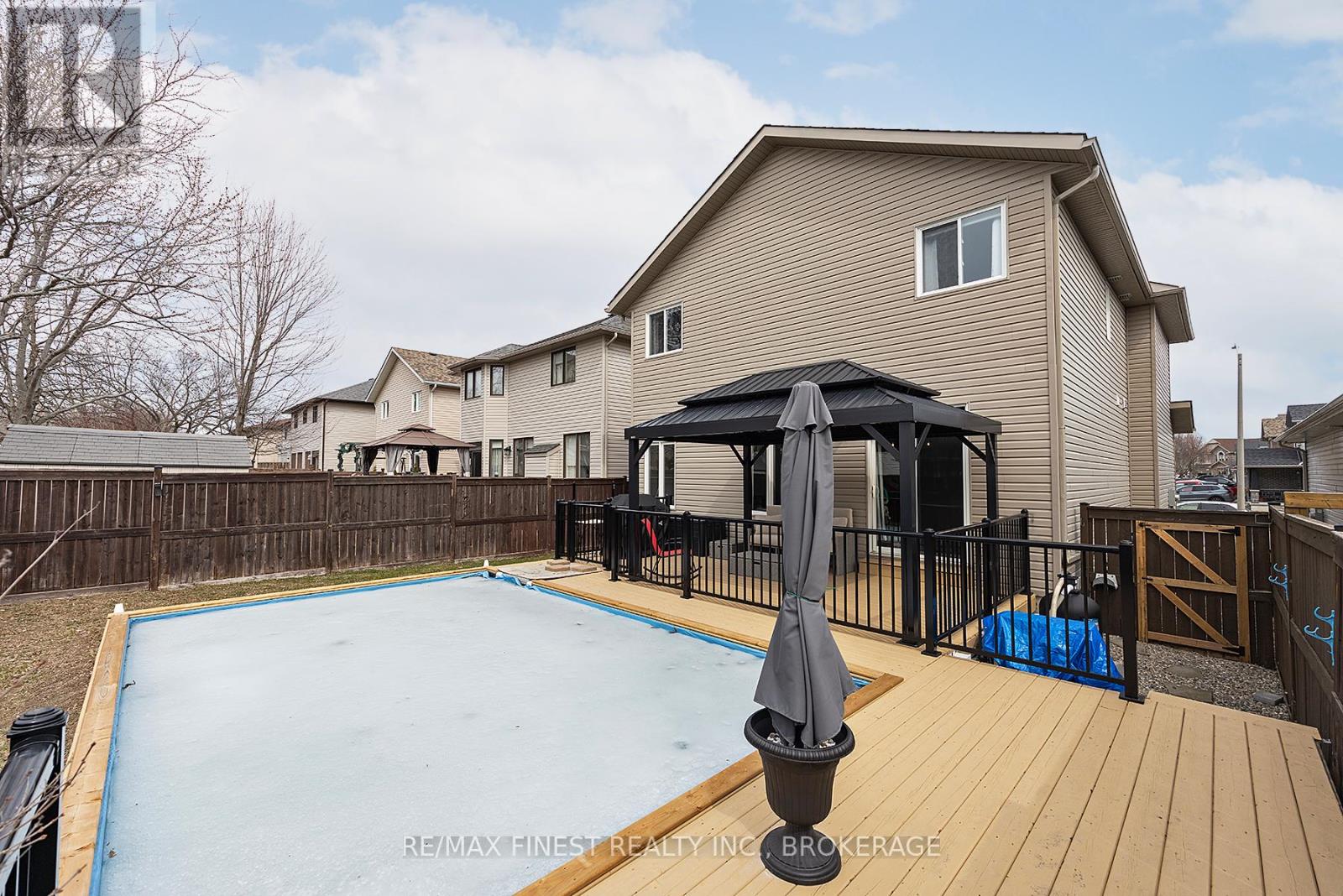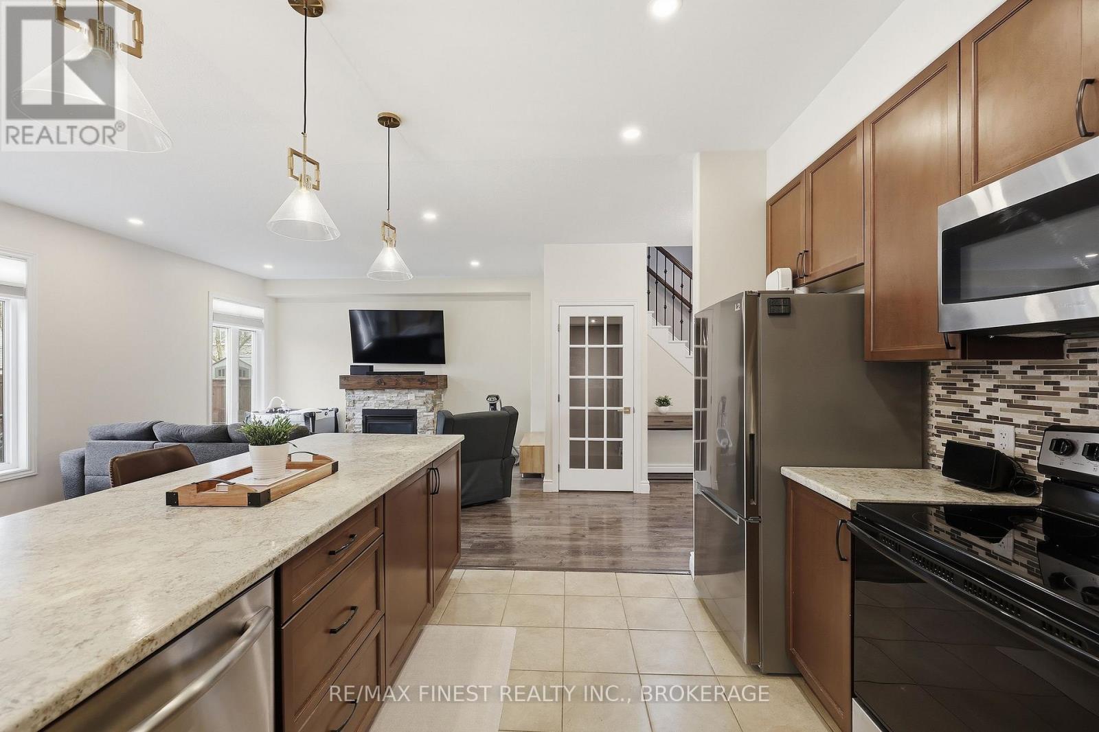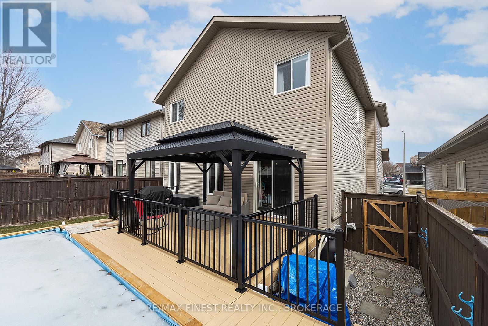 Welcome home to one of Kingston's most desirable west-end neighbourhoods, where convenience, community, and modern living come together. This two-storey home offers a functional layout with 3+1 bedrooms and 3.5 bathrooms. The main level features a bright, open-concept design, perfect for both everyday living and entertaining. The kitchen, dining, and living areas flow seamlessly together, anchored by a cozy natural gas fireplace in the family room, along with a convenient two-piece bathroom. Upstairs, you'll find generously sized bedrooms, two full bathrooms, and convenient upper-level laundry, including a spacious primary suite featuring an electric fireplace, a 5-piece ensuite with a soaker tub, and a large walk-in closet. The lower level adds valuable living space with a finished rec room, an additional bedroom, and a full bathroom-ideal for guests, a home office, or extended family. Step outside to your private backyard oasis, complete with a spacious deck and an on-ground pool, perfect for summer entertaining or unwinding at the end of the day. Located close to schools, parks, shopping, and recreation, this home offers the perfect balance of lifestyle and location (id:29295)