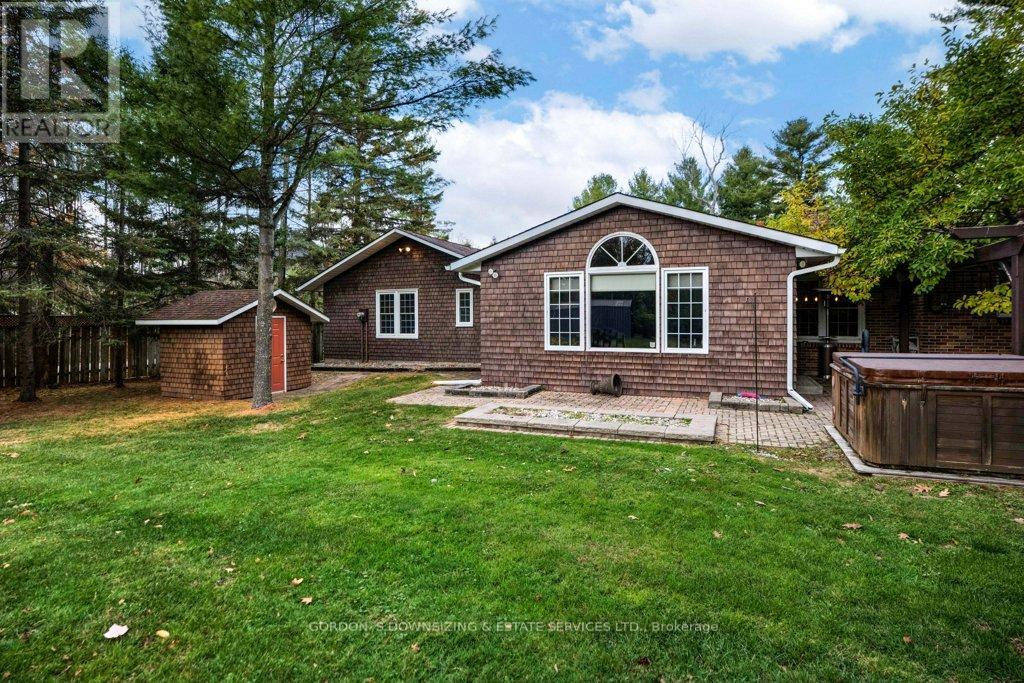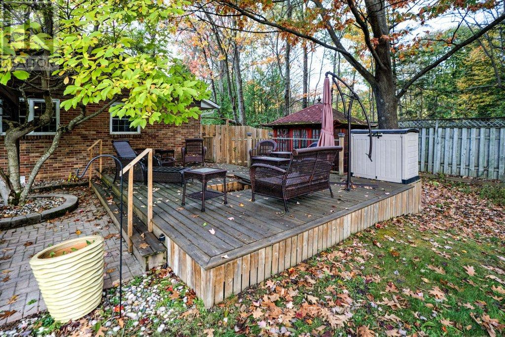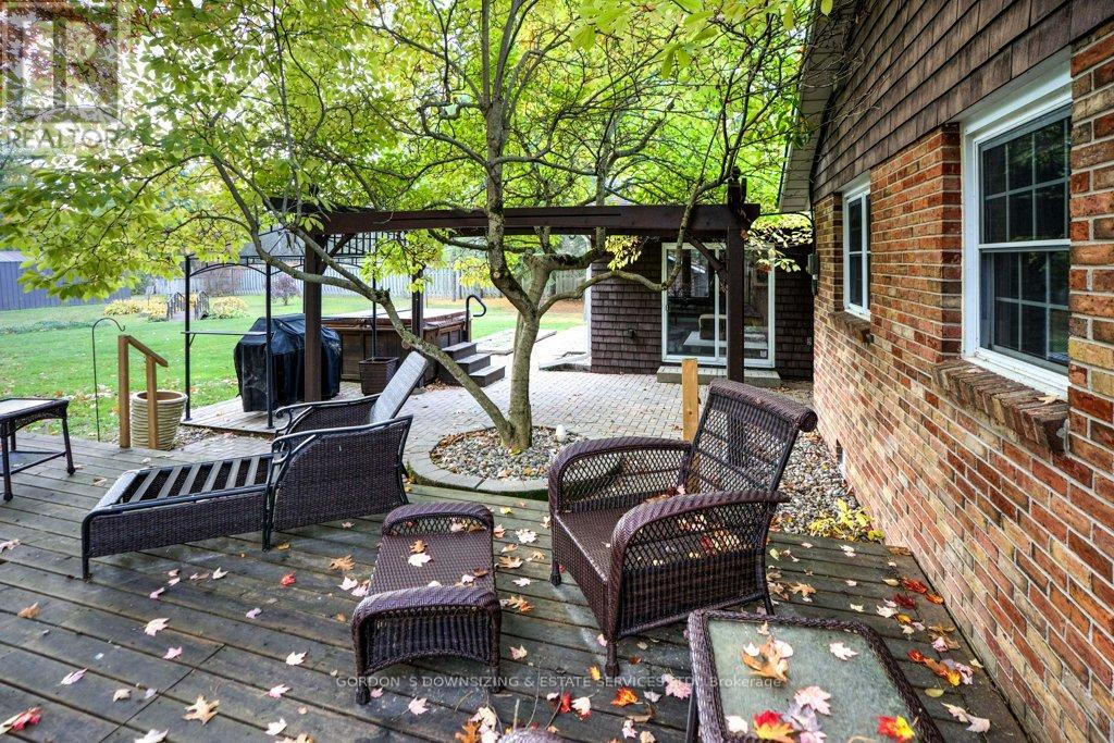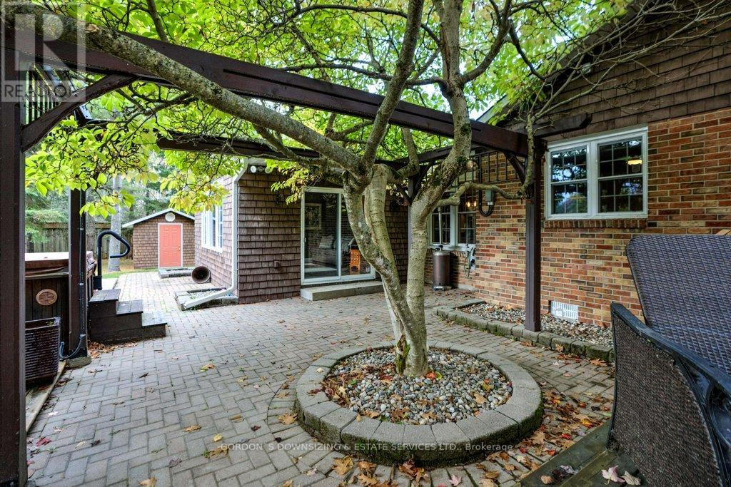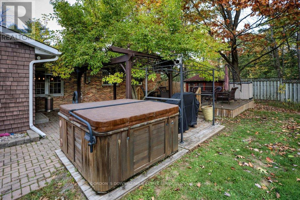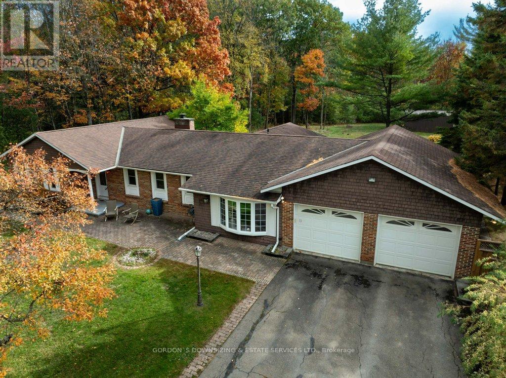 Welcome to 303 Woodridge Road! Set on a quiet, tree-lined road just minutes from Brockville's waterfront, shopping, and commuter routes, this property offers the peace of the countryside with the convenience of town close at hand. Surrounded by mature maples and evergreens, the home rests on a beautifully landscaped lot that feels private, natural, and refined. Inside, this updated 3-bedroom, 2.5-bath bungalow offers nearly 2,000 sq. ft. of bright, airy living space with a warm, inviting sense of luxury. The modernized kitchen features rich wood cabinetry, stainless-steel appliances, and a cheerful glass-tile backsplash that opens to a relaxed breakfast nook and adjoining family room with vaulted ceilings, a dramatic arched window, and cozy fireplaces that bring light and comfort together. A separate dining room and additional sitting area extend the flow for entertaining or quiet evenings, combining comfort with elegance. The primary suite includes an updated 3-piece ensuite, while two additional bedrooms and a refreshed 4-piece bath complete the private wing. Everyday practicality shines in the mudroom and laundry area with inside entry to the attached double garage. Step outside to your own private retreat, featuring a multi-level deck, hot tub, and brick patio nestled beneath mature trees. A charming footbridge crosses a seasonal stream leading to a large detached garage/workshop-ideal for hobbies, creative projects, or additional storage. The fenced yard and surrounding greenery create a sense of calm and seclusion rarely found this close to town. Meticulously maintained and thoughtfully updated, 303 Woodridge Road blends timeless comfort with everyday luxury-an inviting home where privacy, space, and warmth come together perfectly. Offers will be presented on February 20th (id:29295)