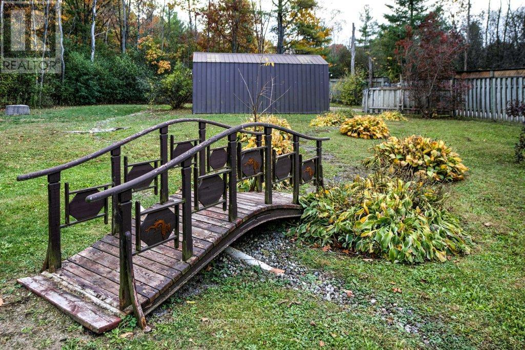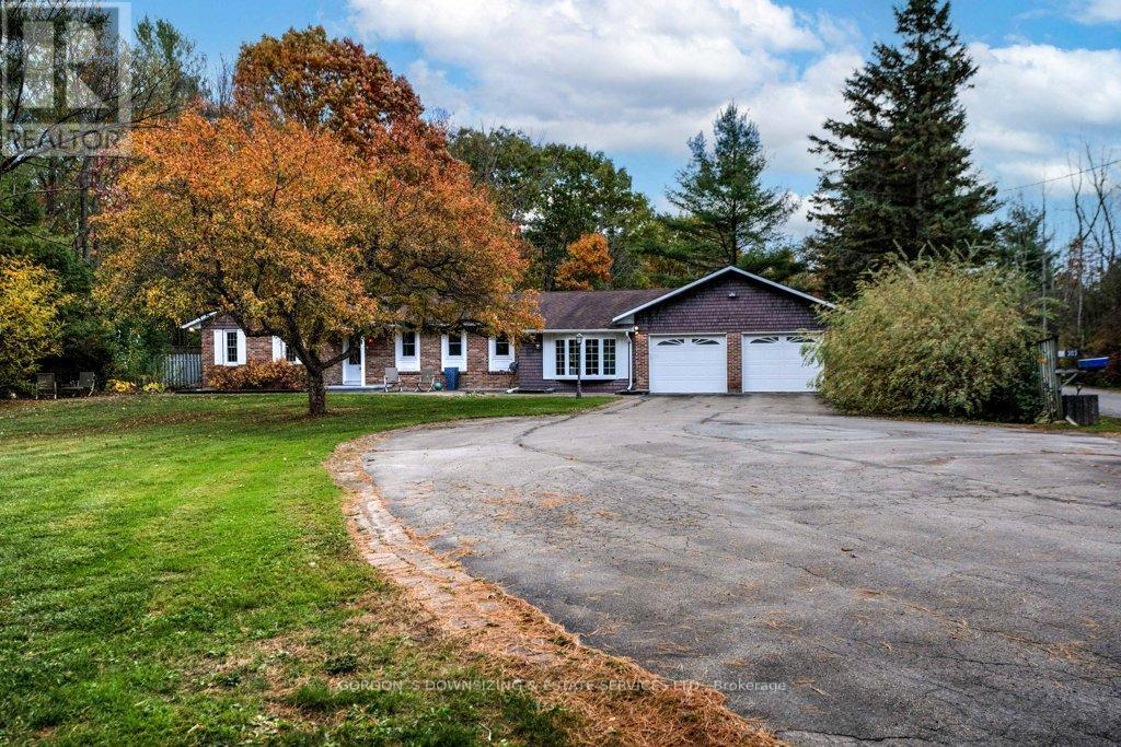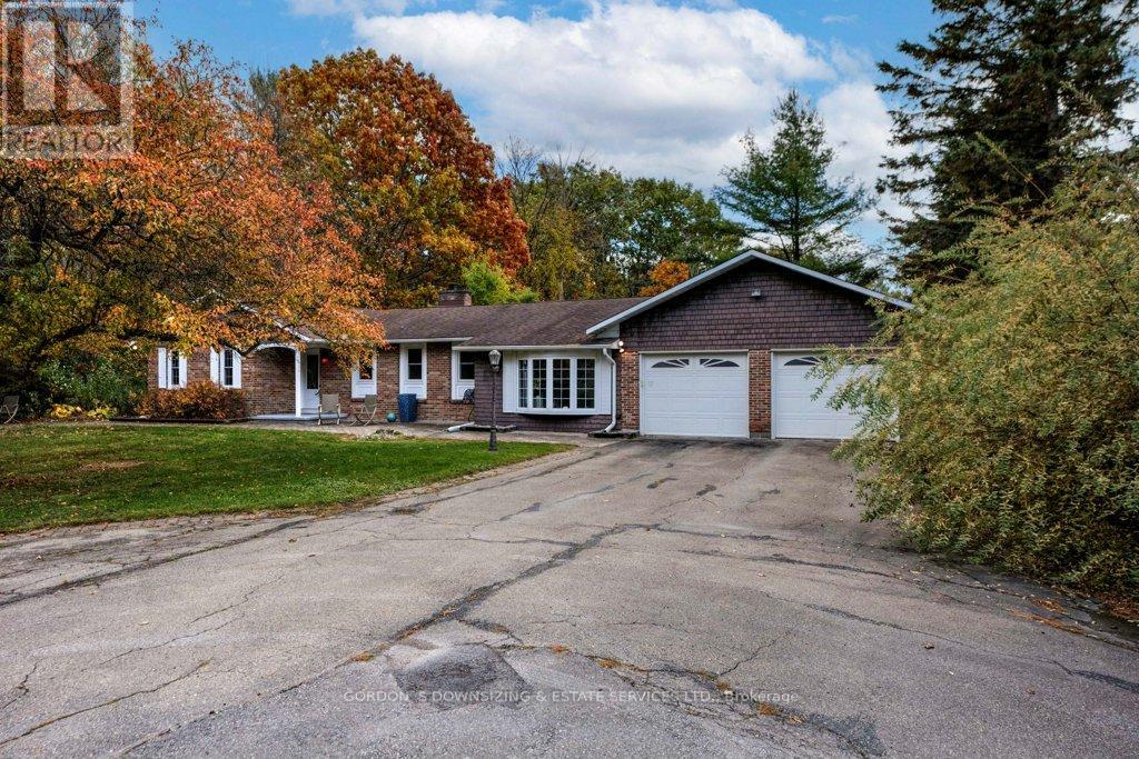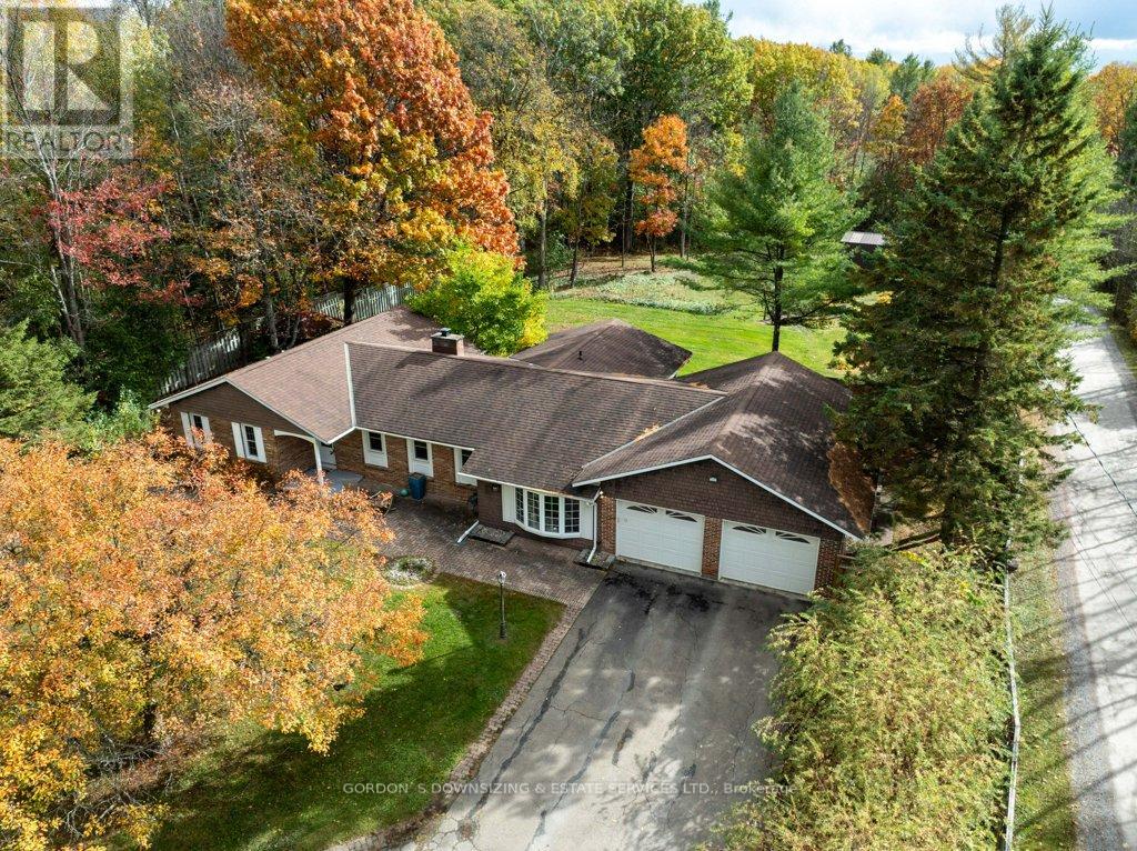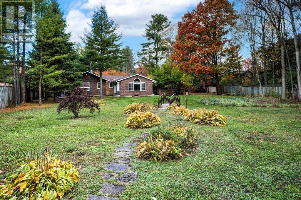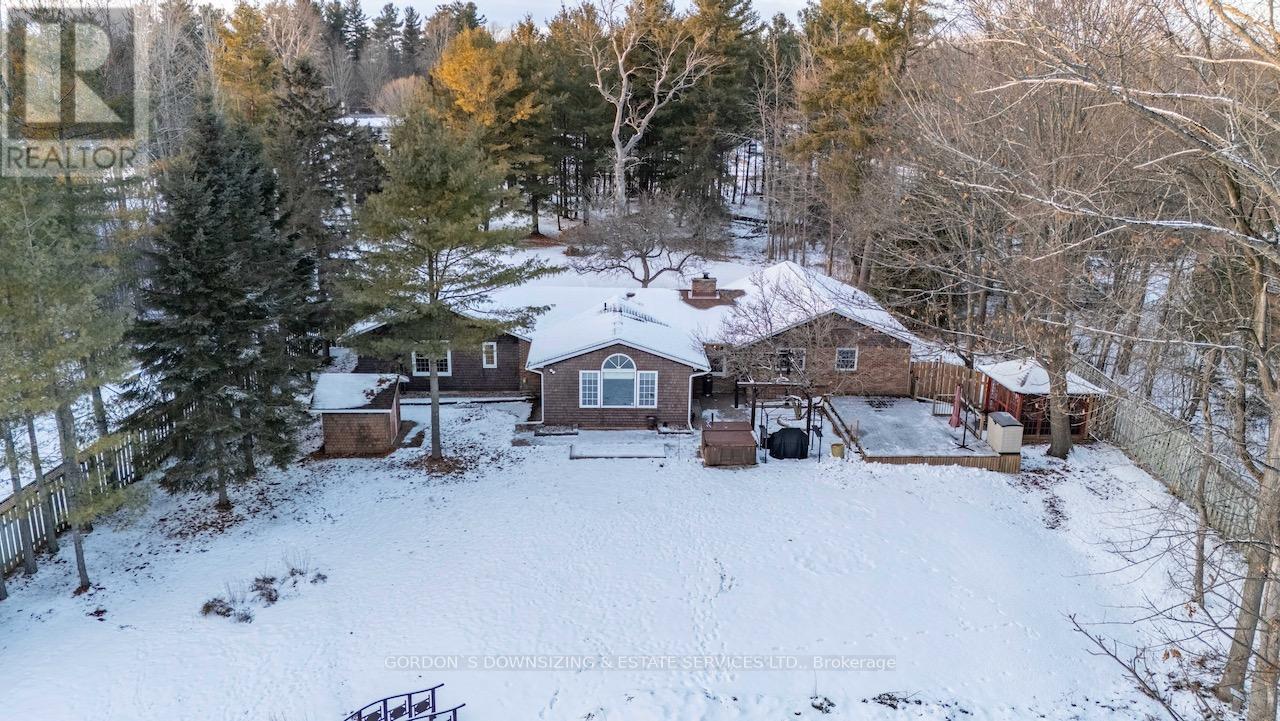 Welcome to 303 Woodridge Road! Set on a quiet, tree-lined road just minutes from Brockville's waterfront, shopping, and commuter routes, this property offers the peace of the countryside with the convenience of town close at hand. Surrounded by mature maples and evergreens, the home rests on a beautifully landscaped lot that feels private, natural, and refined. Inside, this updated 3-bedroom, 2.5-bath bungalow offers nearly 2,000 sq. ft. of bright, airy living space with a warm, inviting sense of luxury. The modernized kitchen features rich wood cabinetry, stainless-steel appliances, and a cheerful glass-tile backsplash that opens to a relaxed breakfast nook and adjoining family room with vaulted ceilings, a dramatic arched window, and cozy fireplaces that bring light and comfort together. A separate dining room and additional sitting area extend the flow for entertaining or quiet evenings, combining comfort with elegance. The primary suite includes an updated 3-piece ensuite, while two additional bedrooms and a refreshed 4-piece bath complete the private wing. Everyday practicality shines in the mudroom and laundry area with inside entry to the attached double garage. Step outside to your own private retreat, featuring a multi-level deck, hot tub, and brick patio nestled beneath mature trees. A charming footbridge crosses a seasonal stream leading to a large detached garage/workshop-ideal for hobbies, creative projects, or additional storage. The fenced yard and surrounding greenery create a sense of calm and seclusion rarely found this close to town. Meticulously maintained and thoughtfully updated, 303 Woodridge Road blends timeless comfort with everyday luxury-an inviting home where privacy, space, and warmth come together perfectly. Offers will be presented on February 20th (id:29295)