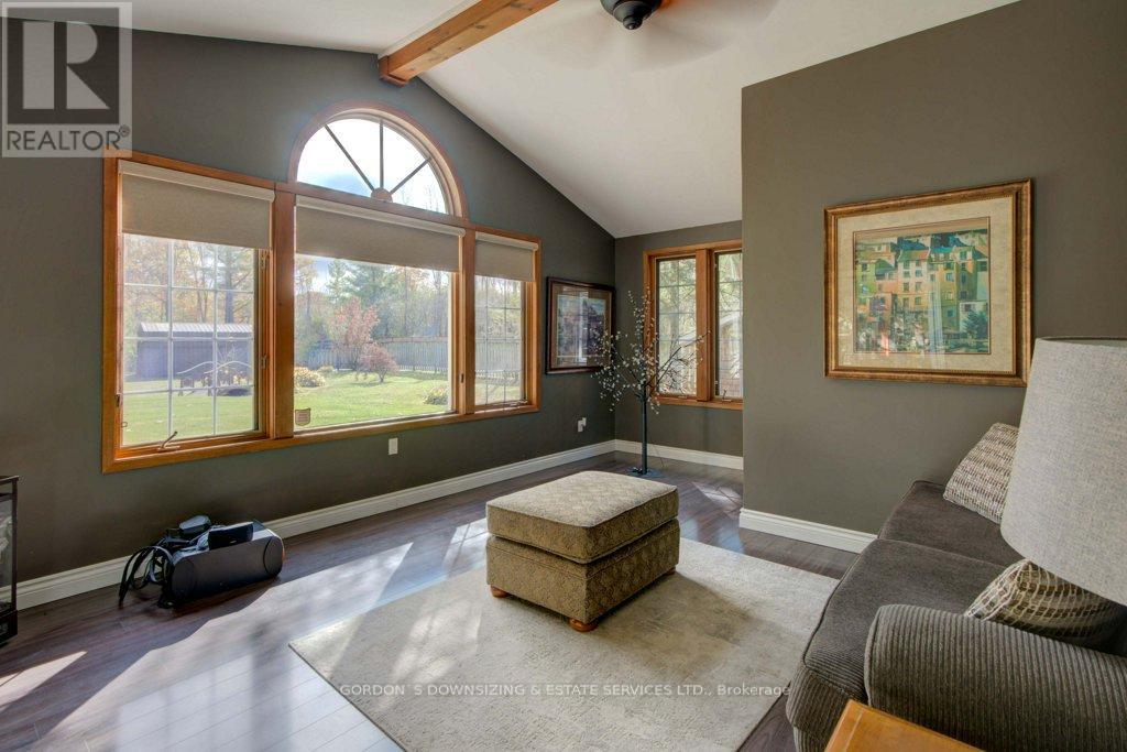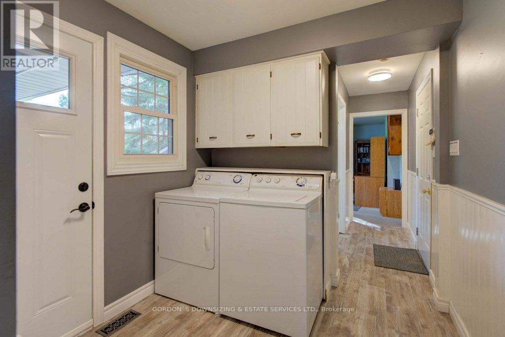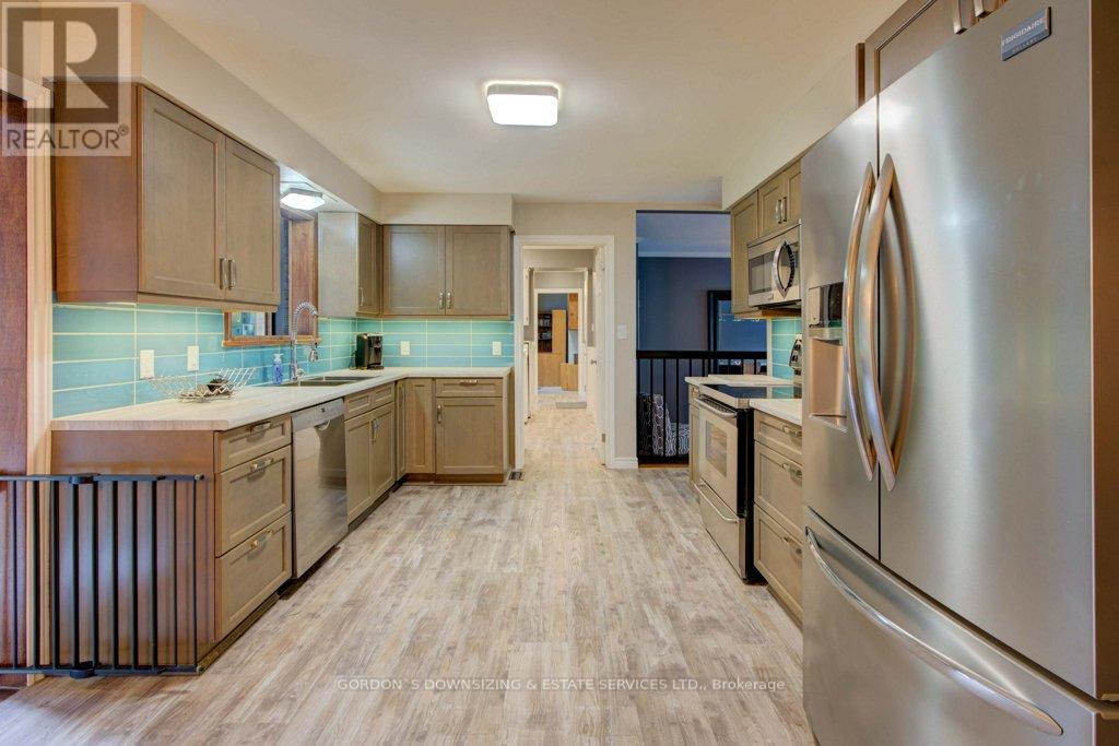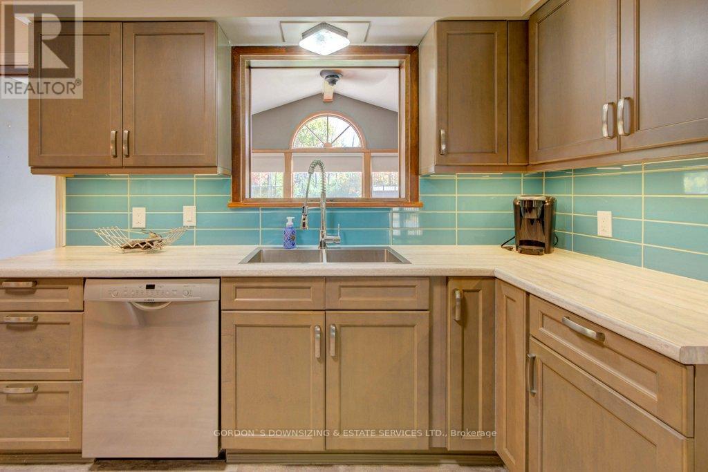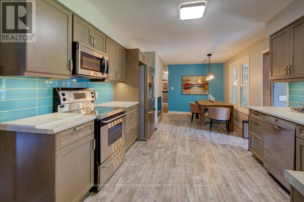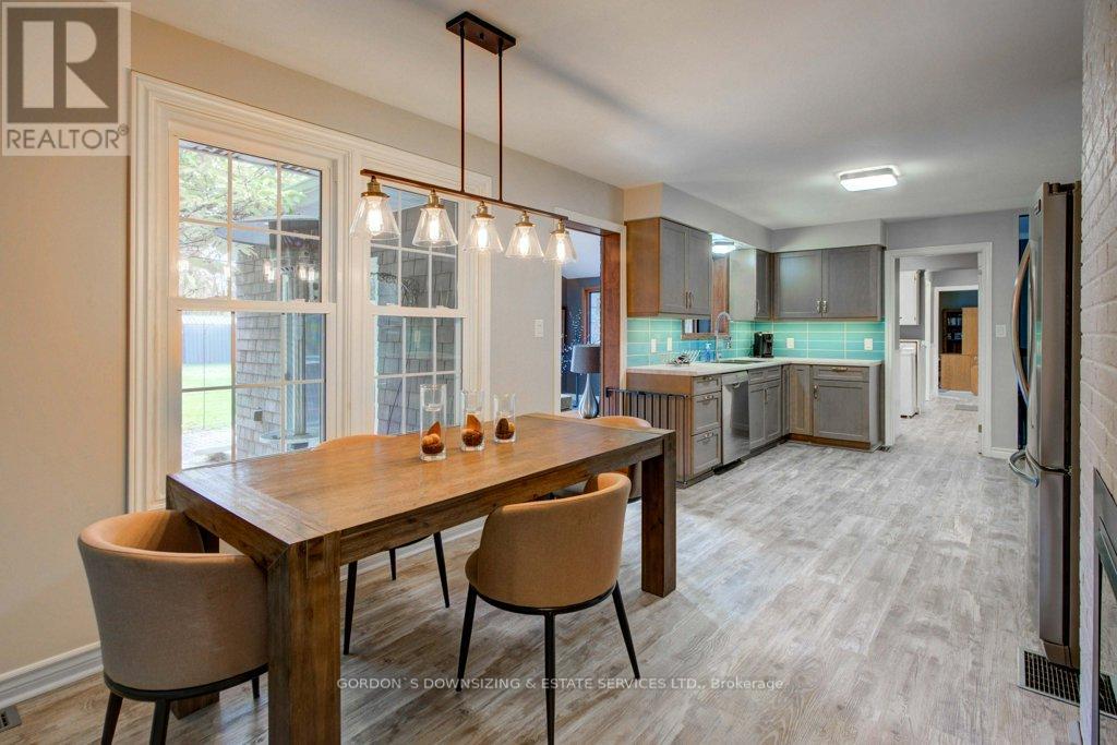 Welcome to 303 Woodridge Road! Set on a quiet, tree-lined road just minutes from Brockville's waterfront, shopping, and commuter routes, this property offers the peace of the countryside with the convenience of town close at hand. Surrounded by mature maples and evergreens, the home rests on a beautifully landscaped lot that feels private, natural, and refined. Inside, this updated 3-bedroom, 2.5-bath bungalow offers nearly 2,000 sq. ft. of bright, airy living space with a warm, inviting sense of luxury. The modernized kitchen features rich wood cabinetry, stainless-steel appliances, and a cheerful glass-tile backsplash that opens to a relaxed breakfast nook and adjoining family room with vaulted ceilings, a dramatic arched window, and cozy fireplaces that bring light and comfort together. A separate dining room and additional sitting area extend the flow for entertaining or quiet evenings, combining comfort with elegance. The primary suite includes an updated 3-piece ensuite, while two additional bedrooms and a refreshed 4-piece bath complete the private wing. Everyday practicality shines in the mudroom and laundry area with inside entry to the attached double garage. Step outside to your own private retreat, featuring a multi-level deck, hot tub, and brick patio nestled beneath mature trees. A charming footbridge crosses a seasonal stream leading to a large detached garage/workshop-ideal for hobbies, creative projects, or additional storage. The fenced yard and surrounding greenery create a sense of calm and seclusion rarely found this close to town. Meticulously maintained and thoughtfully updated, 303 Woodridge Road blends timeless comfort with everyday luxury-an inviting home where privacy, space, and warmth come together perfectly. Offers will be presented on February 20th (id:29295)