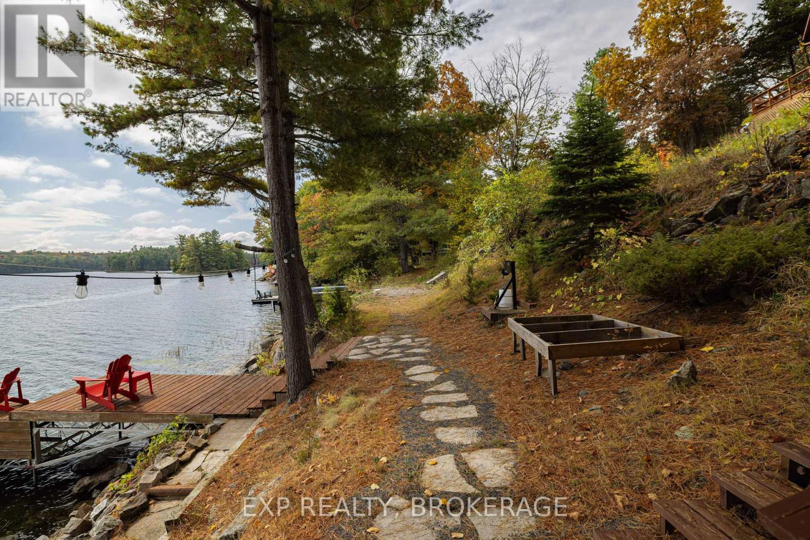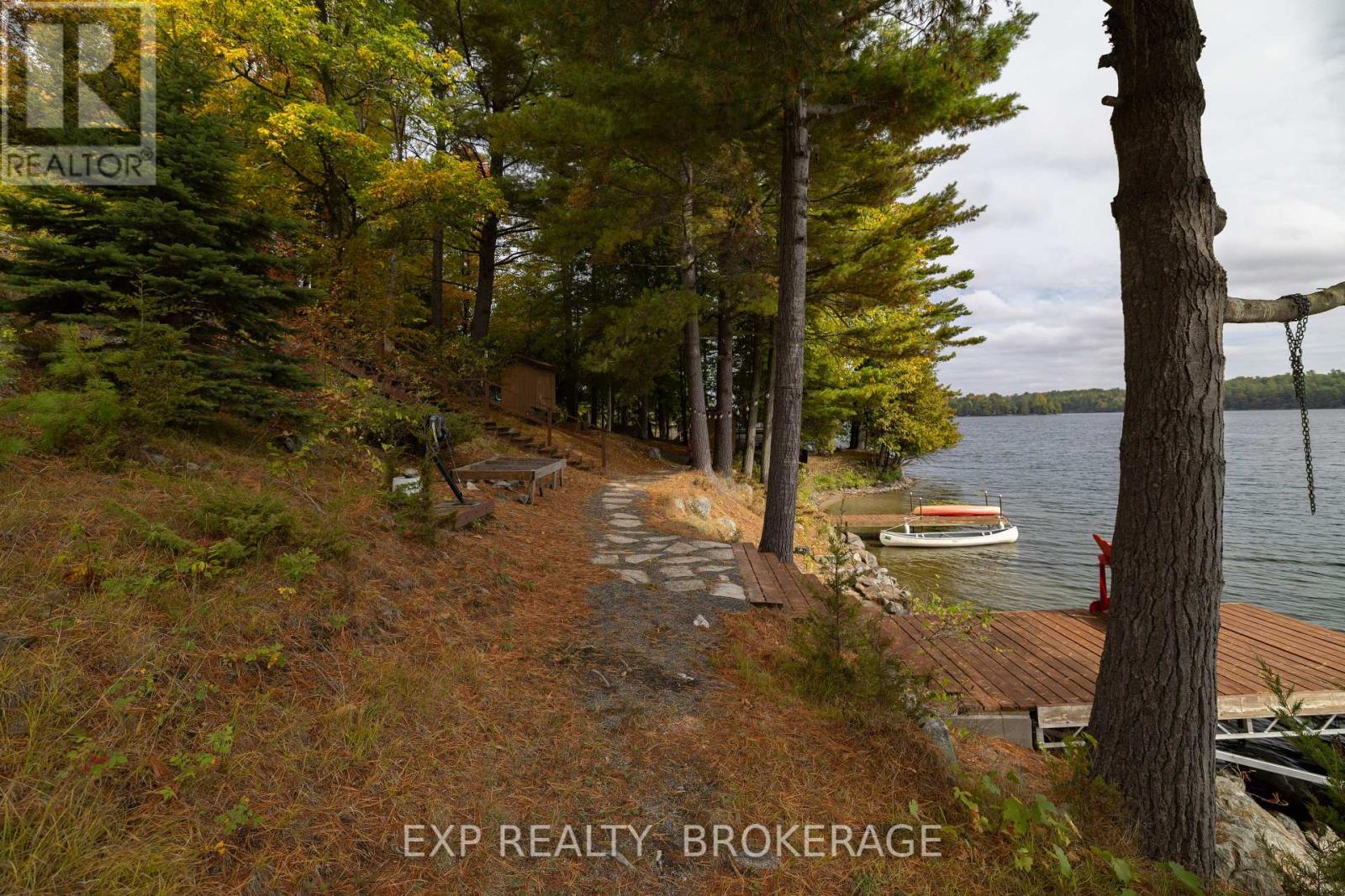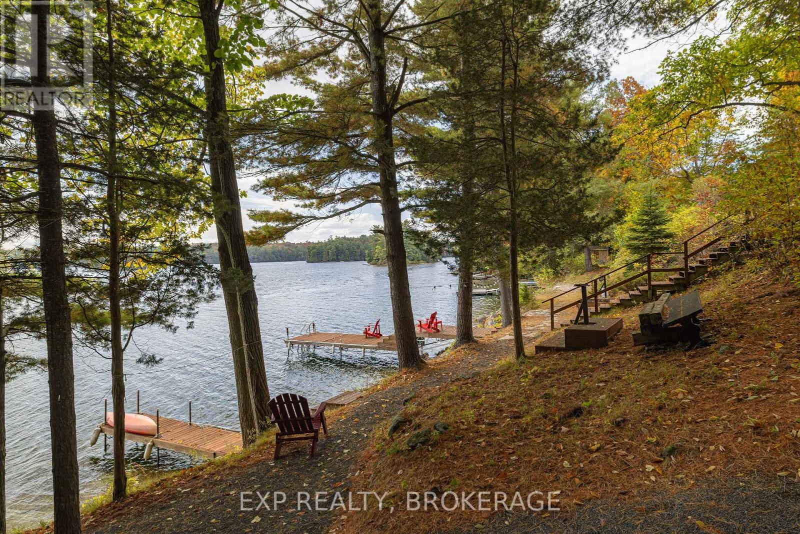 Waterfront Retreat on Buck Lake. Just 30 km north of Kingston, in scenic South Frontenac, discover this well-kept 2,437 sq ft bungalow on beautiful Buck Lake. Offering 187 feet of deep, clean, spring-fed waterfront, this property combines year-round comfort with the rugged beauty of the Canadian Shield. The home is filled with natural light, featuring an open main level with expansive floor-to-ceiling windows that frame panoramic lake views. The inviting living room flows seamlessly into the dining area and onto a spacious lakeside deck perfect for entertaining or simply enjoying the peaceful setting. A screened-in sunroom provides a cozy retreat for summer evenings. With 3 bedrooms, 3 bathrooms, and a bright walk-out lower level, the home offers versatile space for family, guests, or a home office. The lower level includes a large rec room with direct access to the water, making it easy to blend indoor and outdoor living. Outdoors, enjoy a large stone firepit, a private dock for swimming and boating, and landscaped grounds designed to take full advantage of the lakefront lifestyle. The detached double garage includes an oversized workshop, perfect for storage, hobbies, or conversion into a lakeside bunkie. Rarely does a property on Buck Lake come to market with this combination of open water views, level access, and versatile living spaces. This is lakeside living at its finest whether as a year-round home or a four-season retreat. (id:29295)