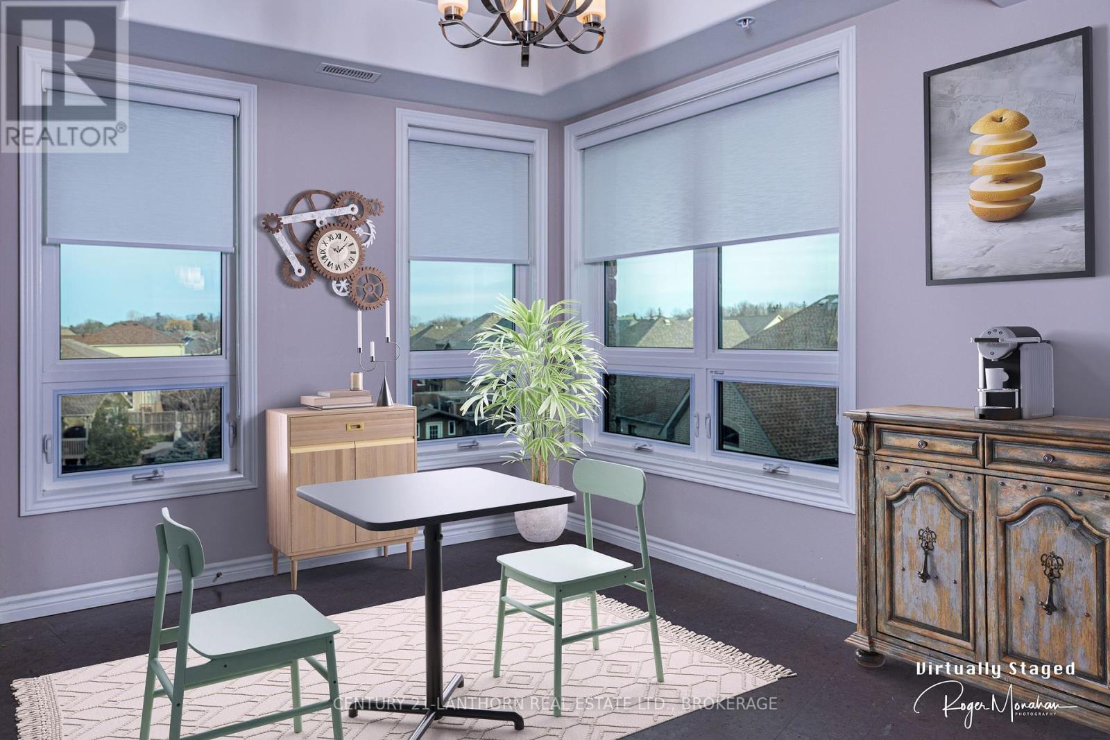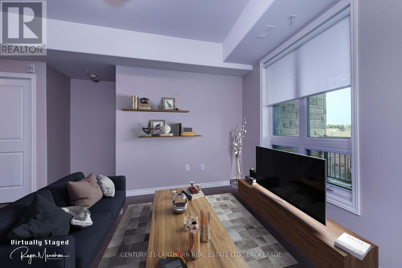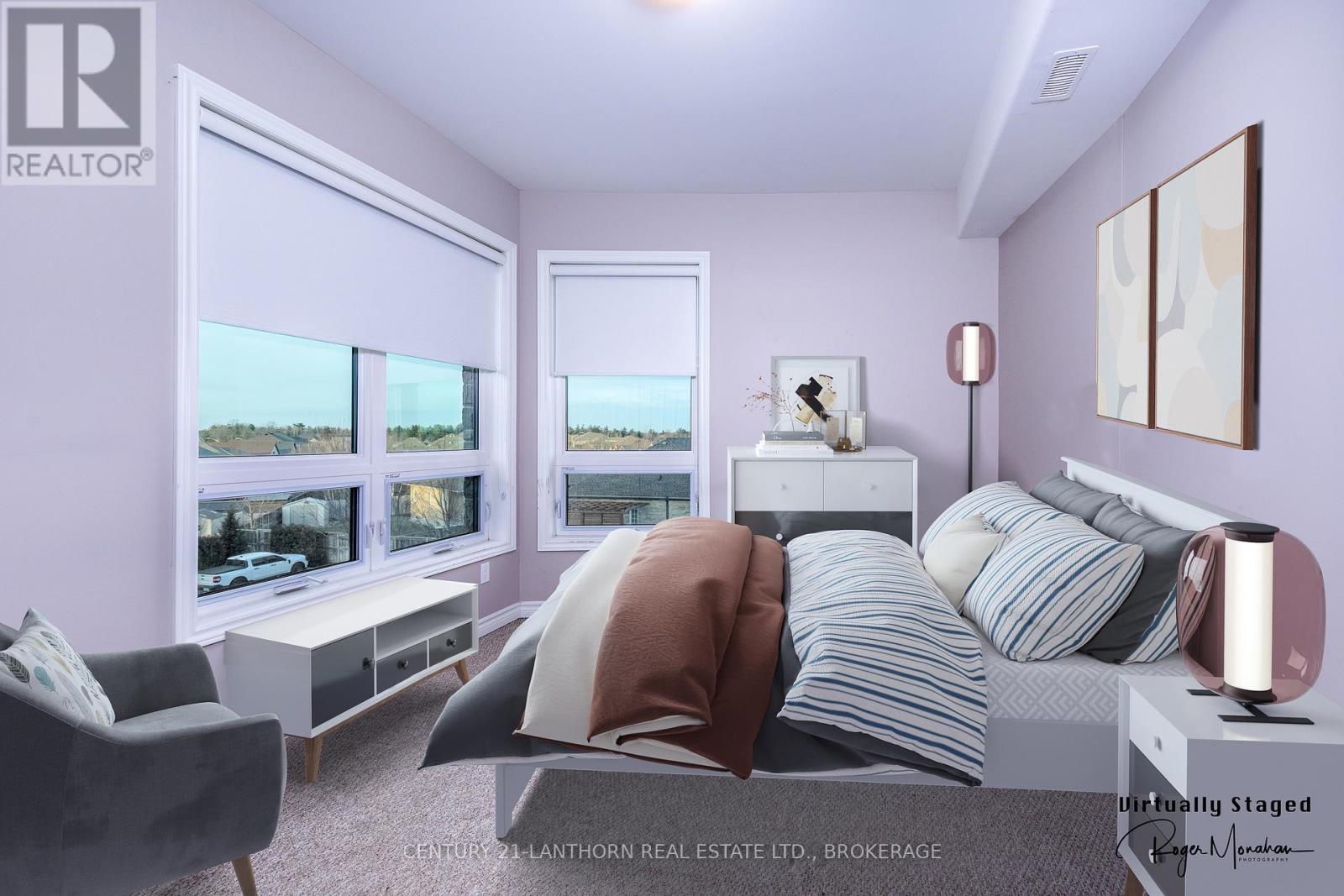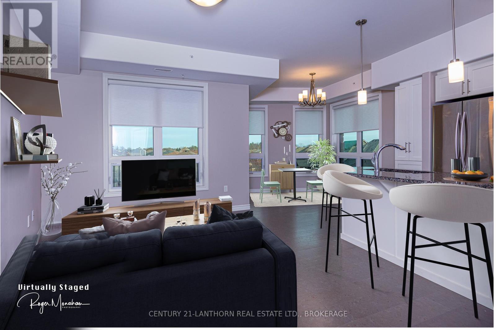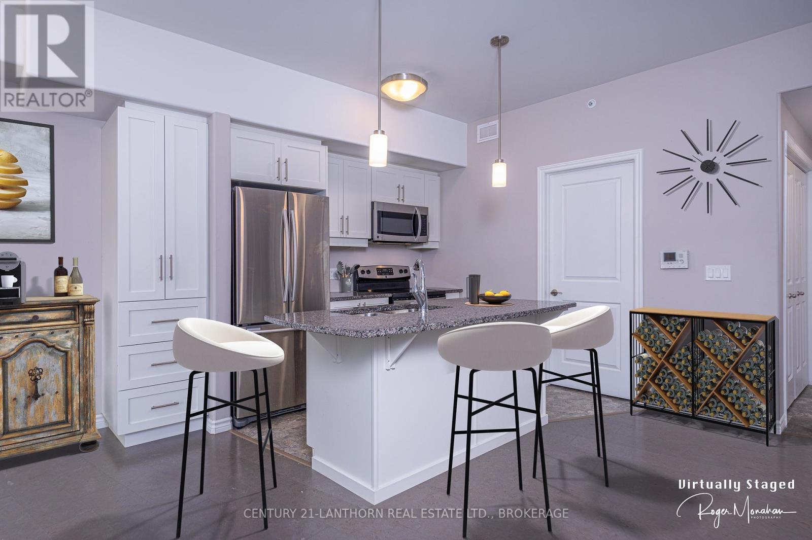 $395 MonthlyWelcome to Augusta Glen! Discover the charm of Unit 307, a beautiful third-floor condo featuring 1 bedroom, 1 bathroom, and a versatile den. This open-concept layout offers a thoughtfully designed kitchen with an island and a spacious walk-in pantry. The bright living area extends to a private outdoor sitting space, perfect for relaxation. Enjoy abundant natural light through oversized west-facing windows, which have been treated for comfort and offer scenic views of the landscaped grounds. Additional features include in-unit laundry with storage, a dishwasher in the kitchen, and a den with a closet ideal as a second bedroom or home office. Building amenities include secure access, a fitness center, and a party room. Conveniently located within walking distance to shopping, parks, and Kingston Transit, this unit provides easy access to everything you need. Schedule your viewing today! Photos have been virtually staged (id:29295)