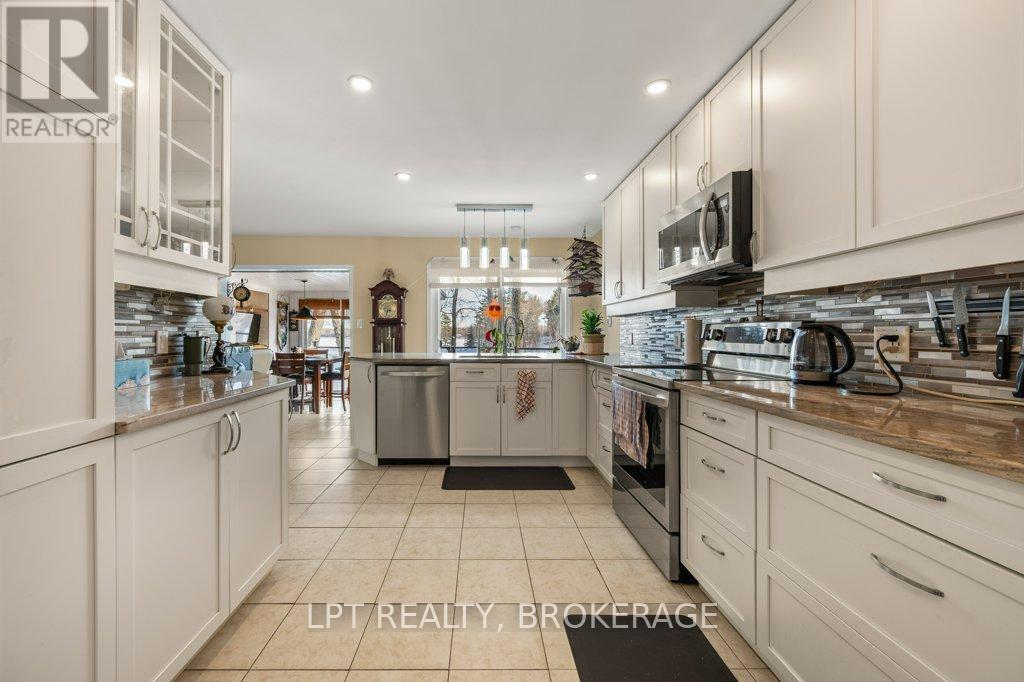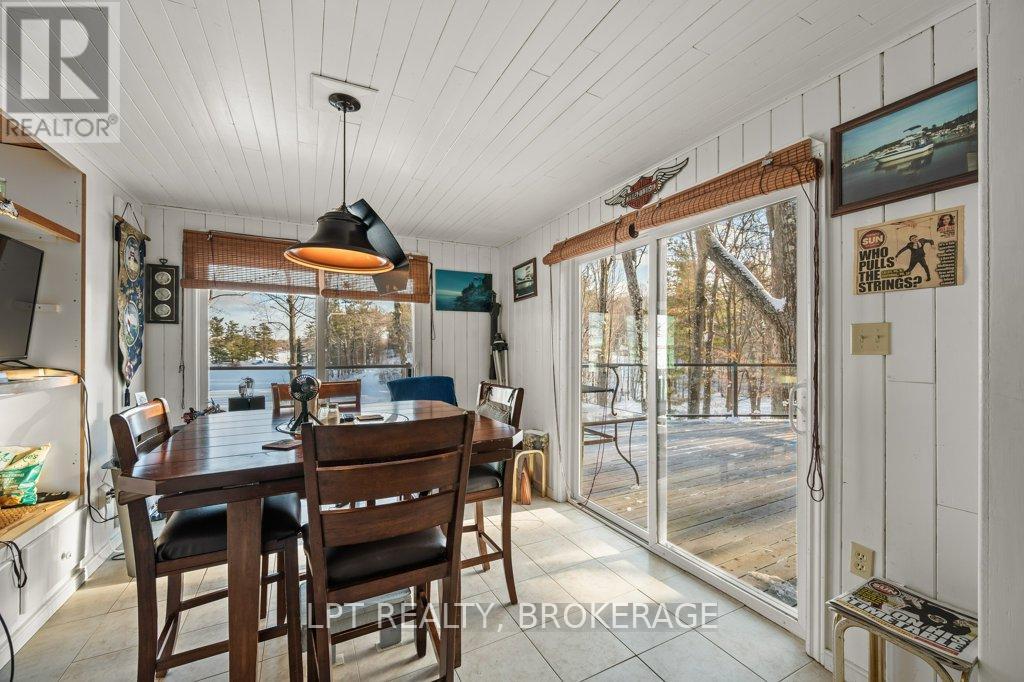 Welcome to your lakeside retreat on Bobs Lake! Impeccably updated 3 + 2-bedroom, 2 + 1-bathroom bungalow nestled on private sandy shoreline in Tichborne. From the moment you arrive, the landscaped grounds and striking metal roof set the tone for refined yet relaxed living.Step inside to discover a spacious interior finished with hardwood floors and oversized windows framing water views. The chefs kitchen is a showpiece, featuring granite countertops, stainless steel appliances and a convenient breakfast island. Adjacent, the sunlit dining area opens through sliding glass to a generous deck with clear-pane railing ideal for entertaining.Retreat to the primary suite, complete with ensuite bath and lake vistas. Two additional main-level bedrooms share a modern full bath, while a lower-level wing offers two more bedrooms, a full bath and versatile family room perfect for guests or home office.Outside, the fun continues at the waters edge: new stairs lead to your private sand beach, where a custom dock and powered gazebo (complete with satellite TV and hydro) await summer gatherings. A private road down to the lake ensures easy access. Back at the home, a heated two-car garage, generator plug at the hydro meter. With every detail thoughtfully curated from the granite counters to the gazebo amenities this bungalow embodies vacation at home. Embrace lakeside living in style. Schedule your private tour today. (id:29295)