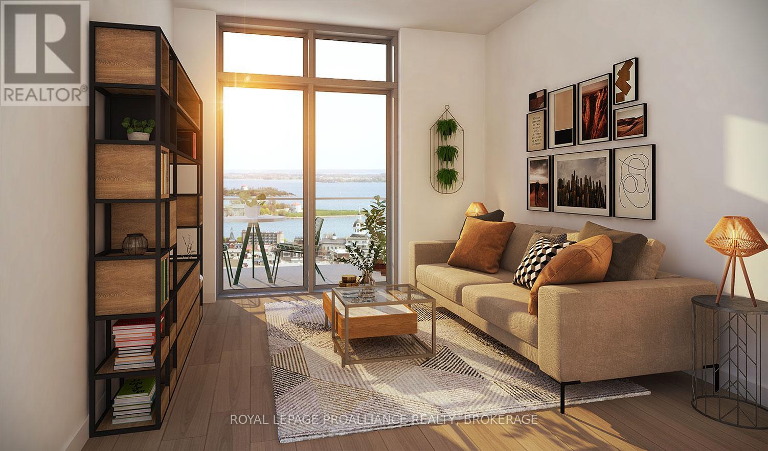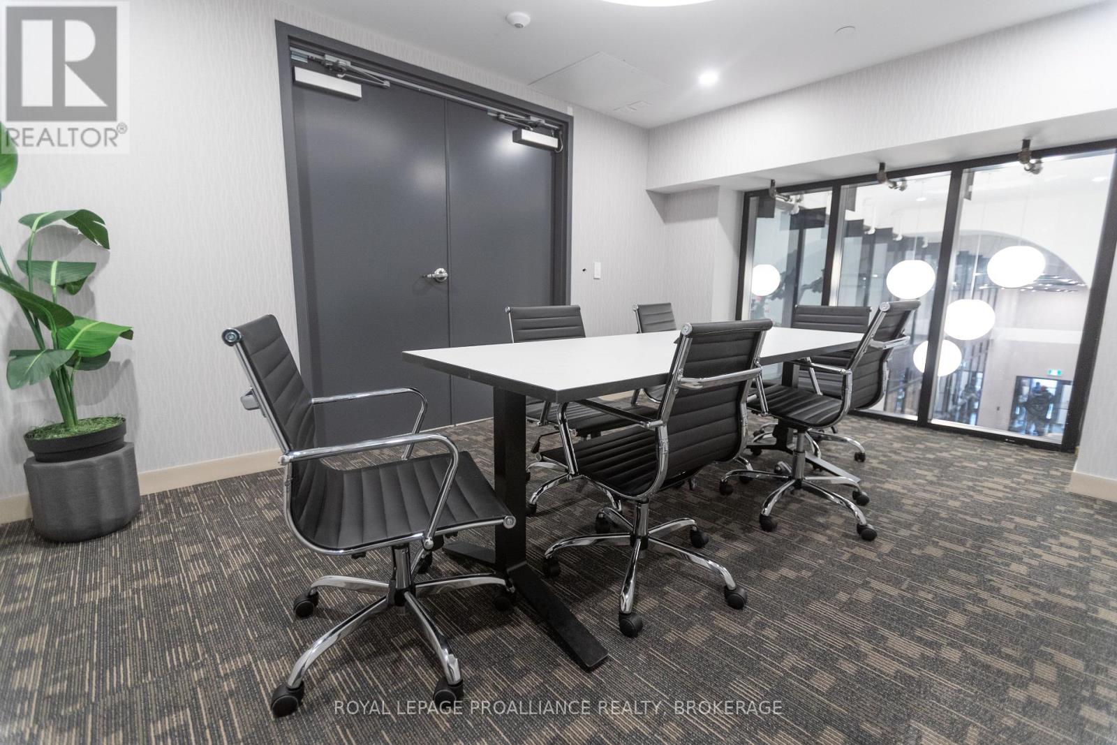 Don't look any further than The Crown Condominiums in the heart of Kingston! This level 3 unit offers a stylish 1-bedroom plus den layout with 563 square feet of thoughtfully designed living space and is available now. The open concept living and dining area creates a bright, welcoming atmosphere, complemented by in suite laundry, a 4 piece bathroom, powder room, and beautiful views that enhance everyday living. Residents enjoy access to an impressive array of amenities, including a private rooftop terrace featuring BBQ stations, dining and lounge areas, greenery, yoga and outdoor activity space. Additional building features include concierge service, an exclusive Fitness Centre and Yoga Studio, and a Party and Multi Purpose Room complete with a full kitchen-perfect for hosting gatherings or events. Underground parking, bike storage, and lockers are available for an additional cost. Developed by IN8 Developments, a trusted name with over 20 years of experience in urban residential projects, The Crown Condominiums reflects a commitment to innovative, efficient design and successful community focused developments. Its unbeatable location places you steps from Kingston's vibrant downtown core, surrounded by restaurants, cafés, and a mix of boutique and major retail options. Nearly all of historic downtown and the waterfront are within a 10 minute walk, with quick access to Queen's University and RMC. (id:29295)