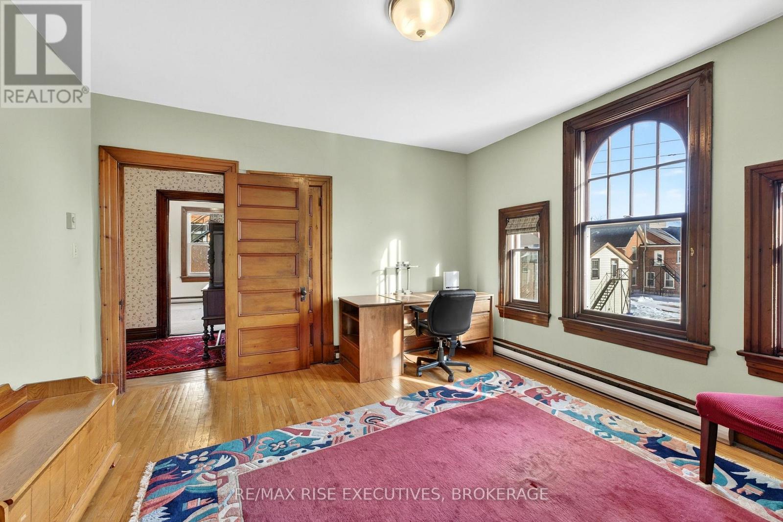 Built in 1890 and lovingly held by the same family for over 50 years, 315 Earl Street is a rare opportunity to own a charming red brick home in one of the most coveted locations in Kingston - next door to Queen's University. Open Google Maps, type in "Queen's University," and this property quite literally sits over the campus name. It is positioned across from Stauffer Library and within walking distance to the hospitals, downtown core, and the Lake Ontario waterfront. The home offers four bedrooms on the upper level with direct access to the attic, presenting potential for a fifth and/or sixth bedroom if desired. The main level features two separate family rooms, creating flexibility for additional bedrooms, workspace, or an optimized rental layout. The basement is also a decent height, making for further bedroom opportunities. The kitchen has been updated with stone countertops, and while the home retains its historic character, it benefits from some updated windows and impressively level floors - a testament to its solid construction and enduring quality. Set on an irregular shaped lot, the property features an additional 66 x 87 foot portion that centers surrounding properties. This parcel itself presents intriguing long-term possibilities (future development, additional parking?). With parking for up to three vehicles currently and unmatched proximity to campus, the positioning alone makes this an investor's dream. Whether envisioned as a continued family residence, a strategic student rental, or a future redevelopment opportunity (subject to approvals), opportunities like this rarely surface - especially after more than five decades of single-family ownership. Location at this level cannot be replicated. (id:29295)