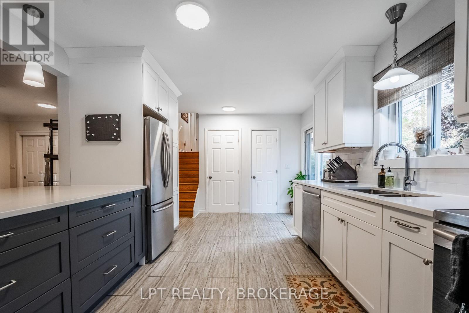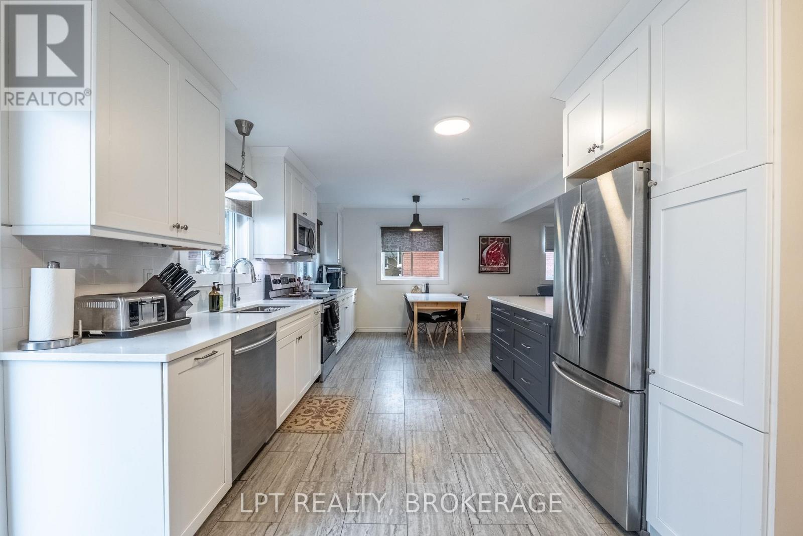 Stylish Side-Split in of of Kingston's Desirable Neighbourhoods Welcome to 315 Norman Rogers Drive a meticulously maintained side-split home that blends contemporary upgrades with everyday comfort. This 3-bedroom, 2-bath residence offers an immaculate presentation throughout, an abundance of natural light and an extensive list of recent improvements-ready for you to move in and enjoy. Bright, updated kitchen with quartz counters, stainless-steel appliances. Main living room warmed by a gas fireplace, framed by large windows and hardwood flooring. Lower-level family room featuring a second gas fireplace-perfect for movie nights or a home office. Three generous bedrooms, each with ample closet space and new carpeting Fully renovated bathrooms showcasing modern fixtures, floating vanity and contemporary tile work. Outdoor Entertaining on the private deck complete with a built-in gas BBQ hookup. Extensive List of Updates; Furnace and A/C(2017), Deck(2018), Garage Door(2021), Kitchen and bathrooms(2022), Front door and patio door(2022), Siding and Windows(2023), Insulation exterior and attic and BBQ gas line(2024), Carpet(2025), Painting ongoing. Located in a sought-after Kingston neighbourhood close to parks, schools and every convenience, this home delivers turnkey style with thoughtful design touches at every turn. Don't miss your chance to own this lovely home! (id:29295)