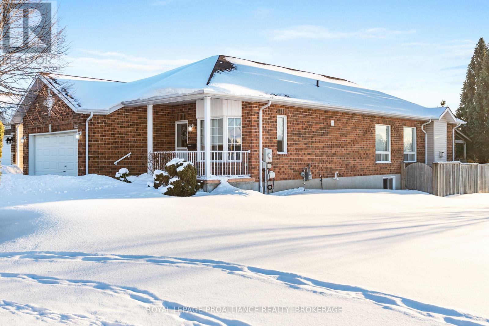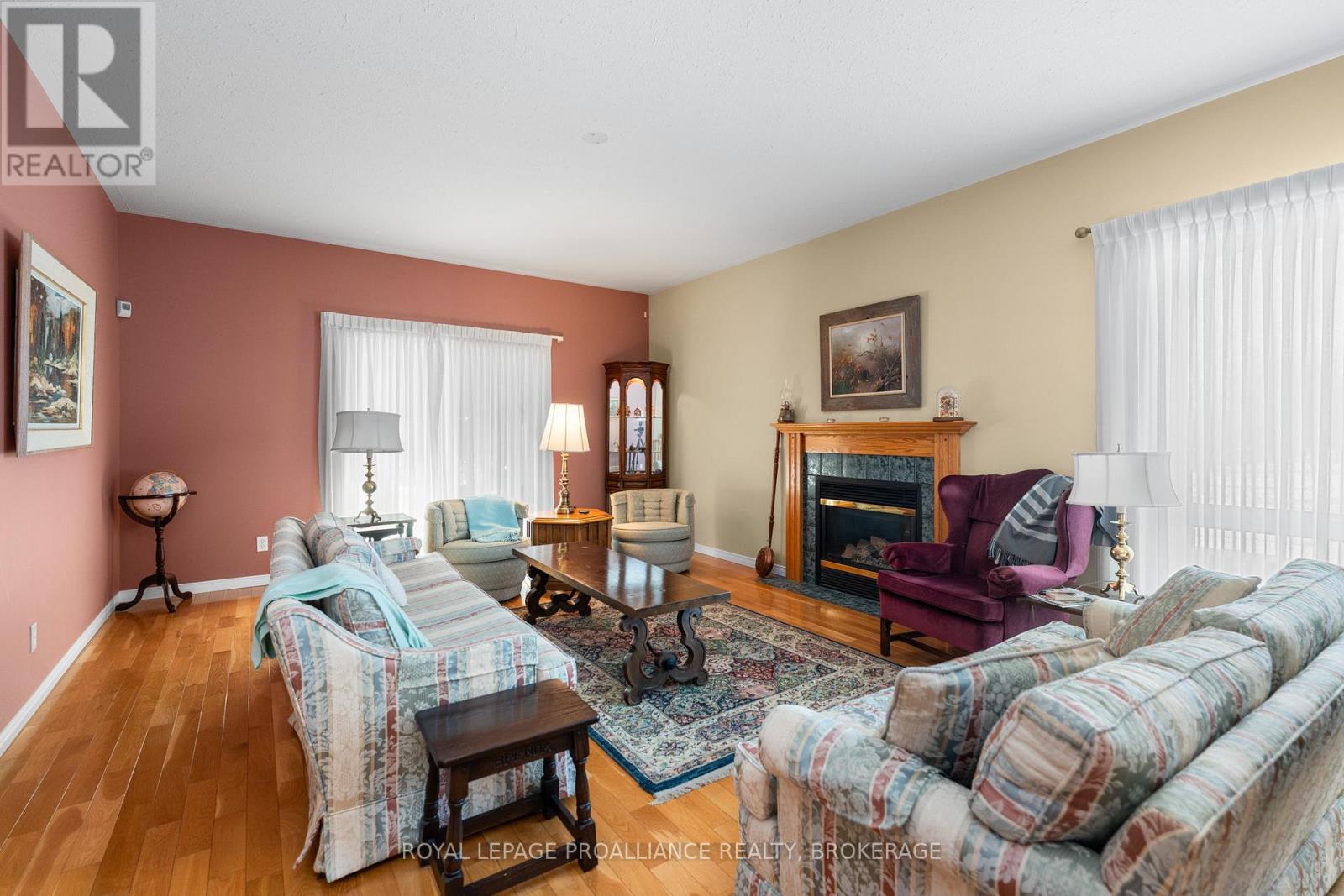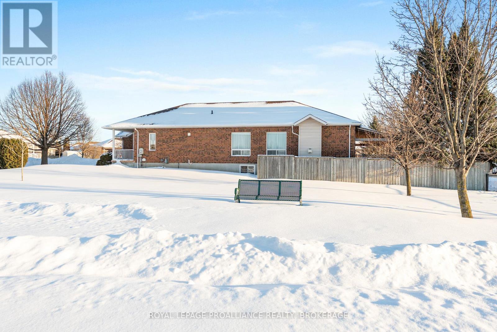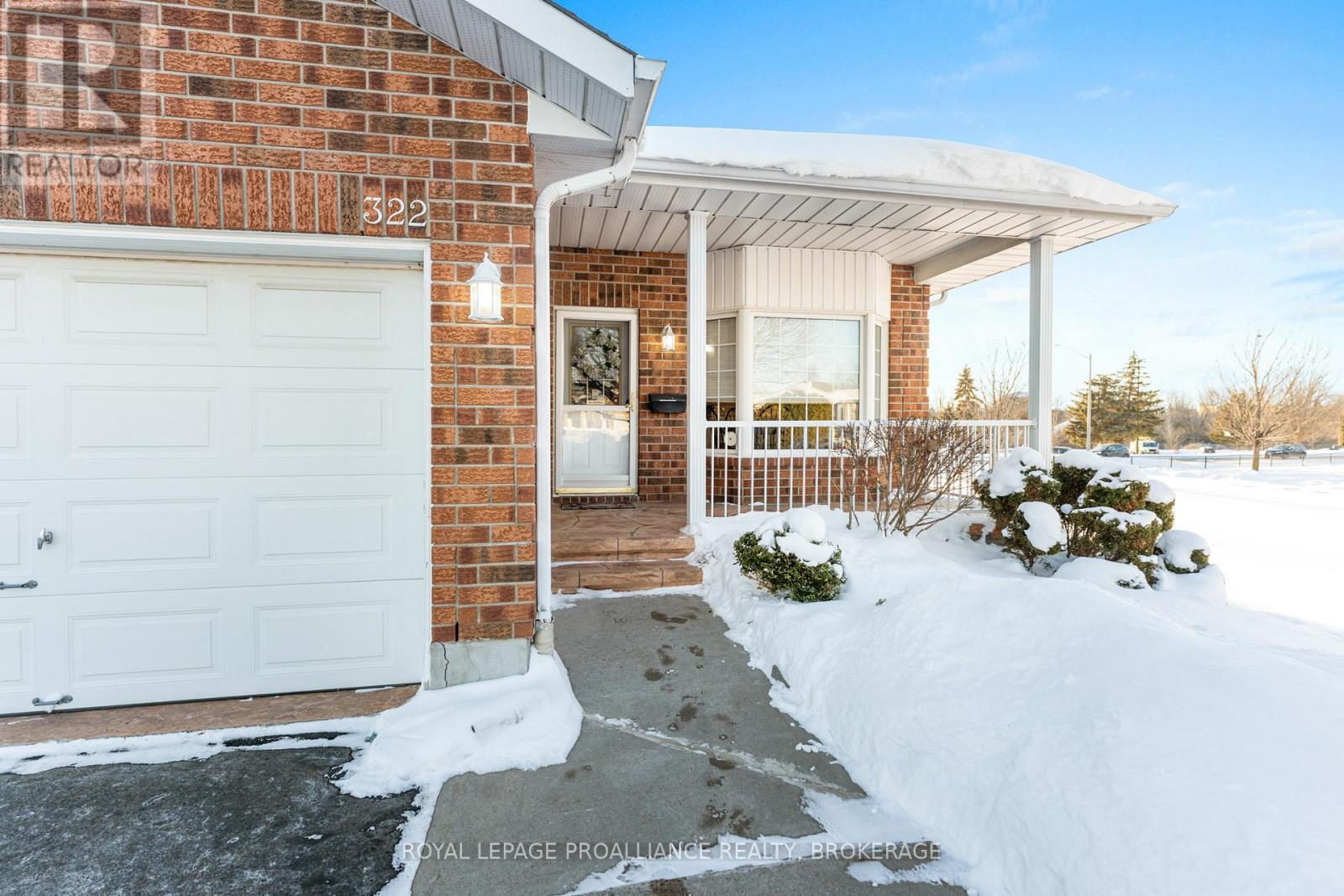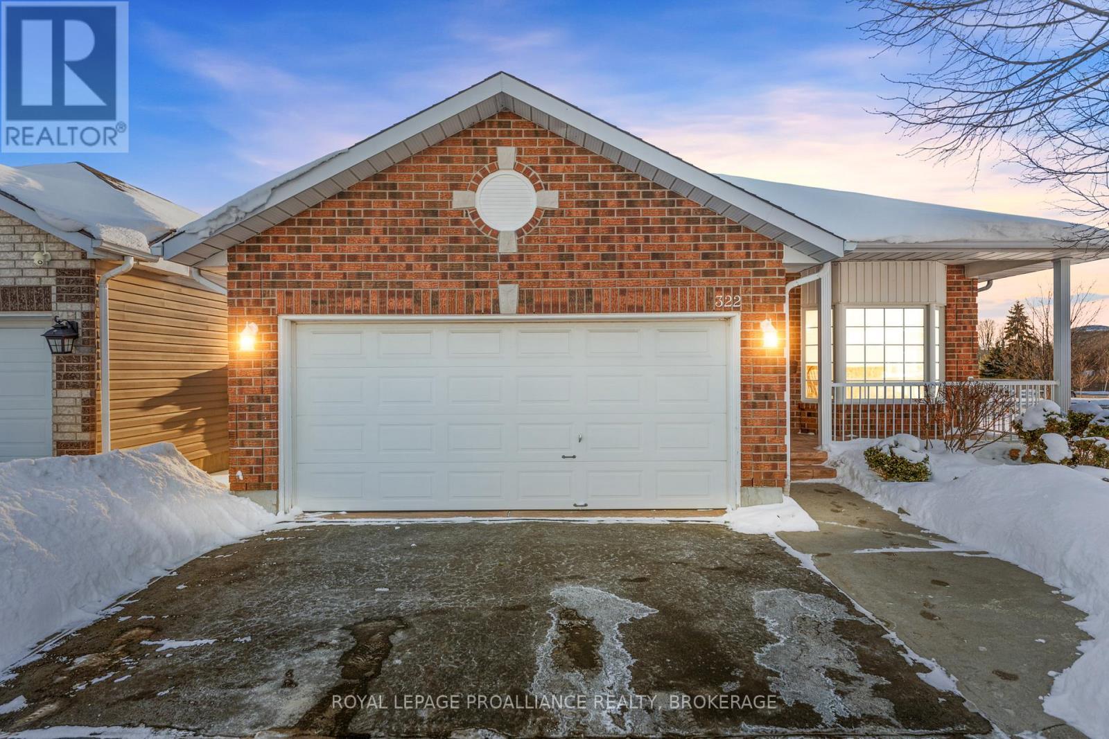 Welcome to 322 Emerald Street in Kingston's sought-after west end adult lifestyle community.This solid brick bungalow offers quality craftsmanship and thoughtful upgrades throughout, featuring bright windows, high ceilings, gleaming hardwood floors, and custom finishes.The spacious main level presents a well-designed floor plan with formal living and dining areas, a well-appointed kitchen with breakfast nook, and the convenience of main floor laundry. The generous primary bedroom includes a full ensuite and oversized walk-in closet. A second bedroom and full main bathroom complete the main level.The finished lower level adds exceptional additional living space, including a large recreation room, third bedroom, updated 4-piece bathroom, workshop, and ample storage.Enjoy the beautifully landscaped rear yard with mature trees and gardens, best appreciated from the covered deck. The home sits on a generous lot overlooking a playground and dog park, and is conveniently located close to walking trails and amenities.Residents enjoy access to a vibrant clubhouse (annual fee $360), enhancing the lifestyle this community offers. (id:29295)