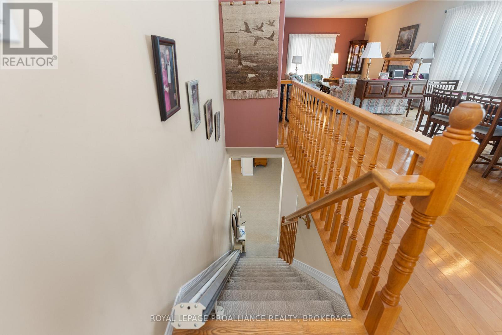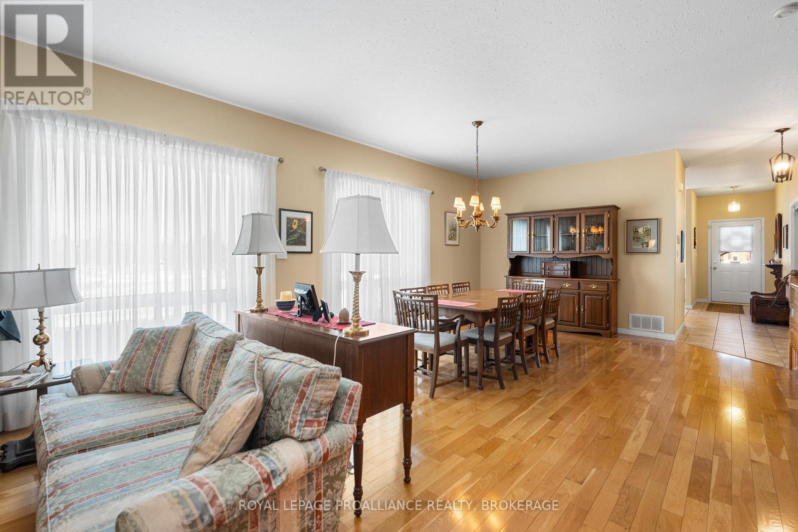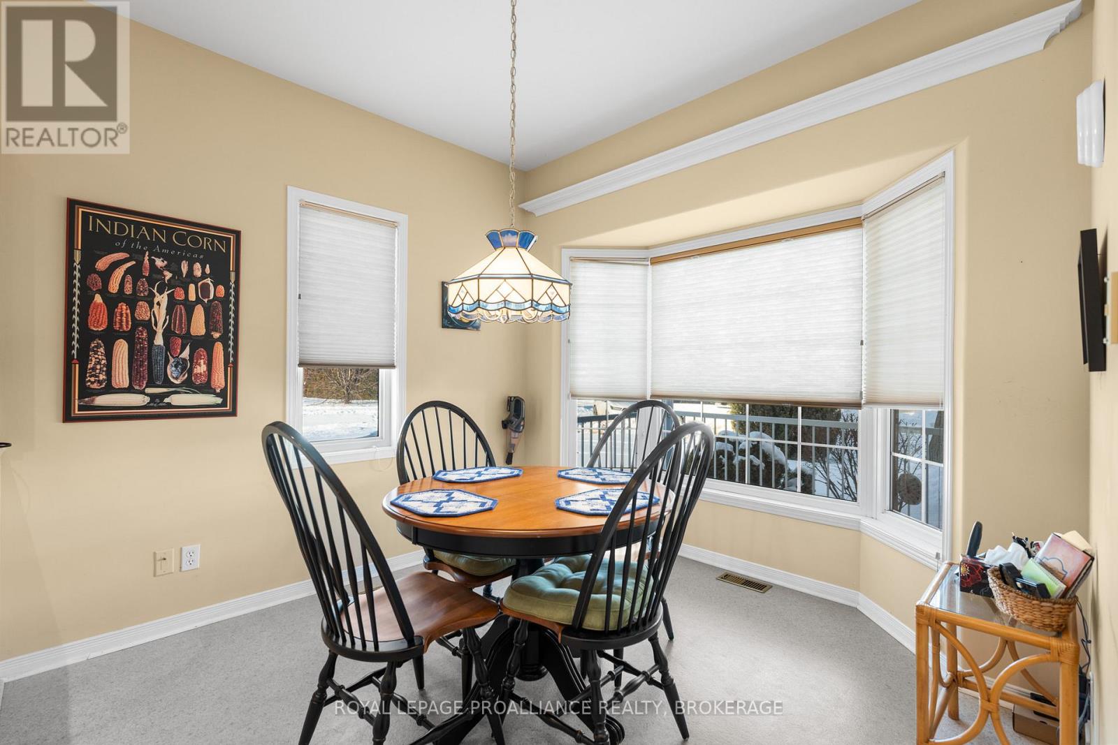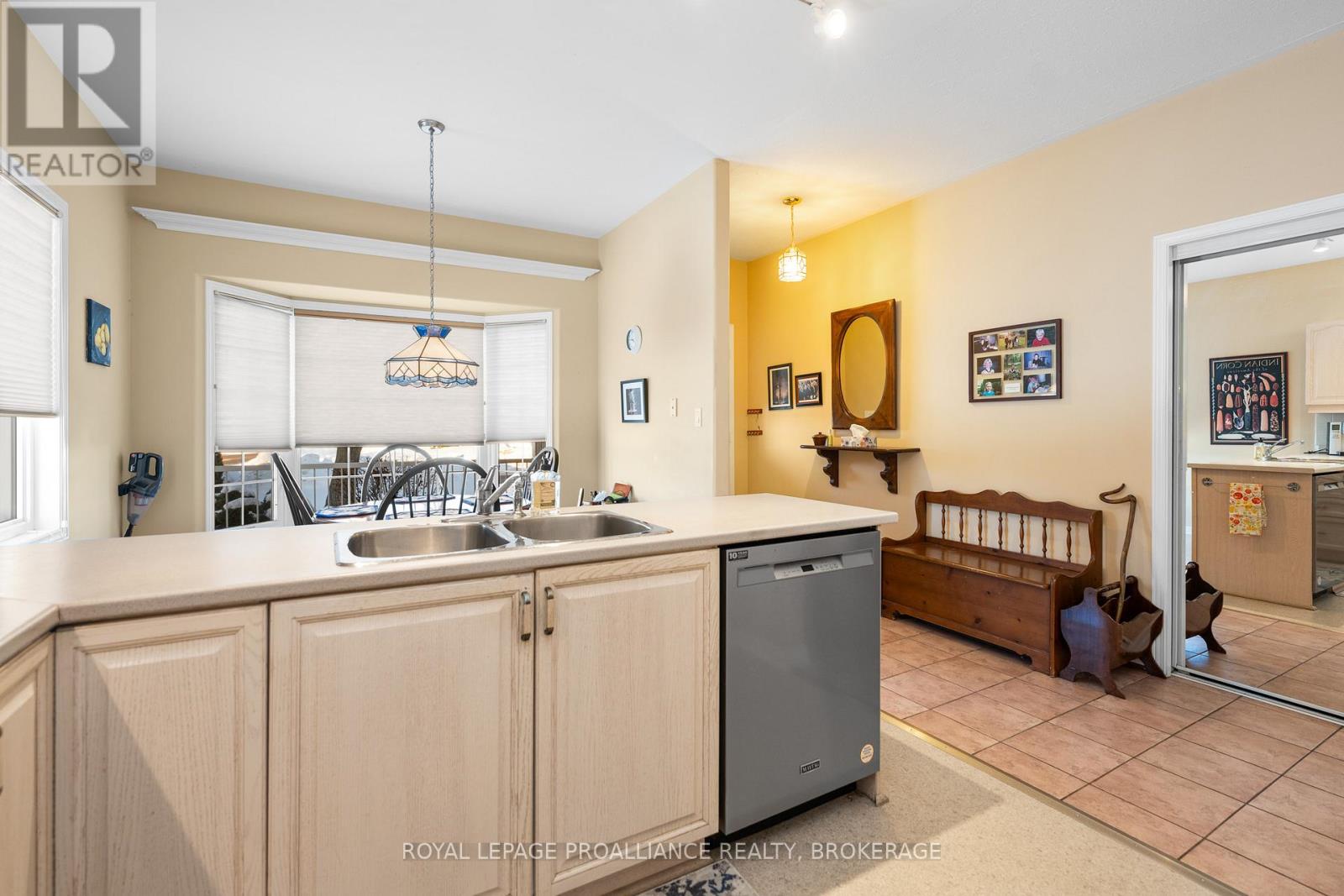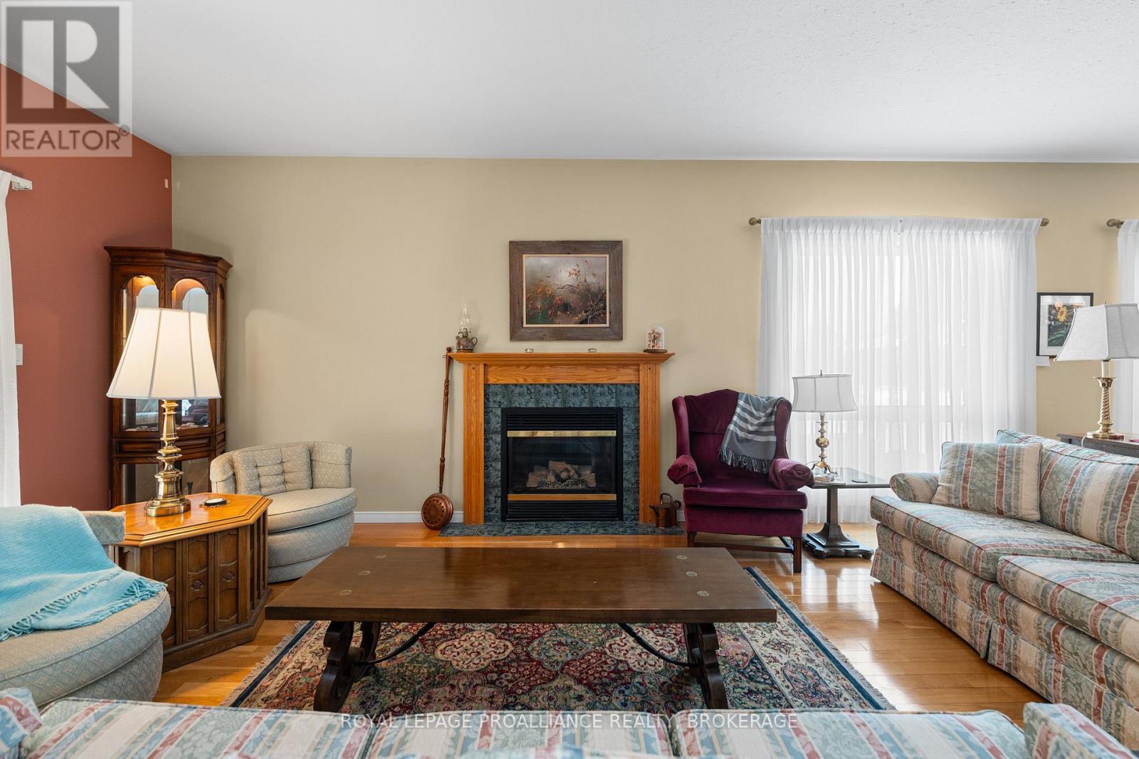 Welcome to 322 Emerald Street in Kingston's sought-after west end adult lifestyle community.This solid brick bungalow offers quality craftsmanship and thoughtful upgrades throughout, featuring bright windows, high ceilings, gleaming hardwood floors, and custom finishes.The spacious main level presents a well-designed floor plan with formal living and dining areas, a well-appointed kitchen with breakfast nook, and the convenience of main floor laundry. The generous primary bedroom includes a full ensuite and oversized walk-in closet. A second bedroom and full main bathroom complete the main level.The finished lower level adds exceptional additional living space, including a large recreation room, third bedroom, updated 4-piece bathroom, workshop, and ample storage.Enjoy the beautifully landscaped rear yard with mature trees and gardens, best appreciated from the covered deck. The home sits on a generous lot overlooking a playground and dog park, and is conveniently located close to walking trails and amenities.Residents enjoy access to a vibrant clubhouse (annual fee $360), enhancing the lifestyle this community offers. (id:29295)