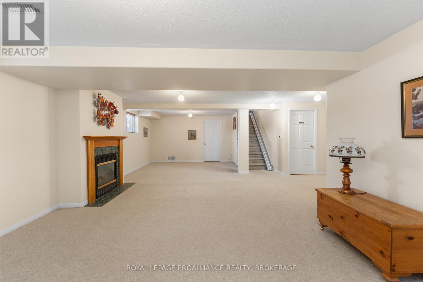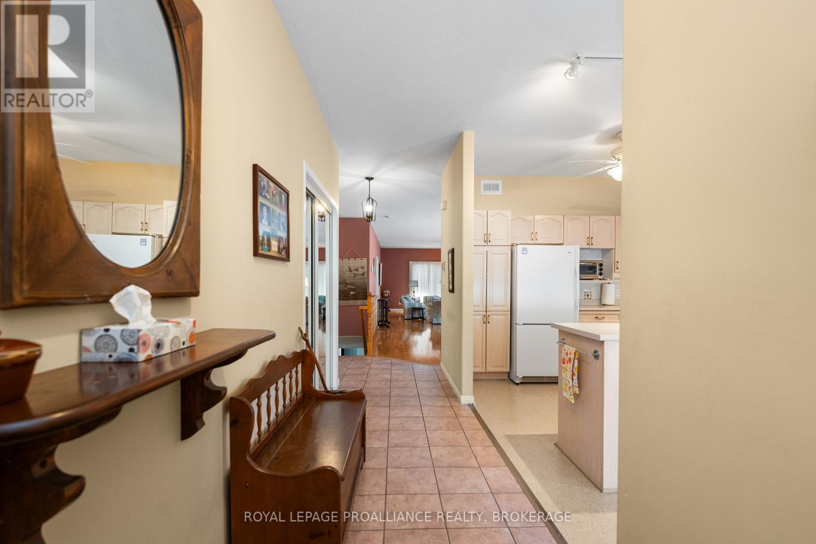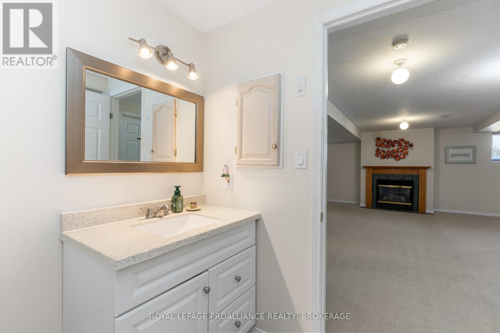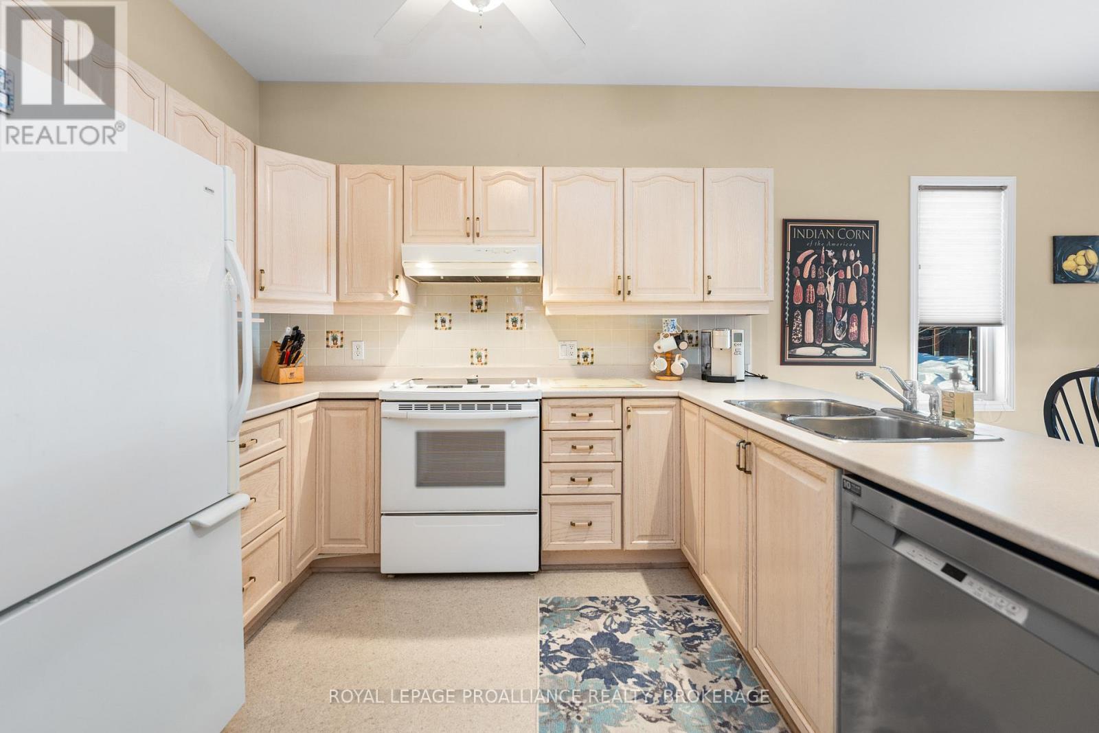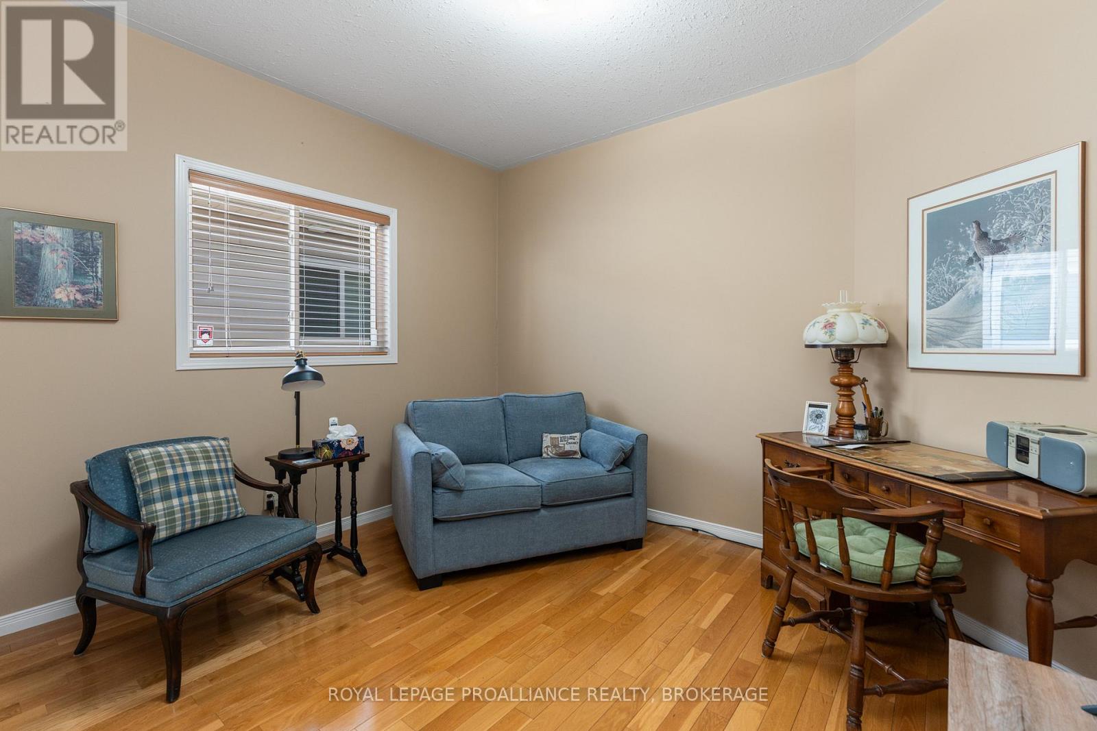Welcome to 322 Emerald Street in Kingston's sought-after west end adult lifestyle community.This solid brick bungalow offers quality craftsmanship and thoughtful upgrades throughout, featuring bright windows, high ceilings, gleaming hardwood floors, and custom finishes.The spacious main level presents a well-designed floor plan with formal living and dining areas, a well-appointed kitchen with breakfast nook, and the convenience of main floor laundry. The generous primary bedroom includes a full ensuite and oversized walk-in closet. A second bedroom and full main bathroom complete the main level.The finished lower level adds exceptional additional living space, including a large recreation room, third bedroom, updated 4-piece bathroom, workshop, and ample storage.Enjoy the beautifully landscaped rear yard with mature trees and gardens, best appreciated from the covered deck. The home sits on a generous lot overlooking a playground and dog park, and is conveniently located close to walking trails and amenities.Residents enjoy access to a vibrant clubhouse (annual fee $360), enhancing the lifestyle this community offers. (id:29295)
