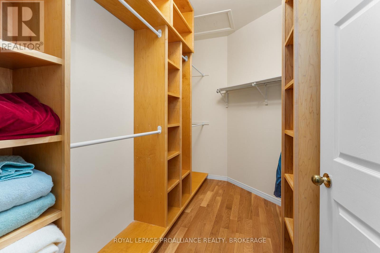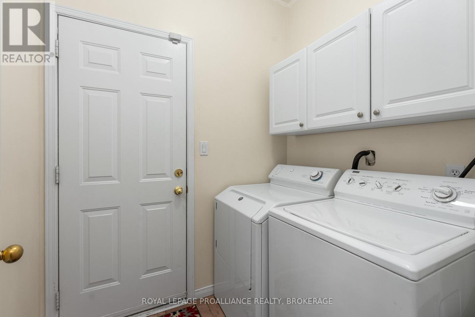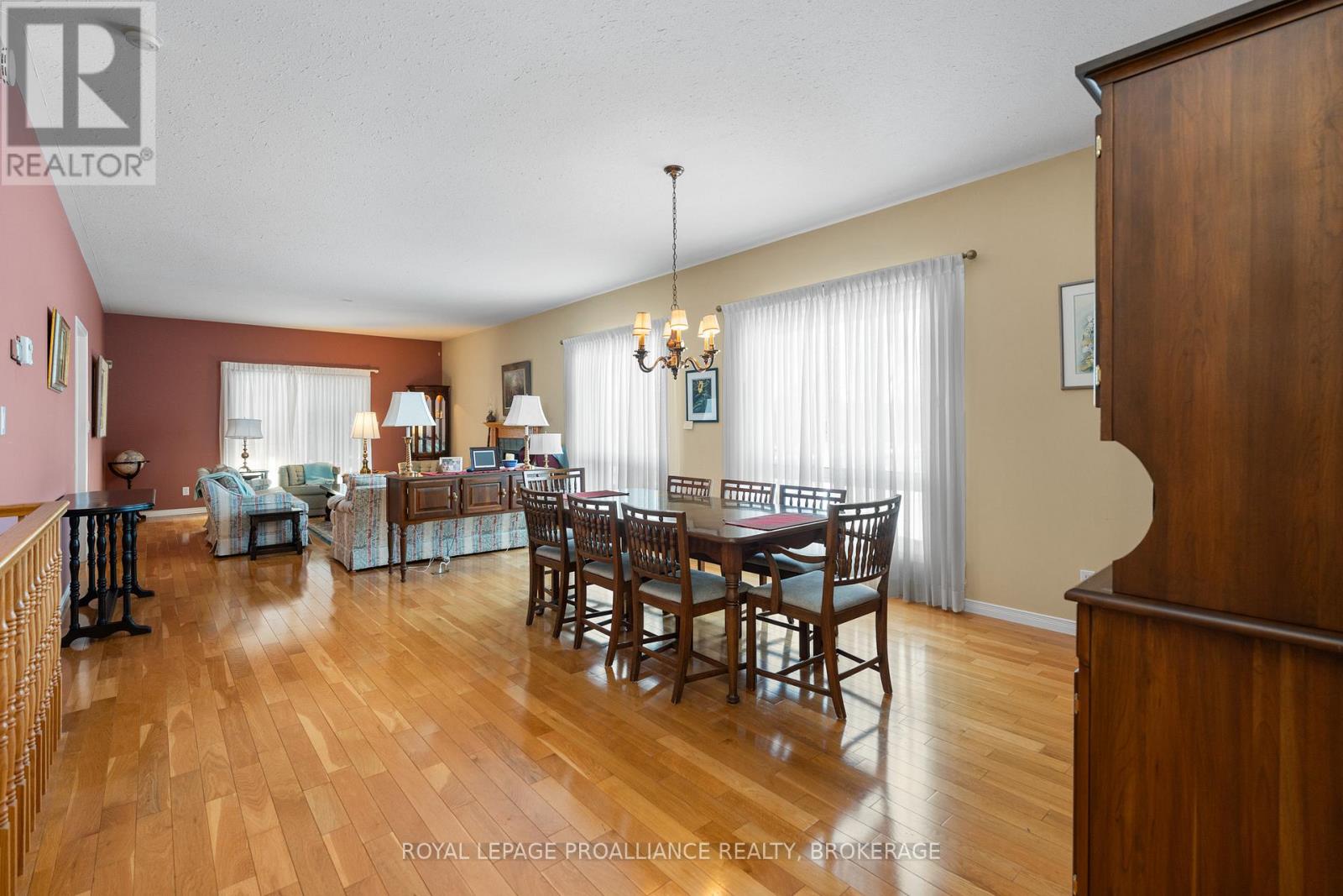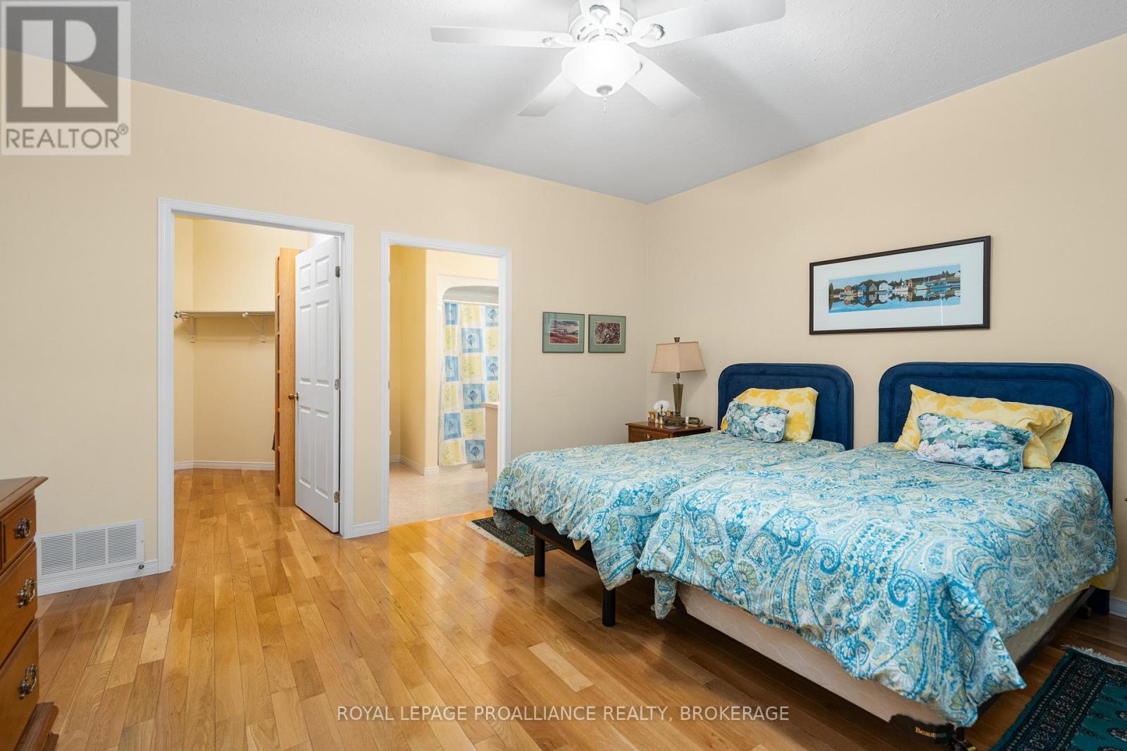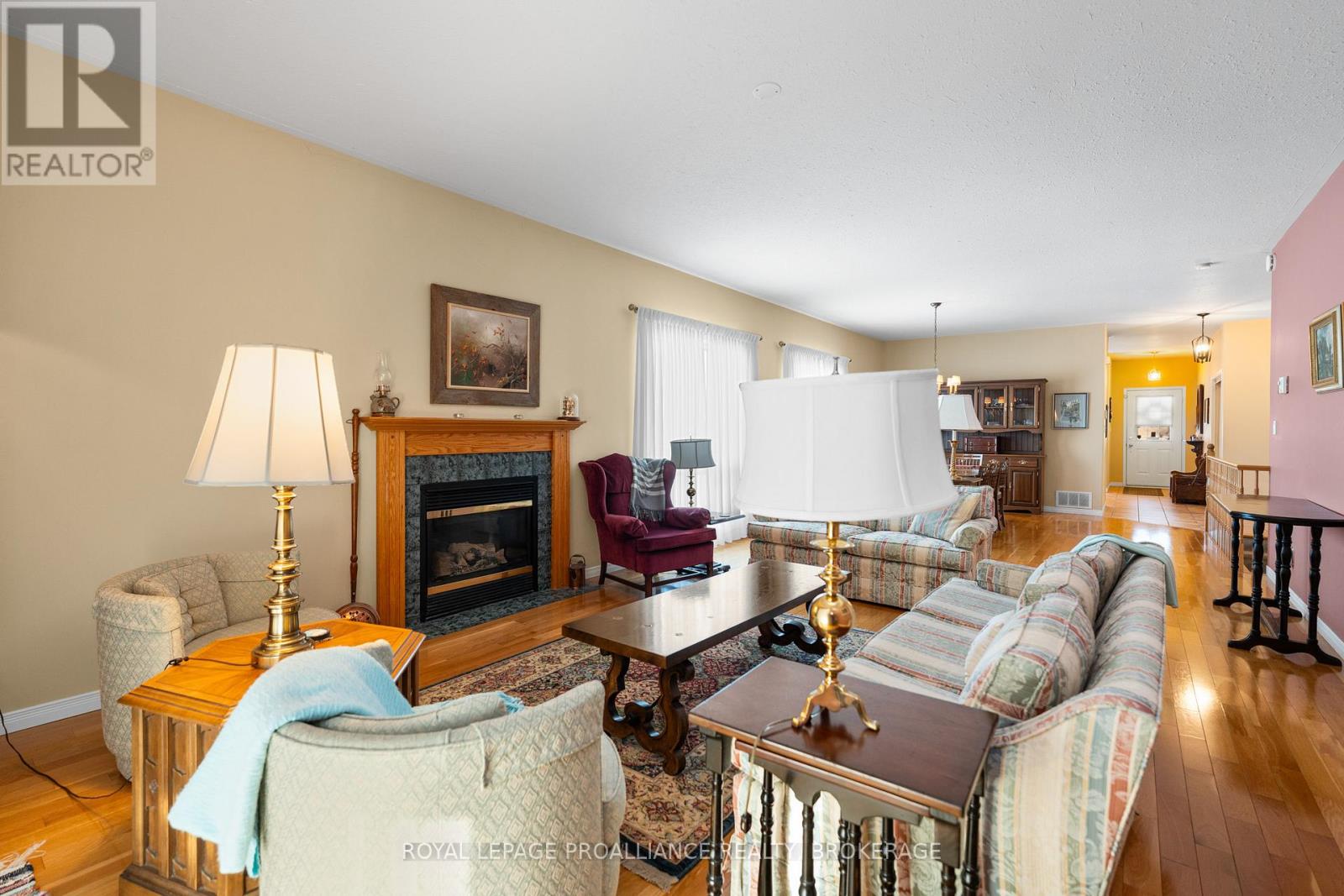 Welcome to 322 Emerald Street in Kingston's sought-after west end adult lifestyle community.This solid brick bungalow offers quality craftsmanship and thoughtful upgrades throughout, featuring bright windows, high ceilings, gleaming hardwood floors, and custom finishes.The spacious main level presents a well-designed floor plan with formal living and dining areas, a well-appointed kitchen with breakfast nook, and the convenience of main floor laundry. The generous primary bedroom includes a full ensuite and oversized walk-in closet. A second bedroom and full main bathroom complete the main level.The finished lower level adds exceptional additional living space, including a large recreation room, third bedroom, updated 4-piece bathroom, workshop, and ample storage.Enjoy the beautifully landscaped rear yard with mature trees and gardens, best appreciated from the covered deck. The home sits on a generous lot overlooking a playground and dog park, and is conveniently located close to walking trails and amenities.Residents enjoy access to a vibrant clubhouse (annual fee $360), enhancing the lifestyle this community offers. (id:29295)
