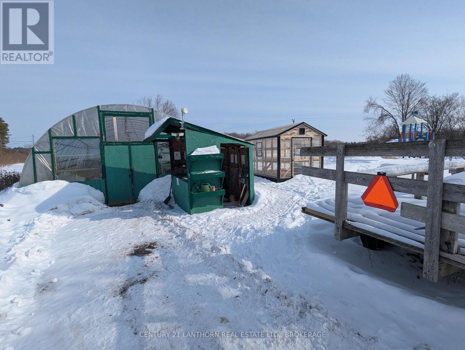 Are you looking to forgo the rat race of city living? This wonderful property sits on over 4 Acres, and is an easy commute to Kingston or Gananoque. The property has a working and profitable Greenhouse that the new owner could keep going if they chose, or simply become more self-sufficient and grow their own produce year round, The large greenhouse has a wood boiler and its own water source to be used year round. There is also a large chicken coop, stand alone office, quonset which could be made into an extra living space, and large barns to accommodate large equipment and machinery, one barn has propane heat and large garage doors for the big toys. The character filled home has 3 bedrooms and a den upstairs and is waiting for a new family to put their touches on it. The home is heated with propane, but also has a pellet stove and woodstove in case of power outages. Whether you want to run a home based business, hobby farm or just live the quiet life, this property could be your blank canvas to make your own. (id:29295)