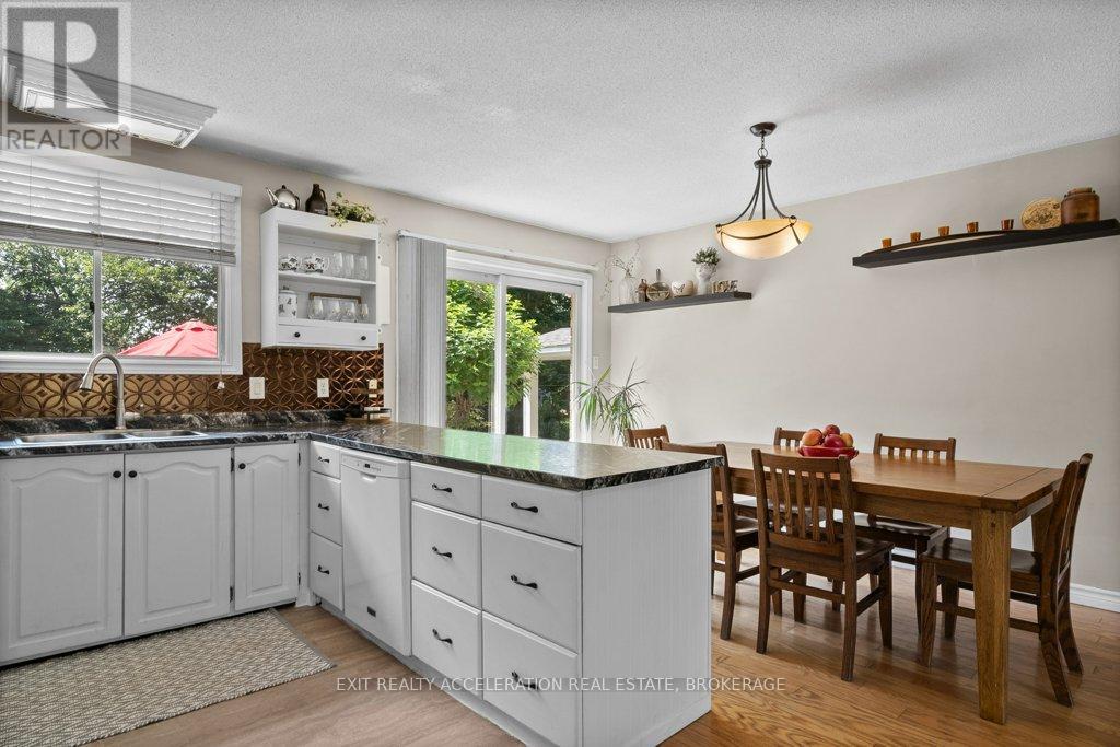 Welcome to this spacious home tucked away in a premium location on a quiet cul-de-sac. From the moment you arrive, you'll notice the beautifully landscaped exterior and mature trees in the backyard that offer both privacy and a peaceful setting. Step inside to an inviting open-concept main level featuring hardwood floors that are perfect for everyday living. Upstairs, you'll find three comfortable bedrooms and a full bathroom. The lower walk-out level offers great versatility with the possibility of an in-law suite. It has an electric fireplace, a generous rec room, and 2 more bedrooms. Just below, another level provides plenty of storage space along with a convenient laundry area. The detached garage is truly a standout, with two ten-foot doors and soaring 12-foot ceilings - ideal for parking an RV, setting up a workshop, or installing a hoist. A double carport keeps additional vehicles sheltered, while a separate heated office off the garage makes working from home both comfortable and practical. Outdoor living is just as impressive, with a covered area that includes a hot tub to the side for relaxing evenings and a large patio perfect for summer gatherings. This home combines thoughtful design, ample space, and an unbeatable location to create a place you'll be proud to call your own. (id:29295)